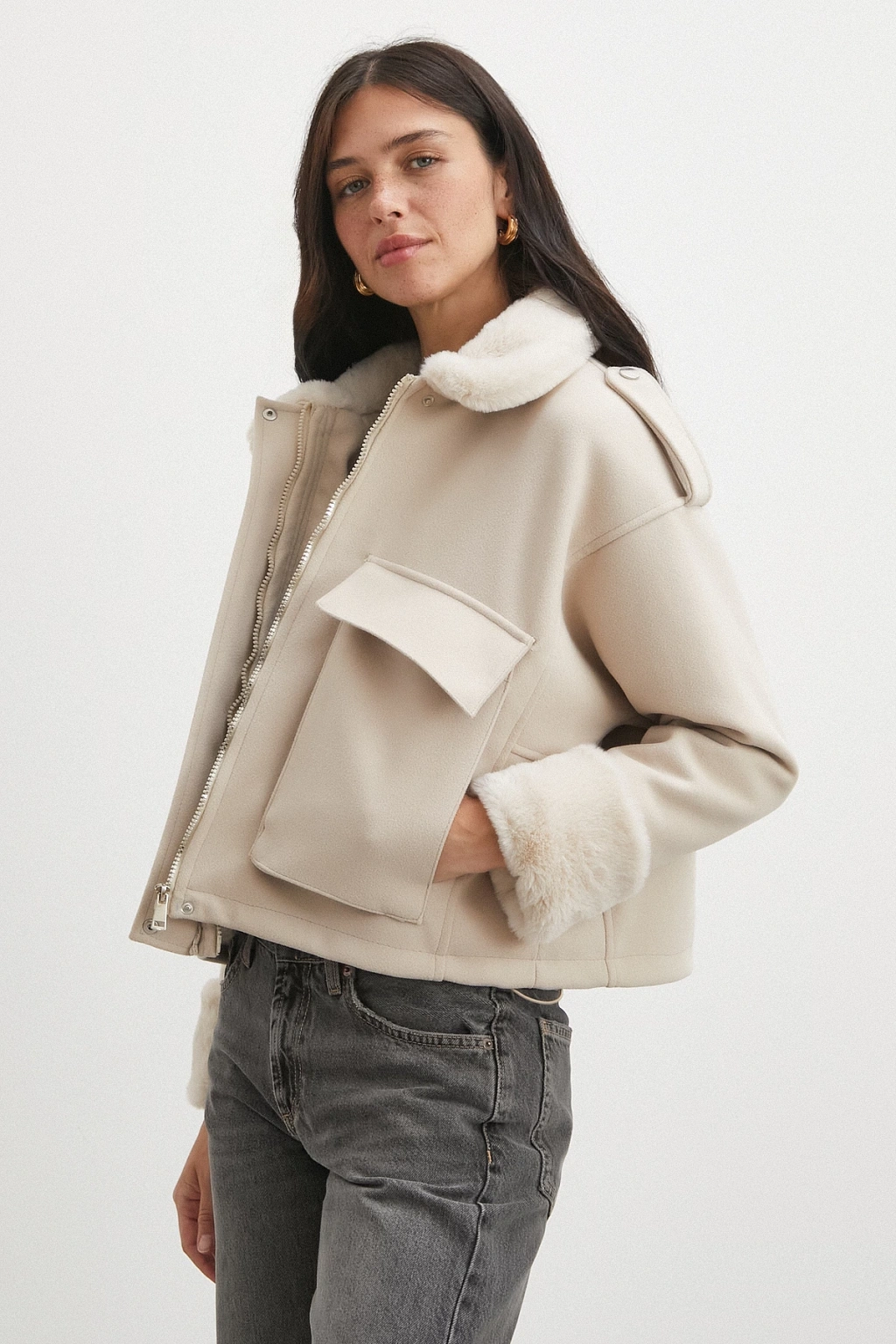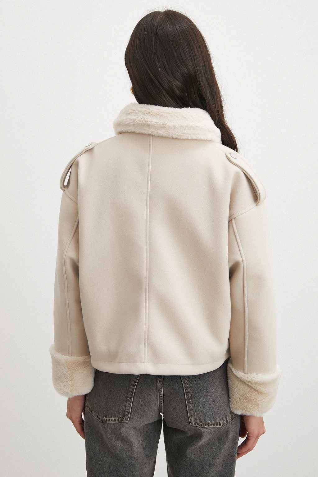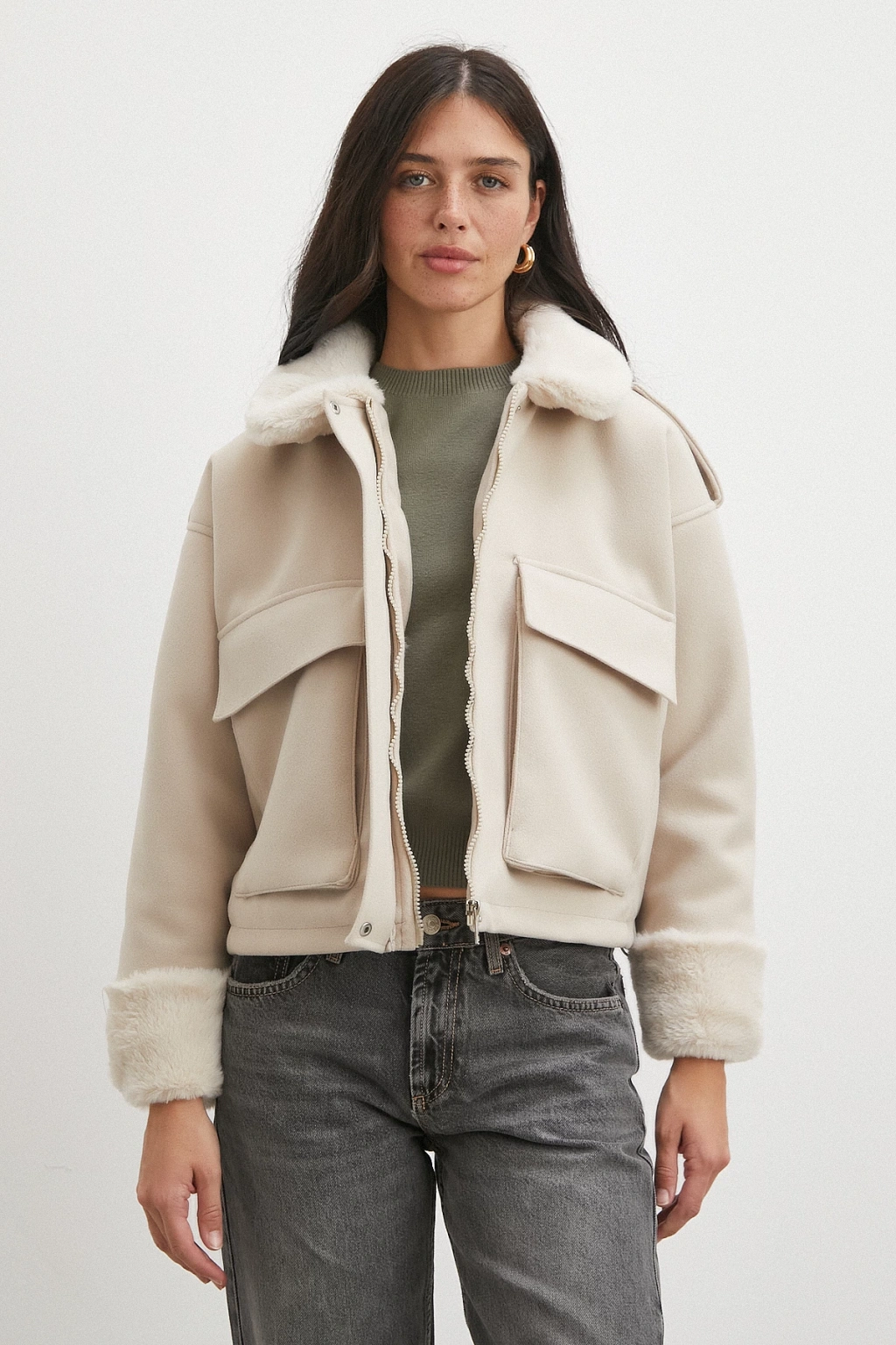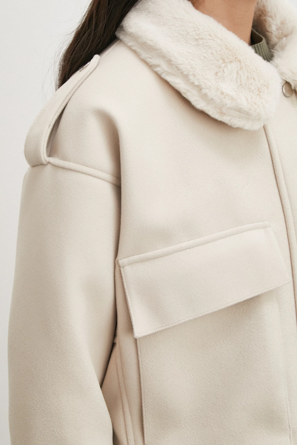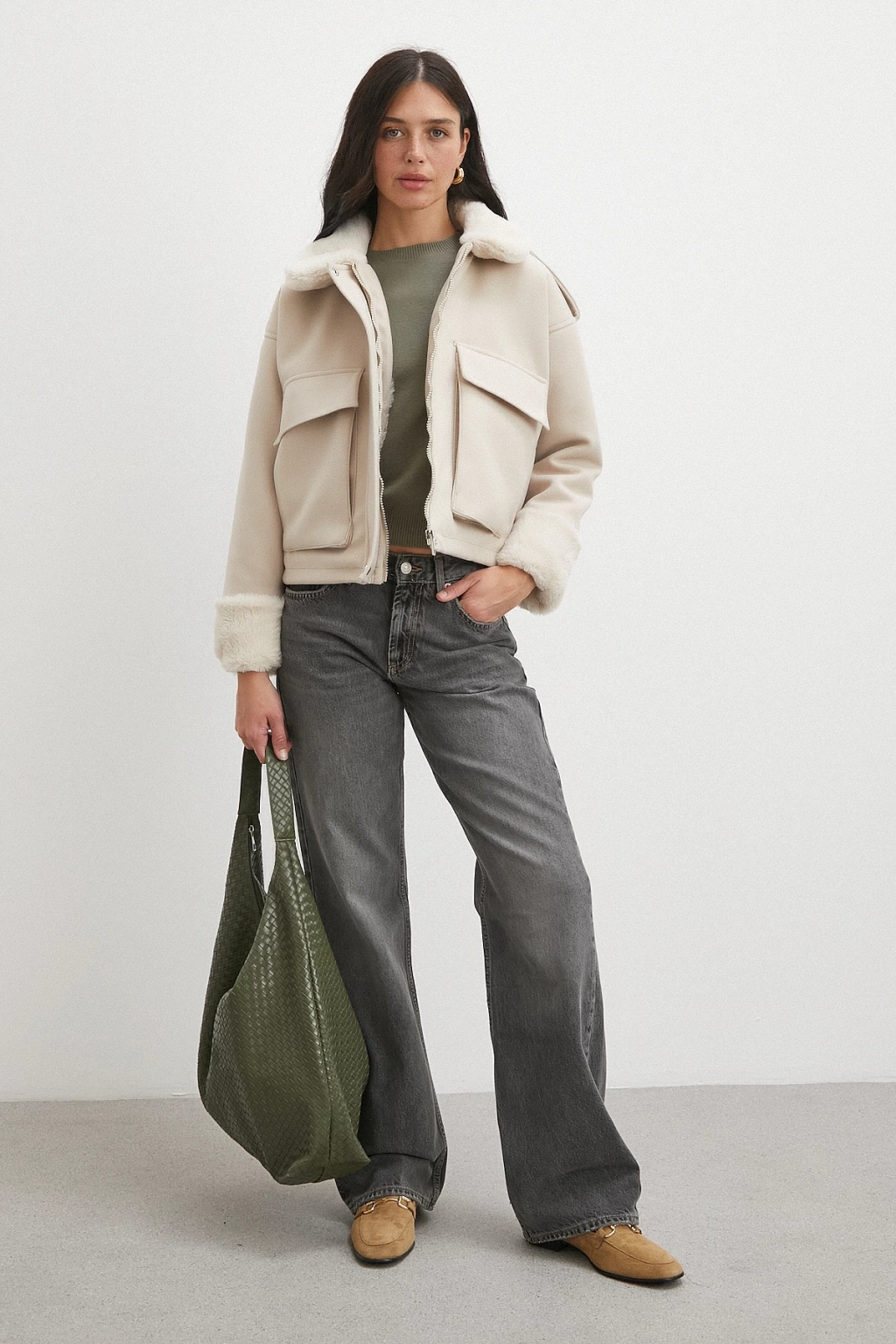 Apoletli Yünlü Körük Cepli Kaşe Mont Bej