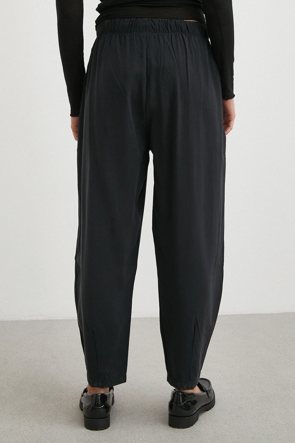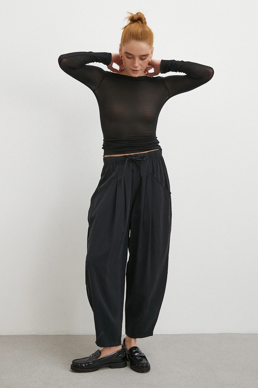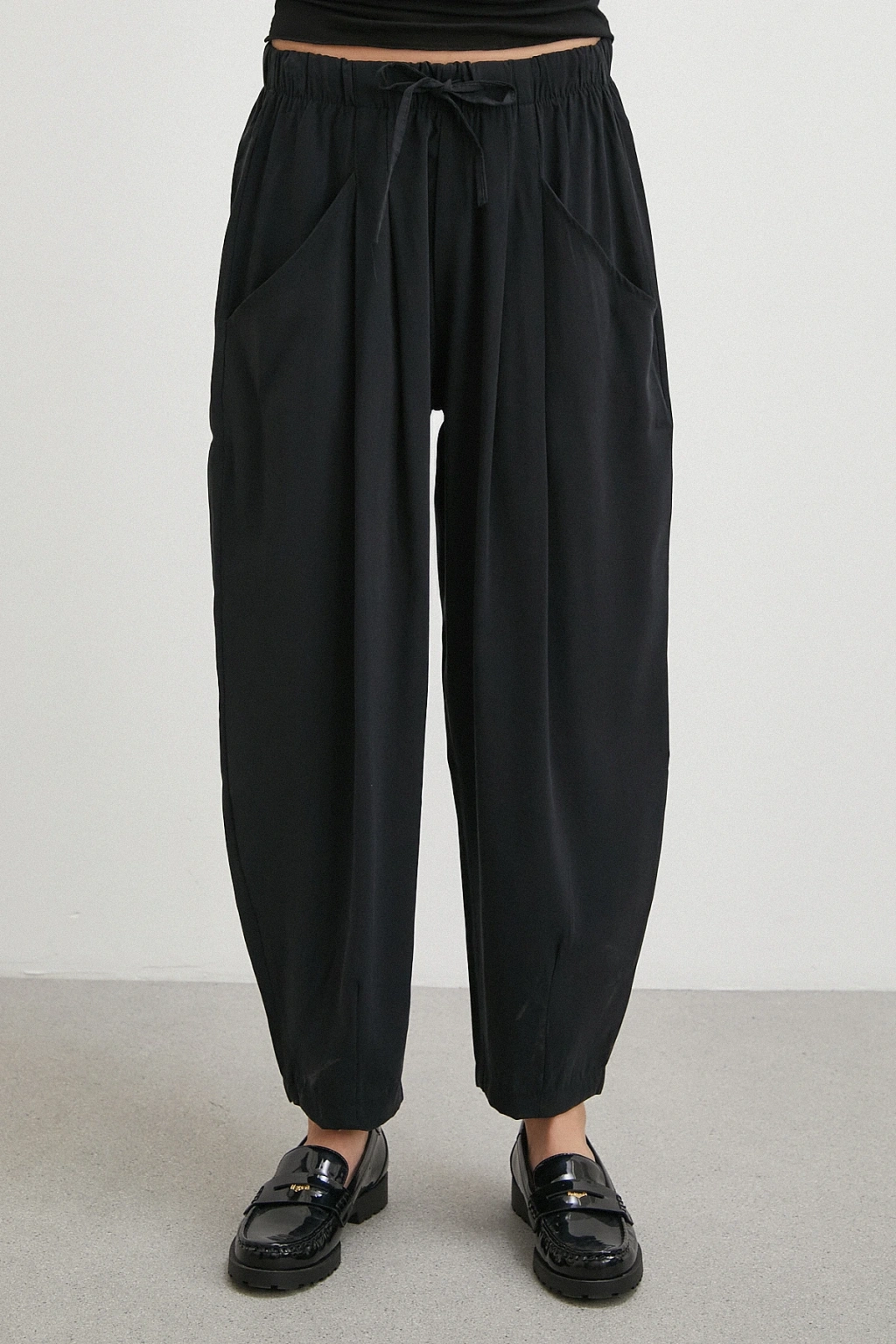 Bağcıklı Beli Lastikli Pileli Pantolon Siyah