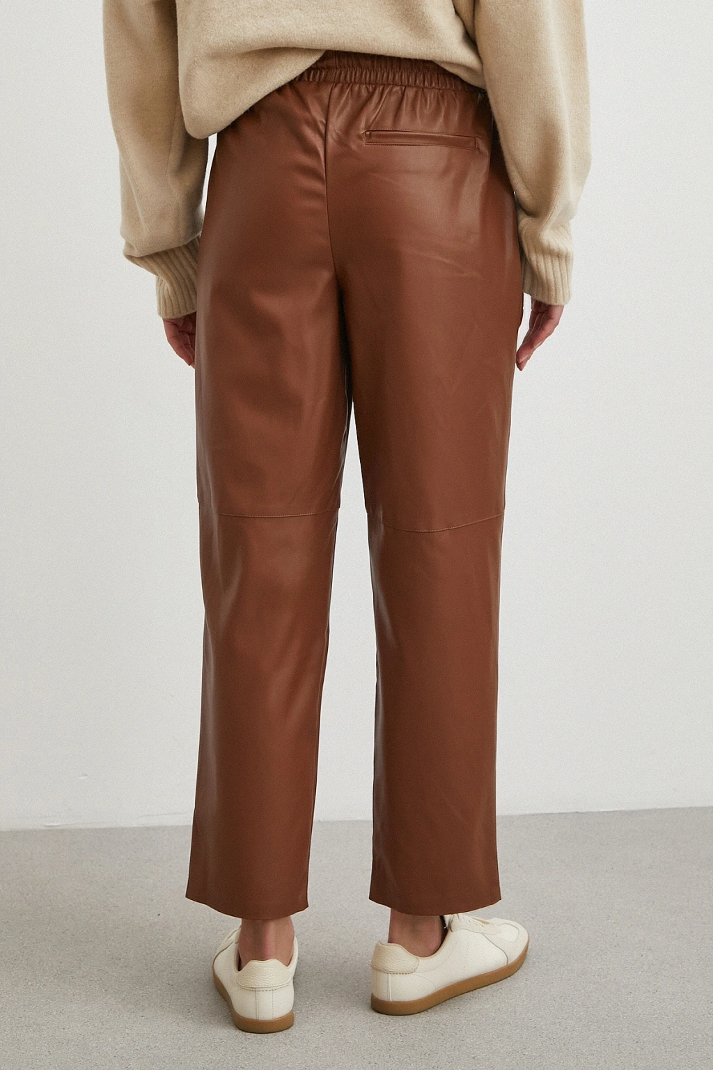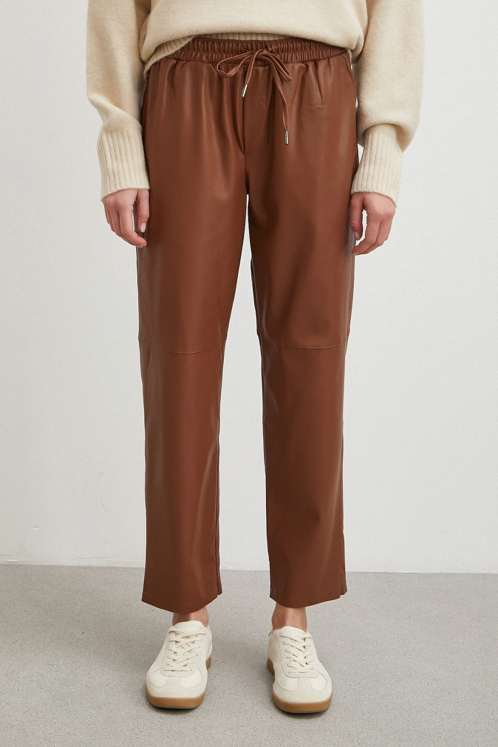 Bağcıklı Beli Lastikli Pileli Pantolon Kahve