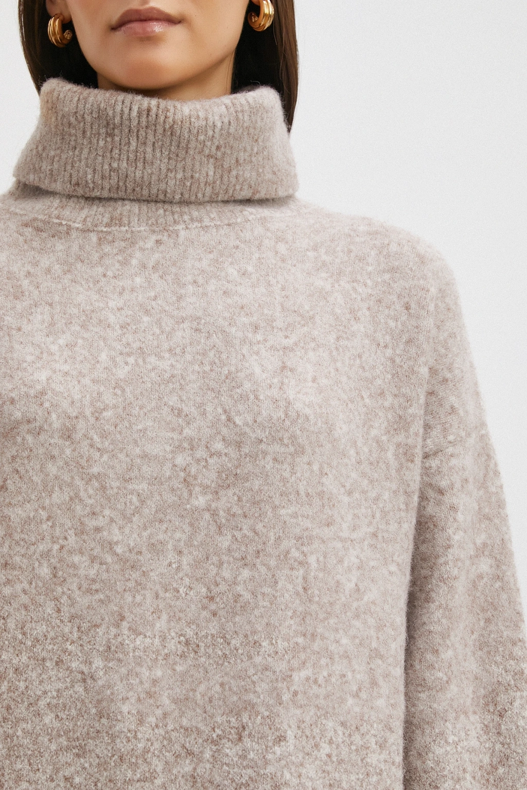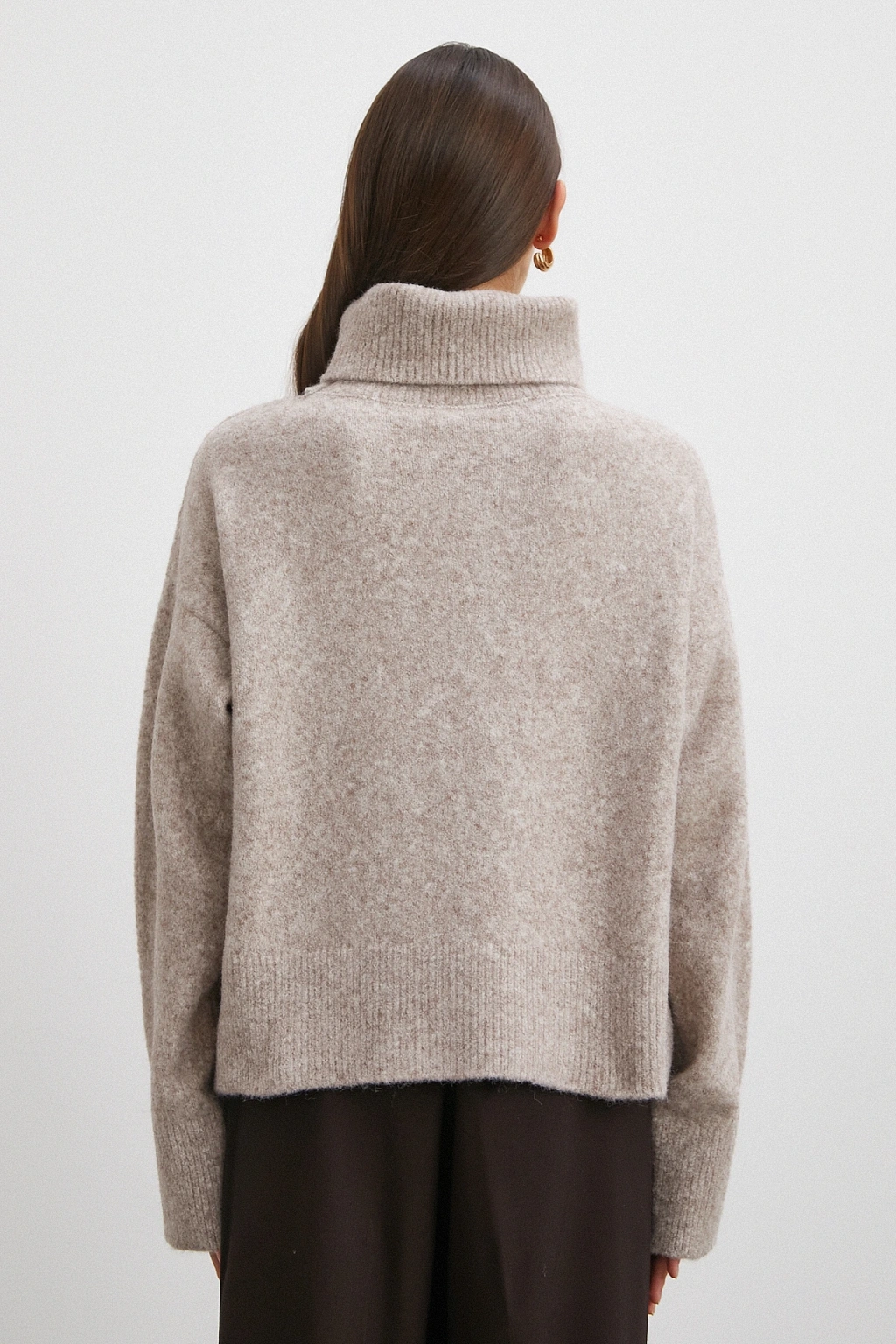 Balıkçı Yaka Uzun Kollu Kazak Vizon