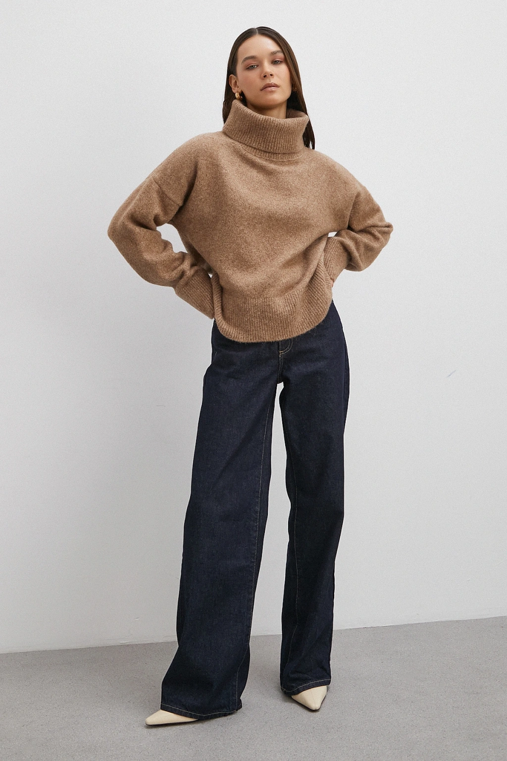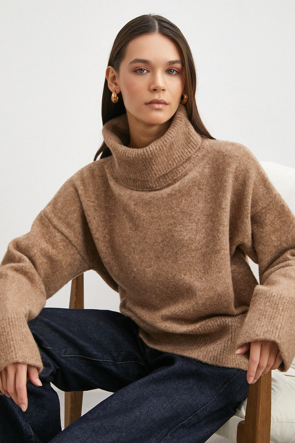 Balıkçı Yaka Uzun Kollu Kazak Vizon