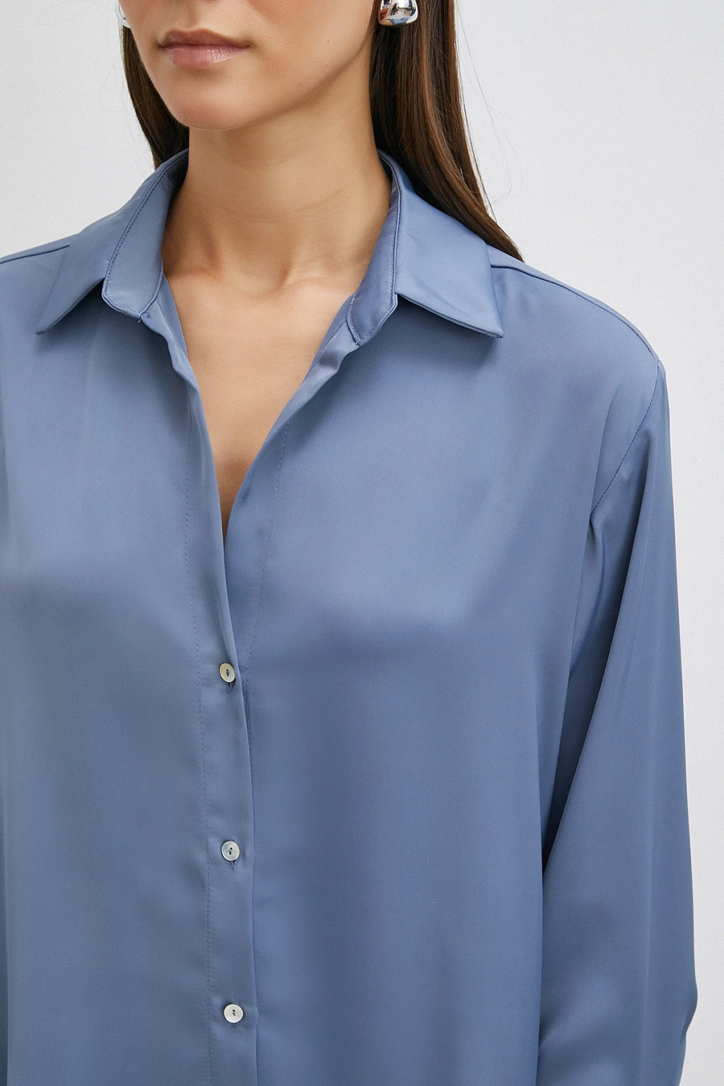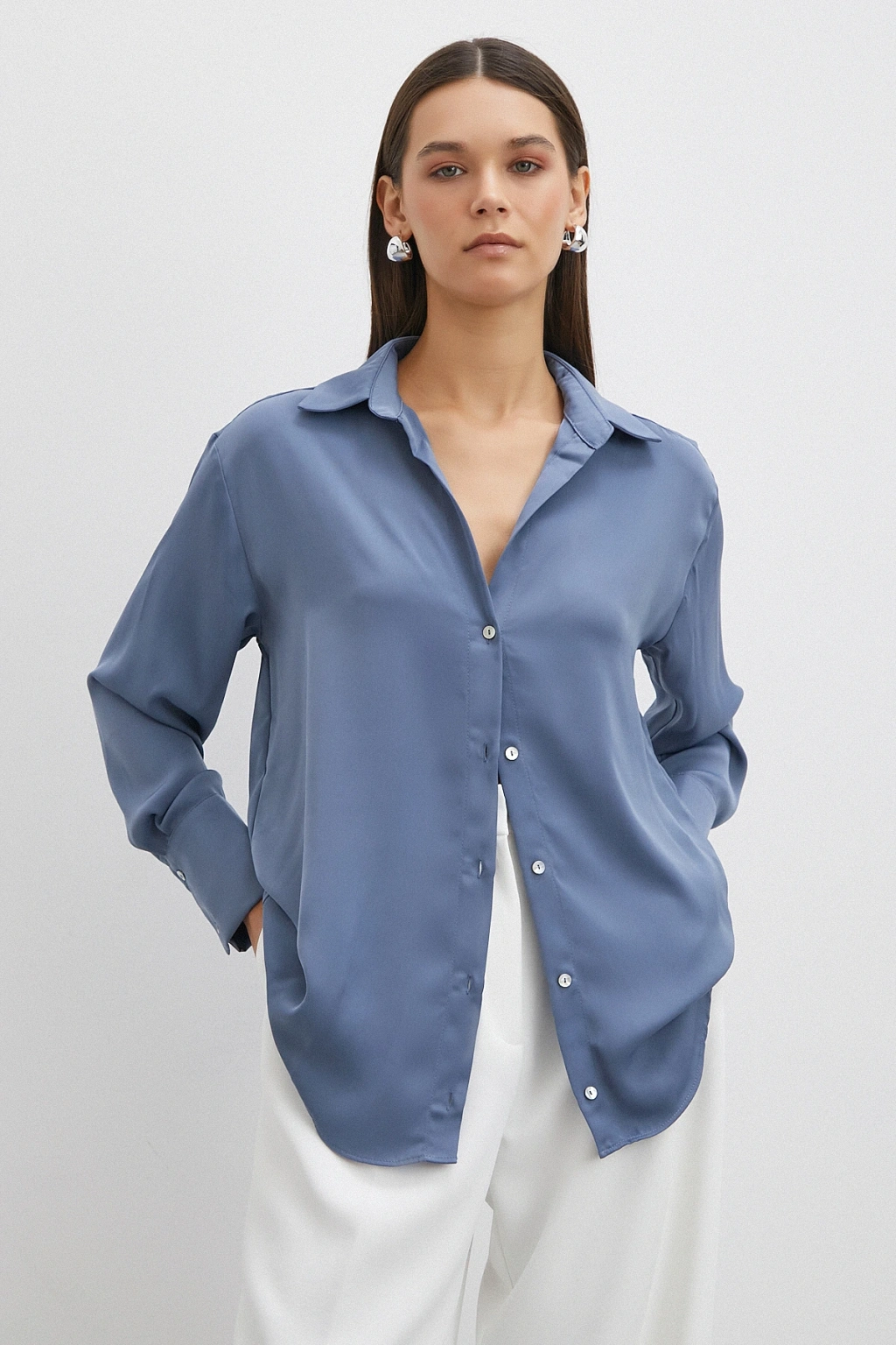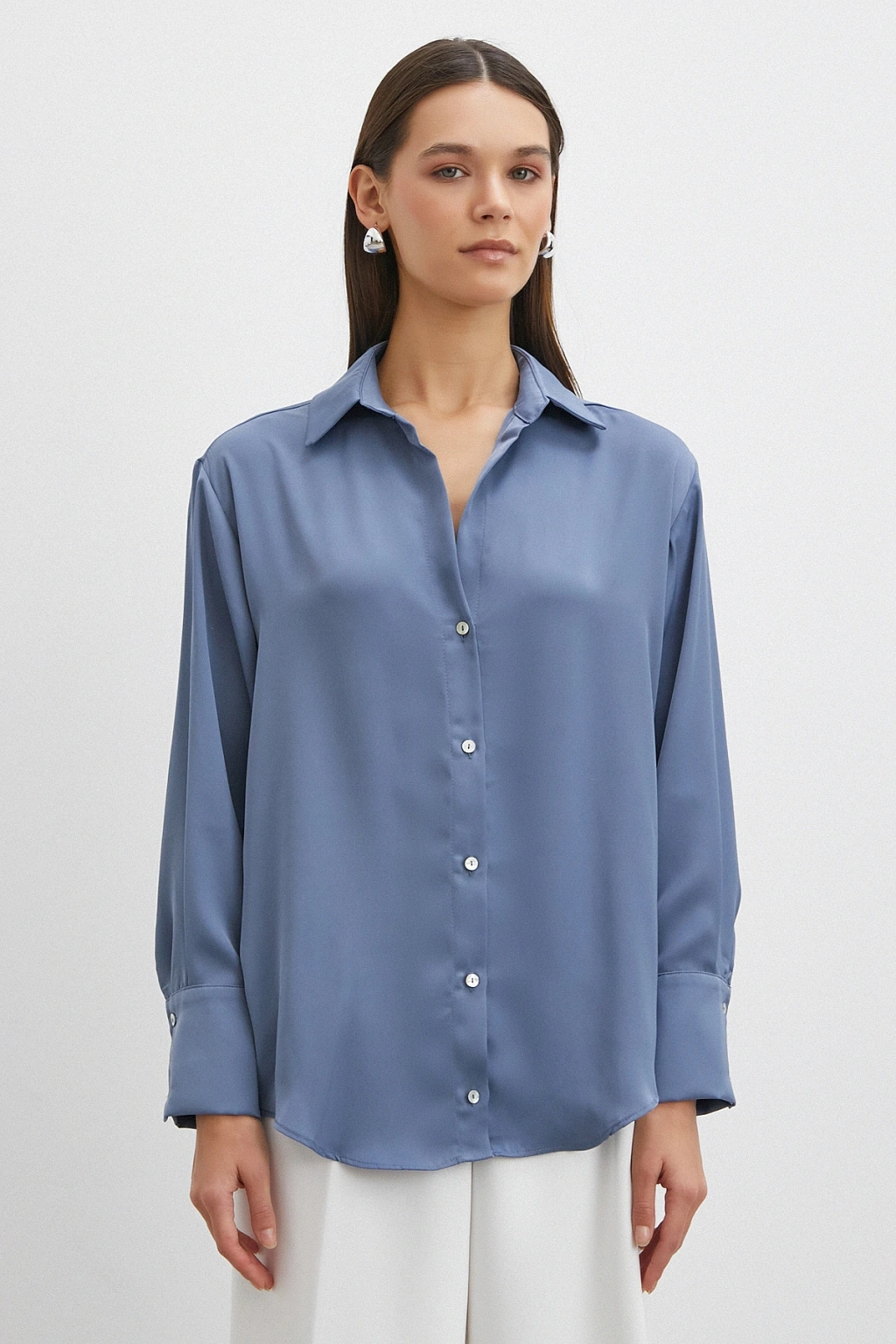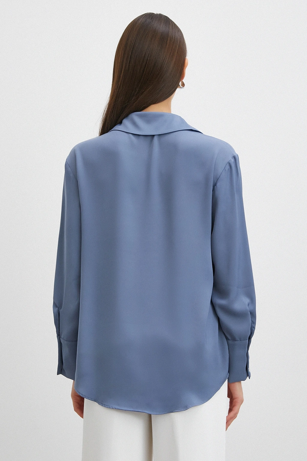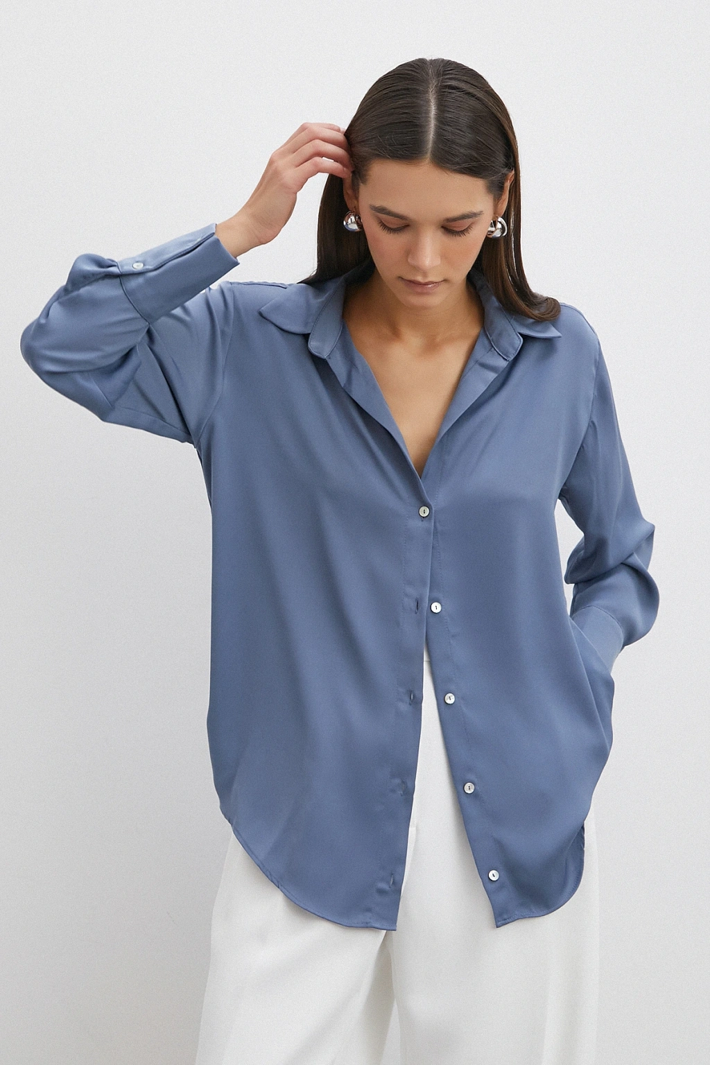 Düğme Detaylı Pamuklu Gömlek Mavi