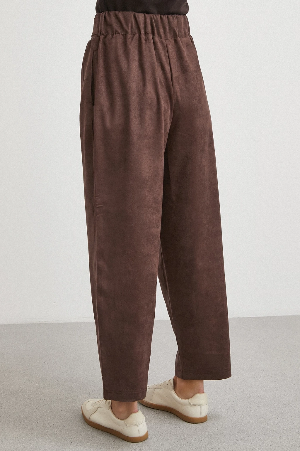 Beli Lastikli Pileli Geniş Paça Pantolon Kahve
