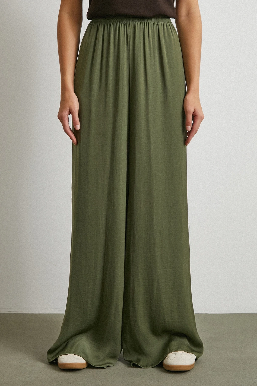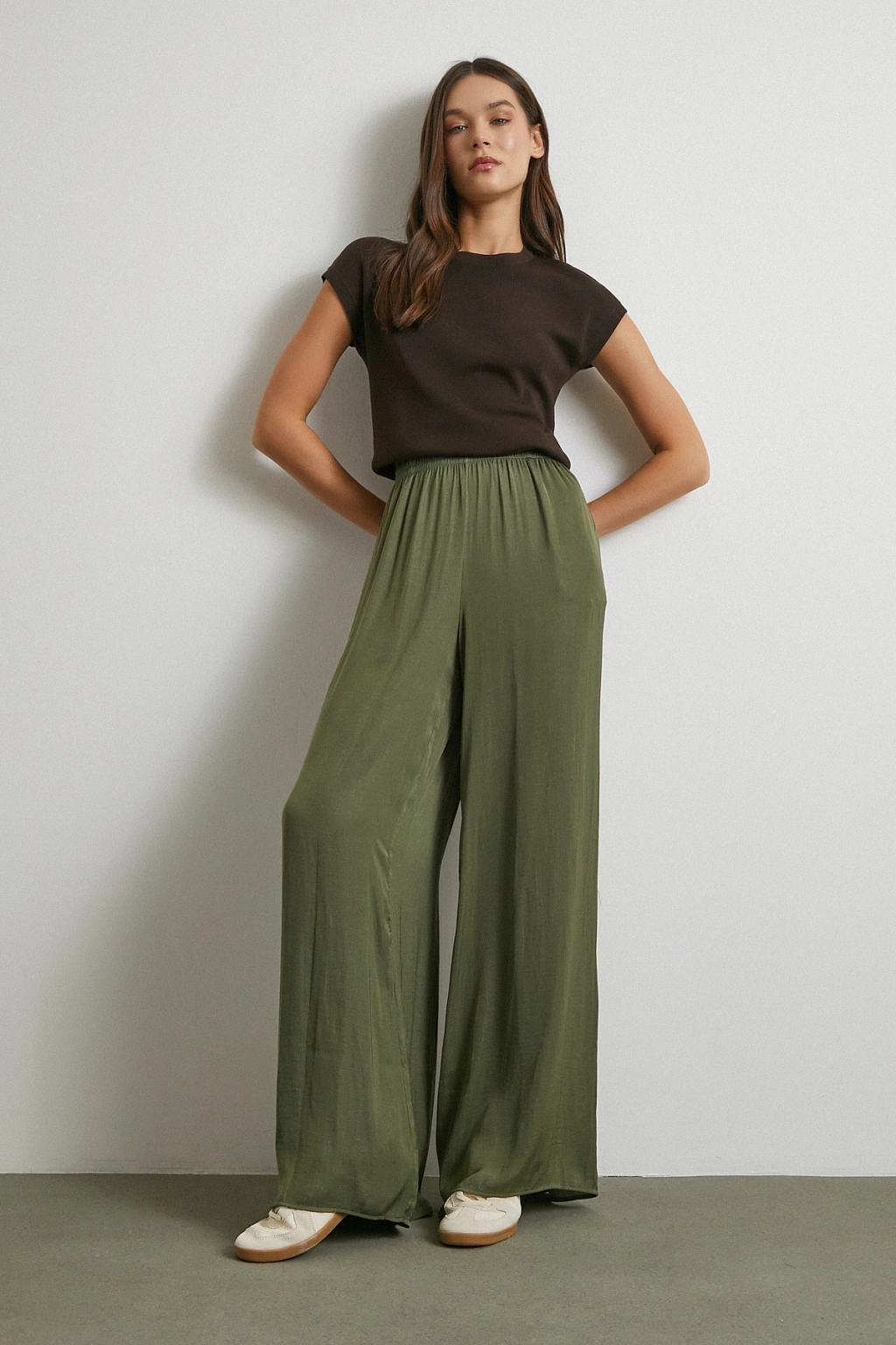 Beli Lastikli Dökümlü Geniş Paça Pantolon Haki