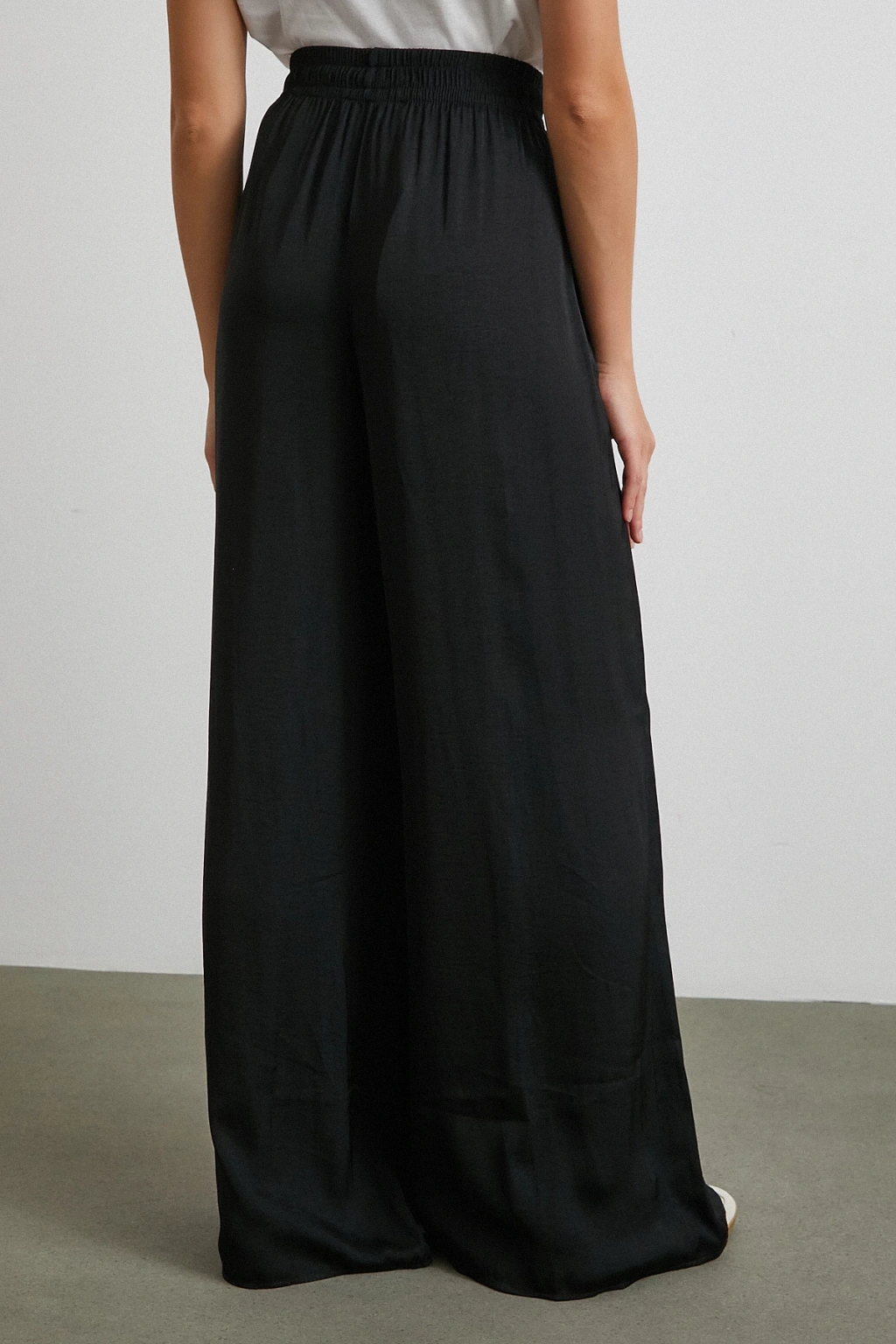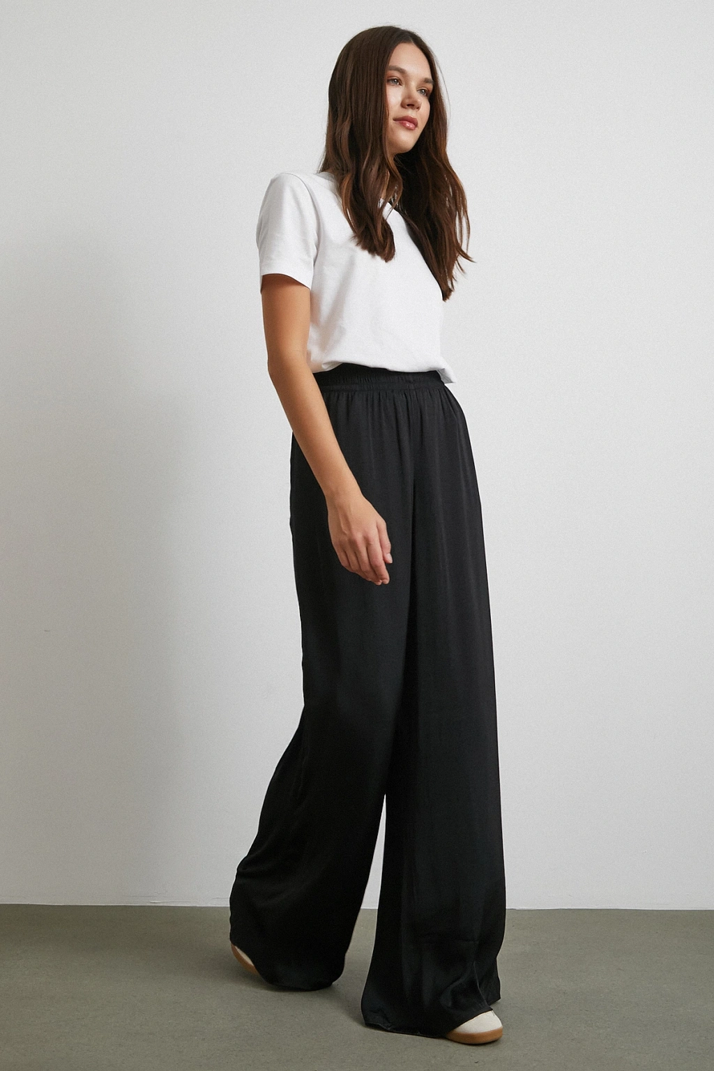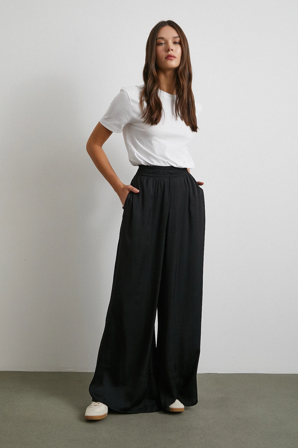 Beli Lastikli Dökümlü Geniş Paça Pantolon Siyah