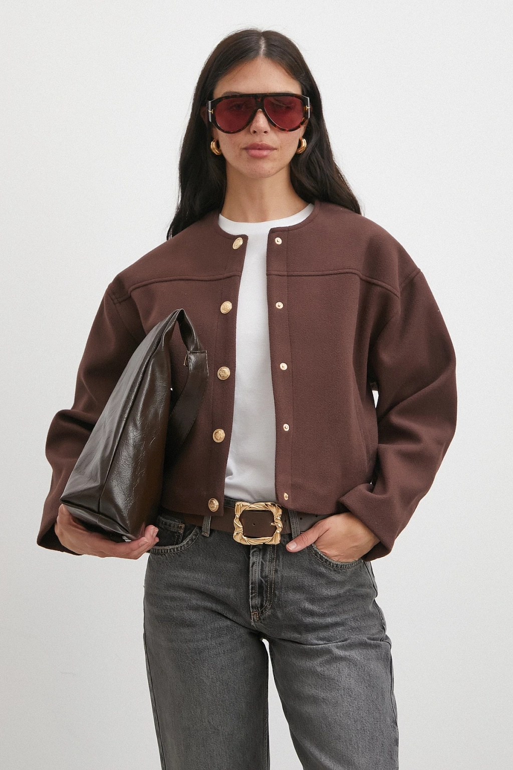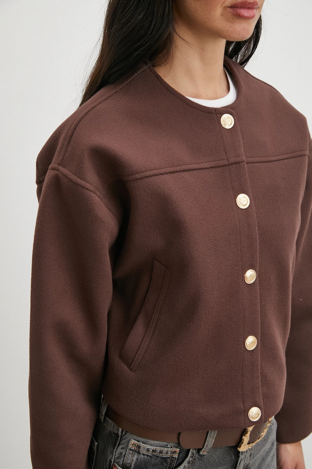Polo Yaka Cepli Gold Düğmeli Ceket Kahve