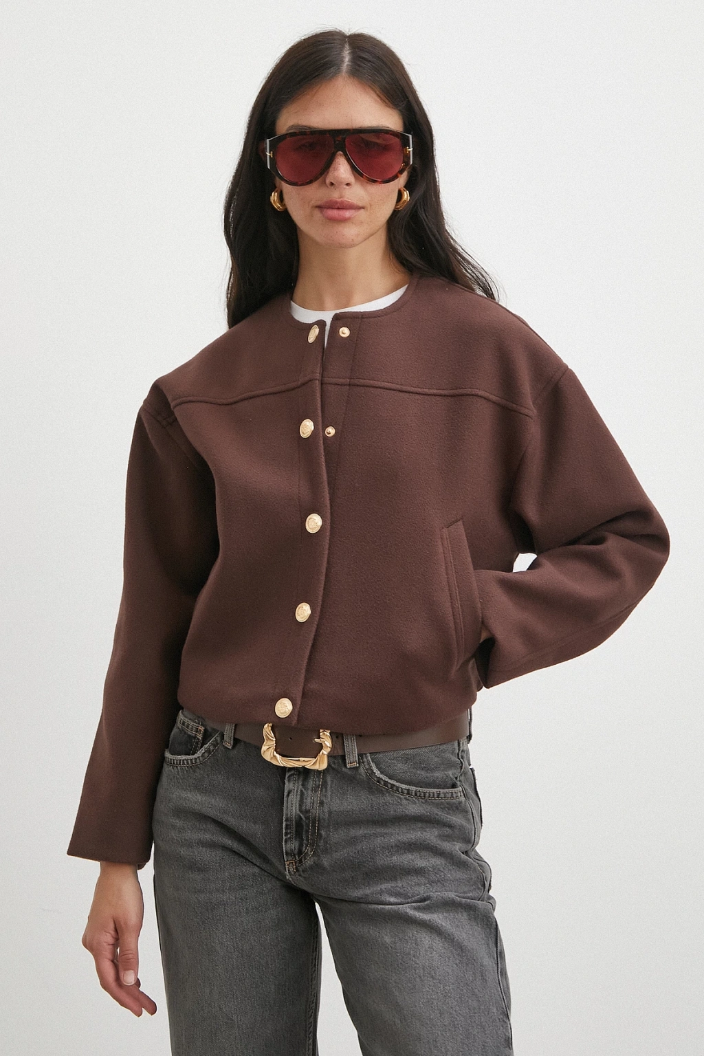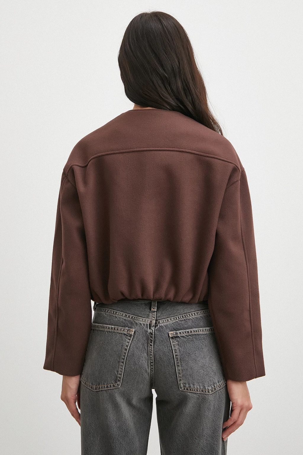 Beli Lastikli Düğmeli Bomber Ceket Kahve