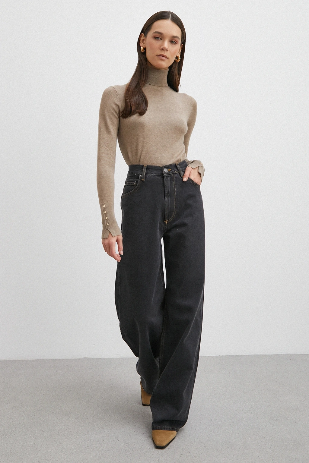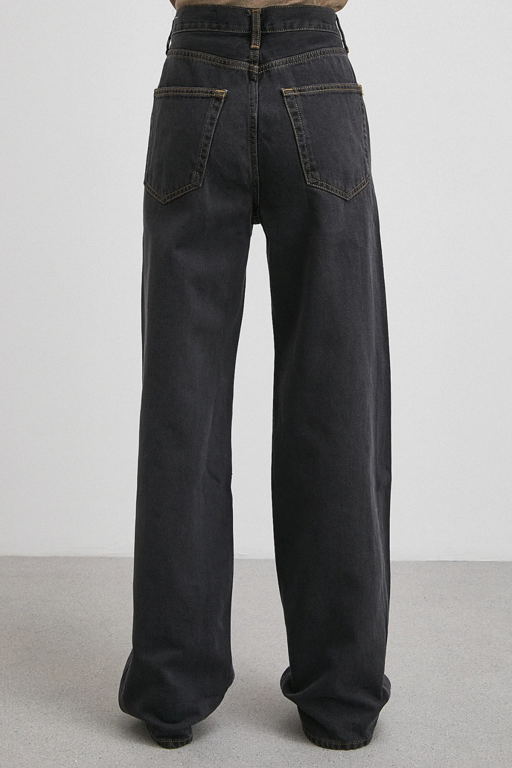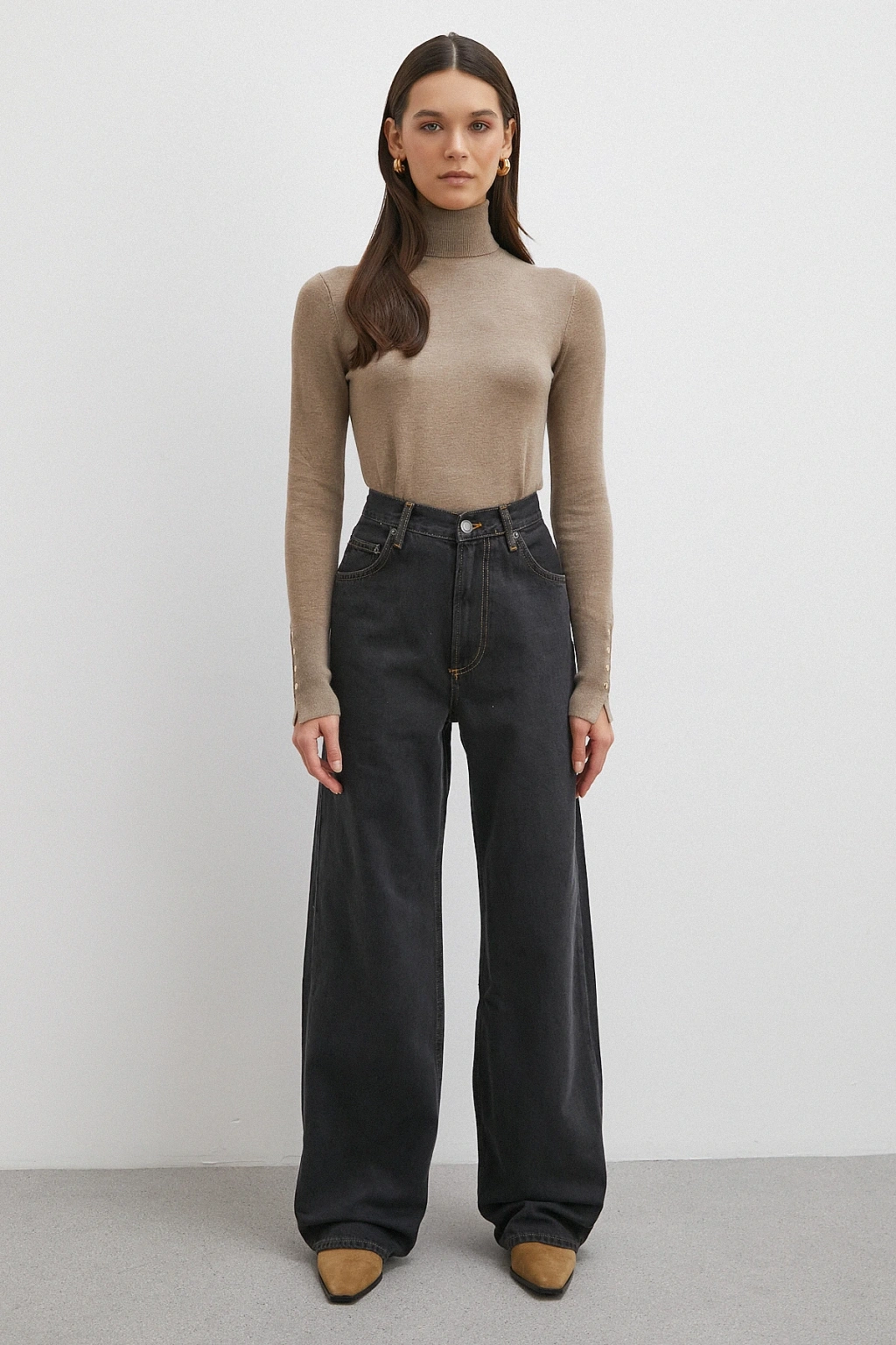 Yüksek Bel Geniş Paça Beş Cepli Jean Mavi
