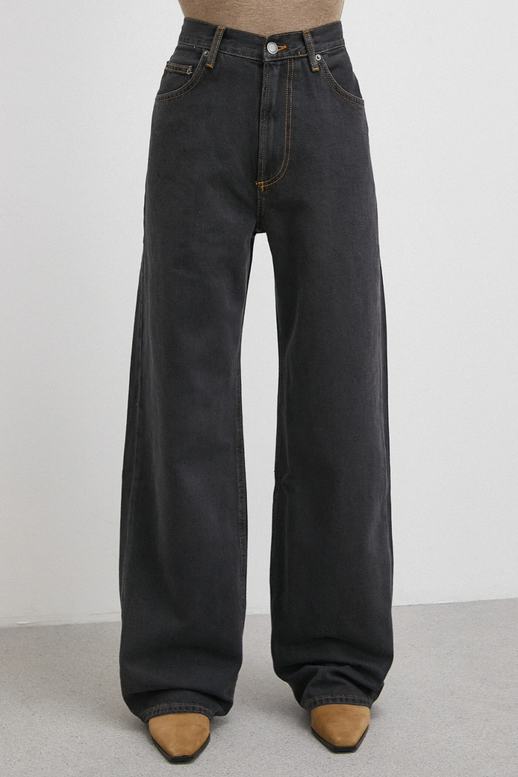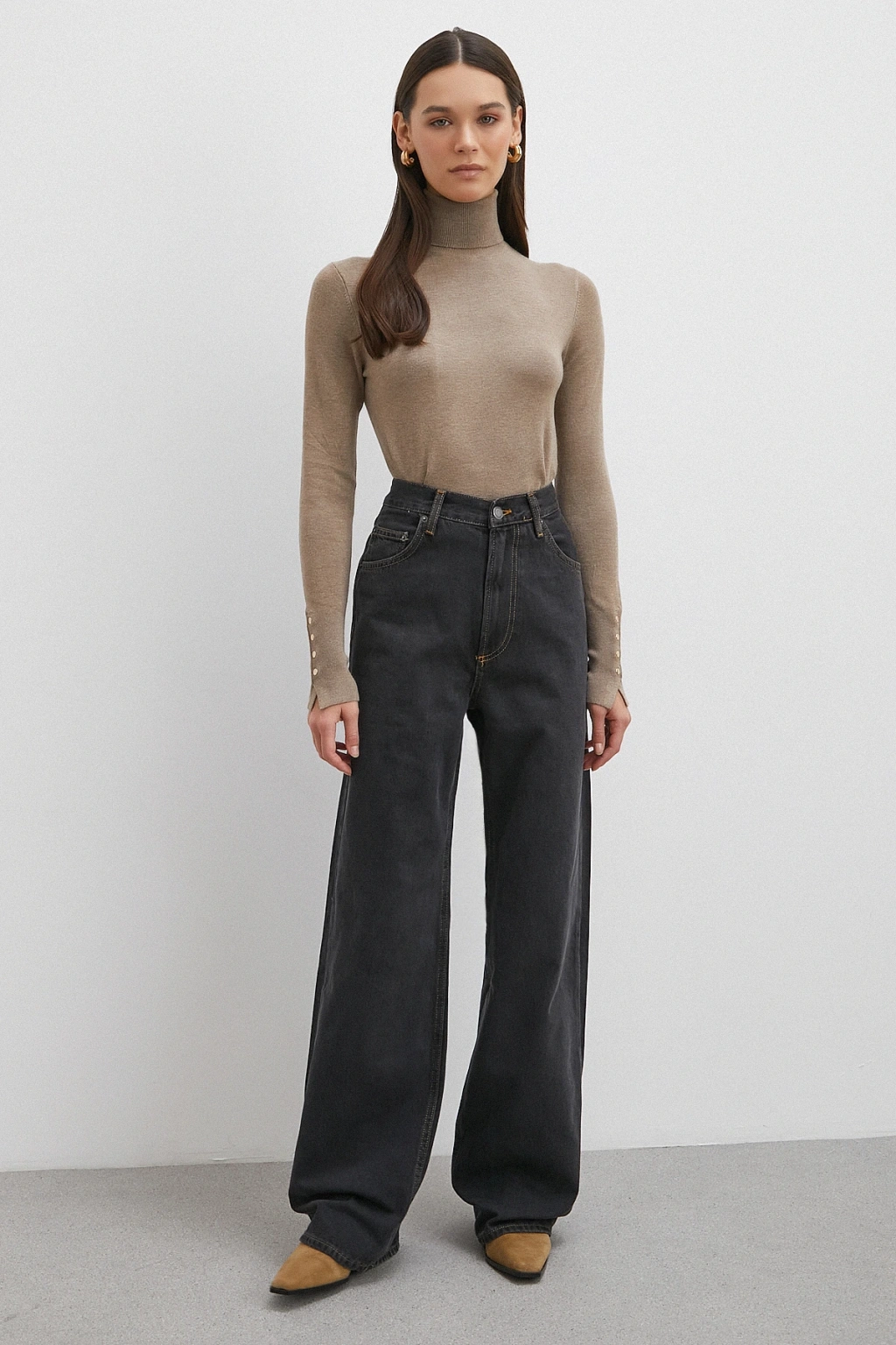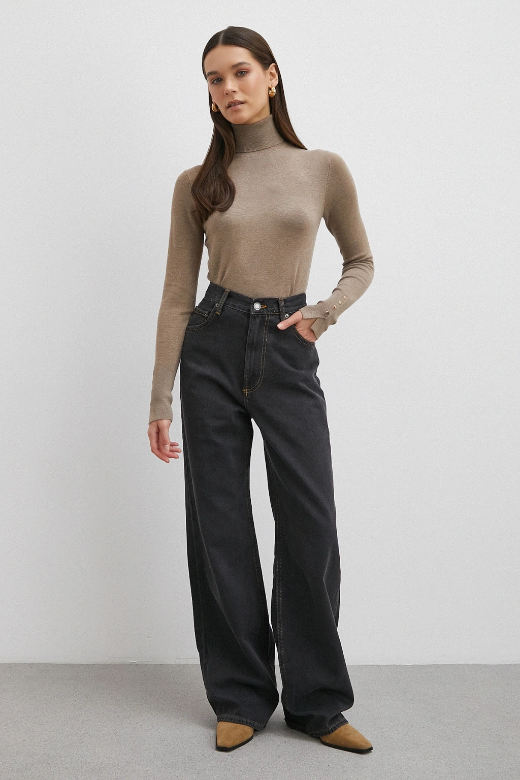 Yüksek Bel Geniş Paça Beş Cepli Jean Mavi