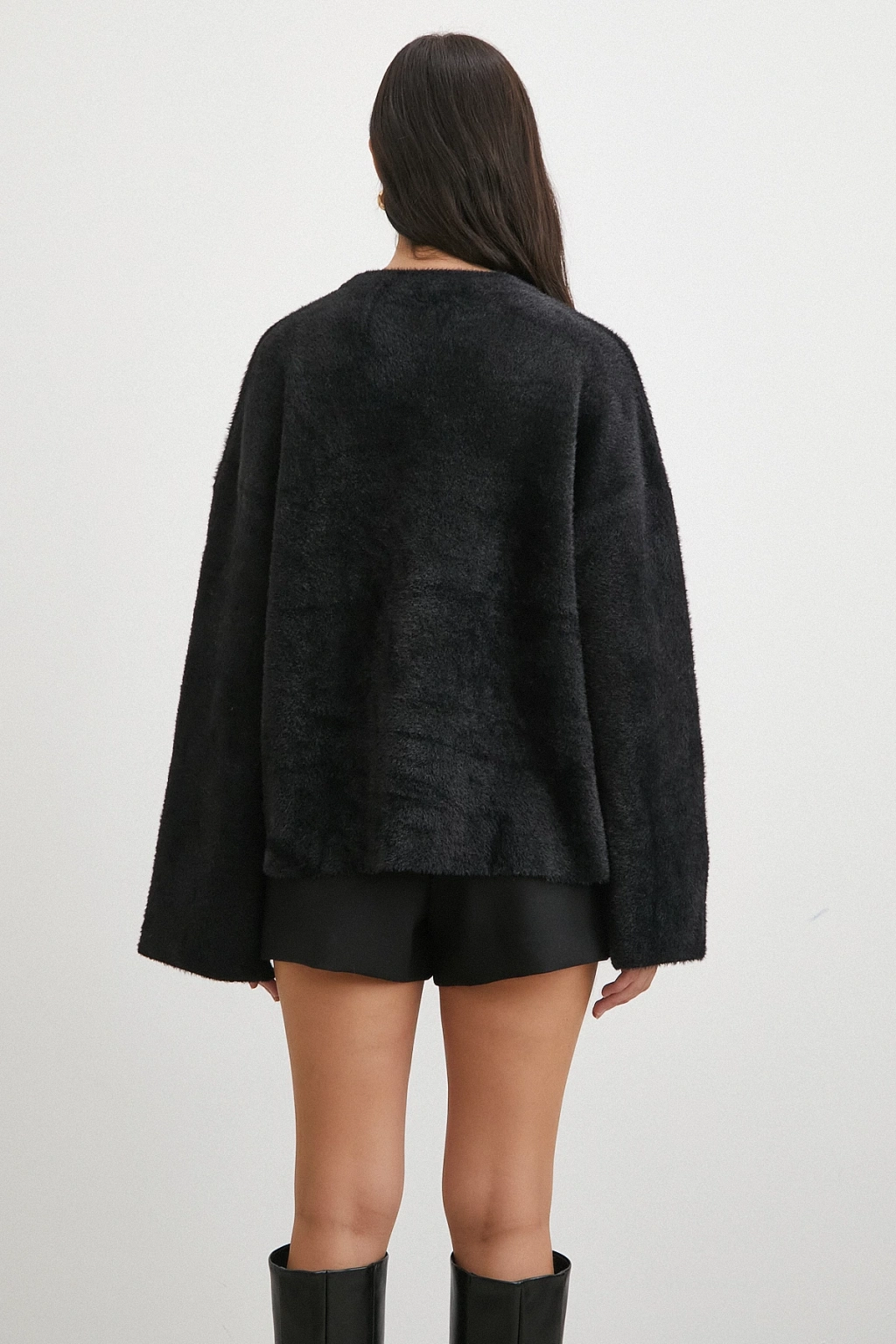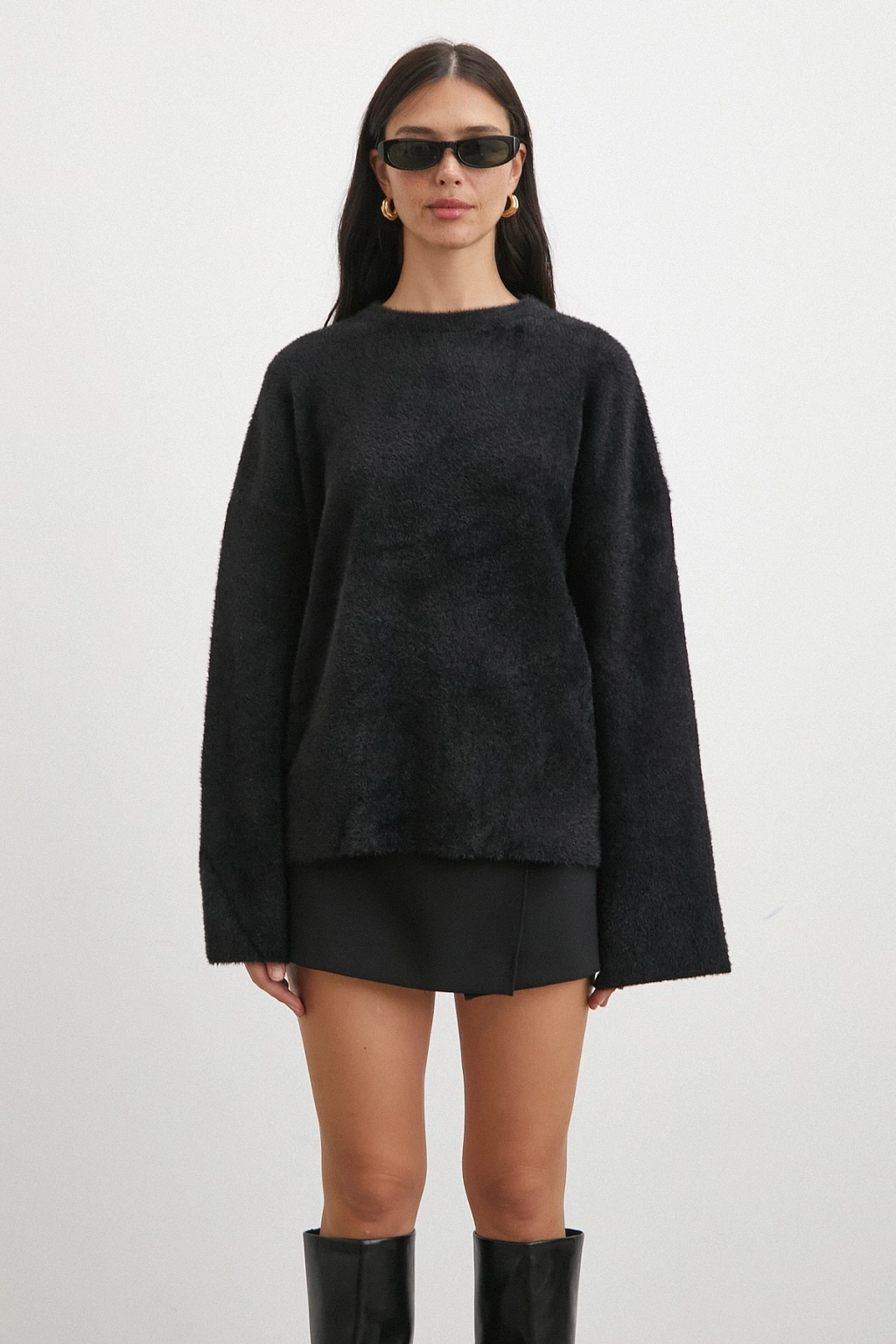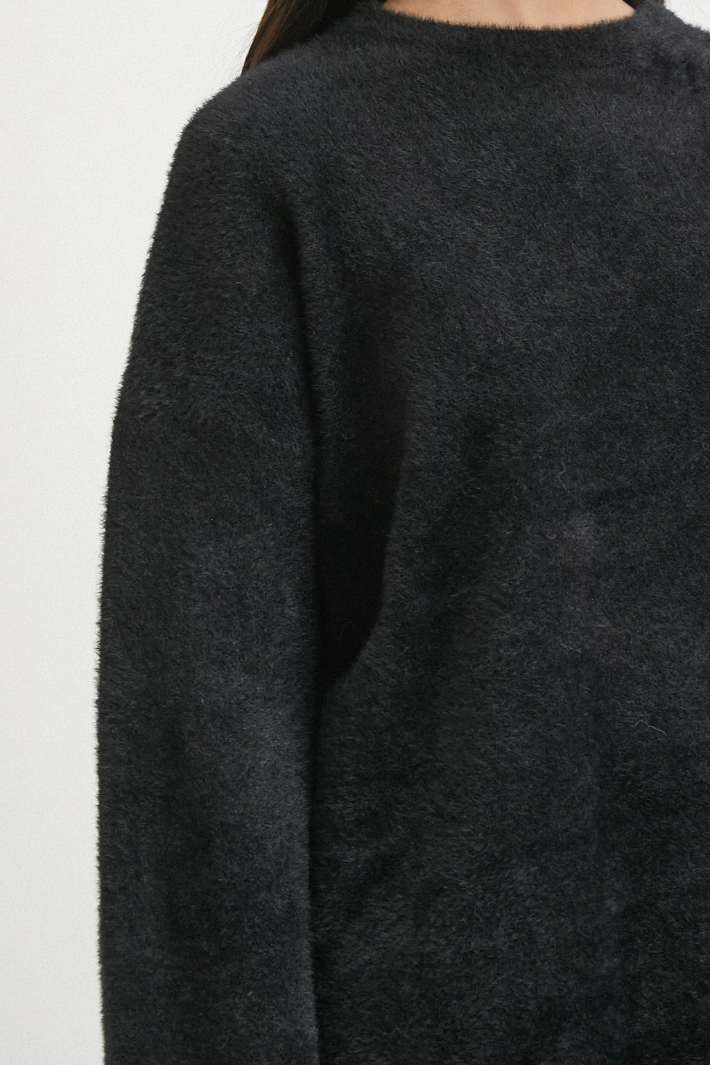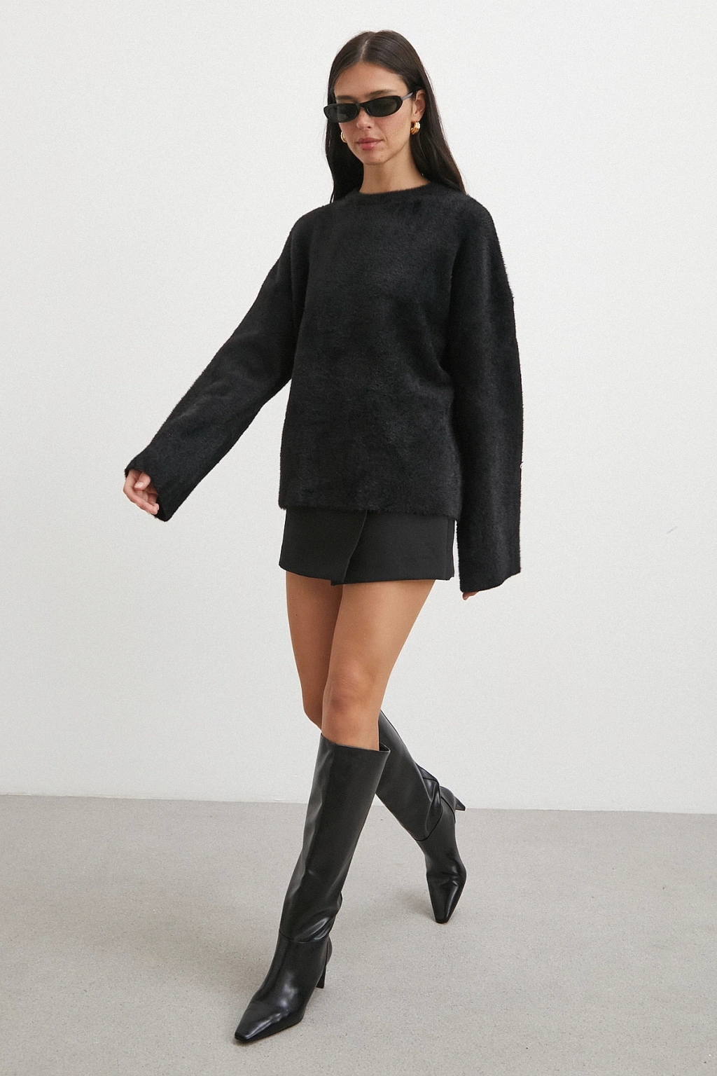 Saç Örgülü Yarım Fermuarlı Kazak Siyah