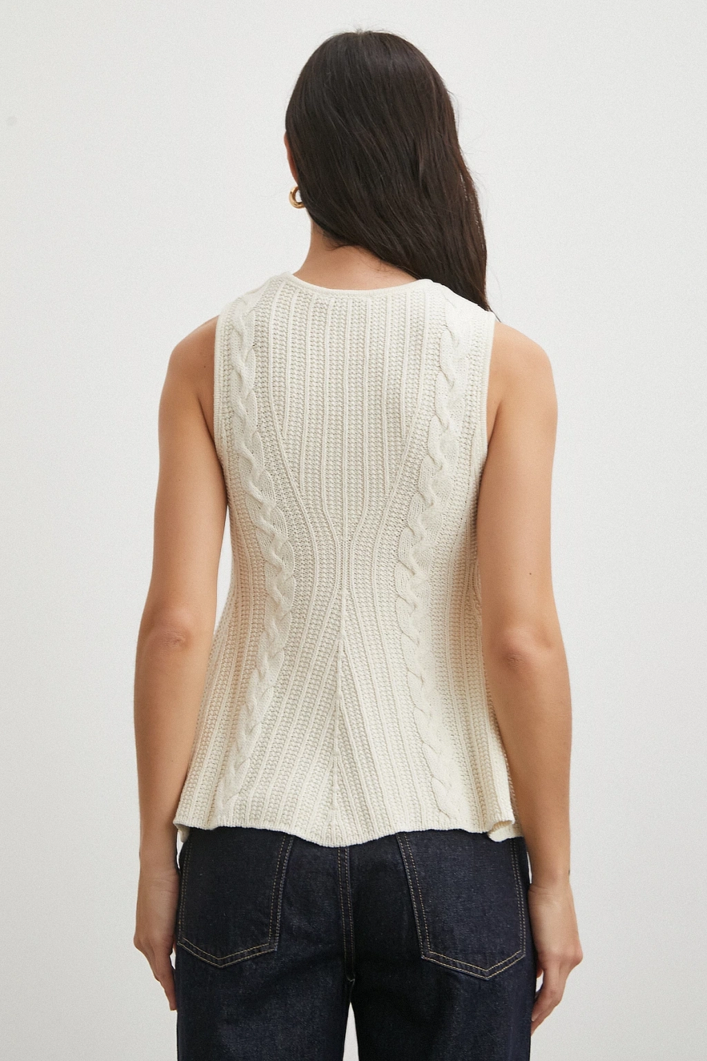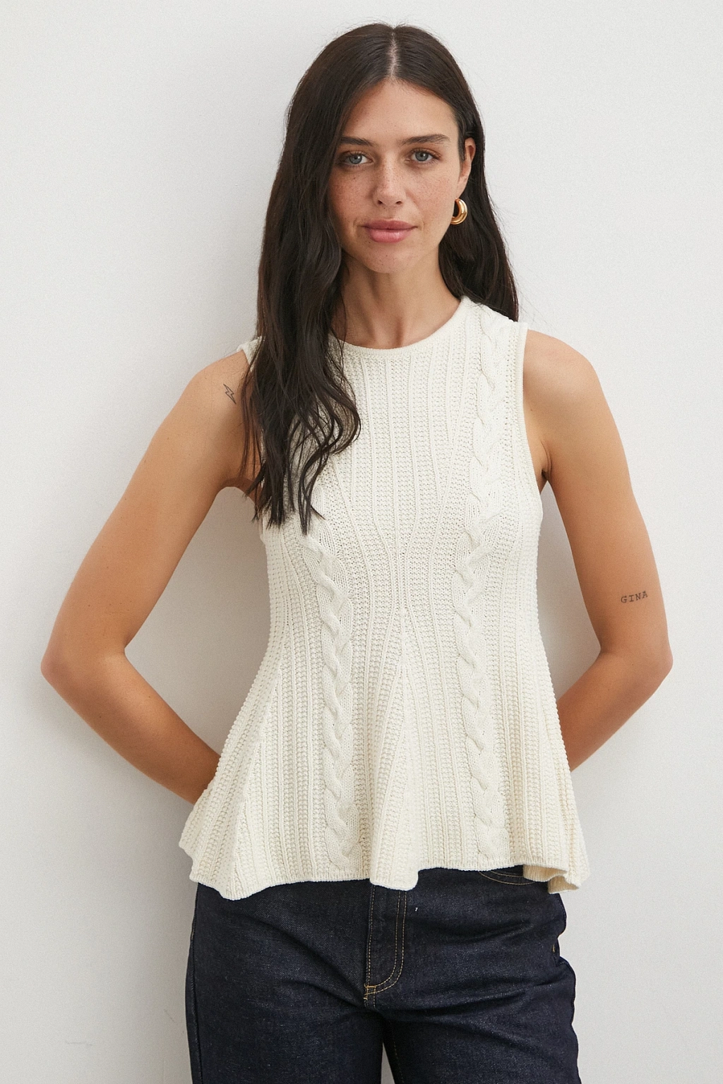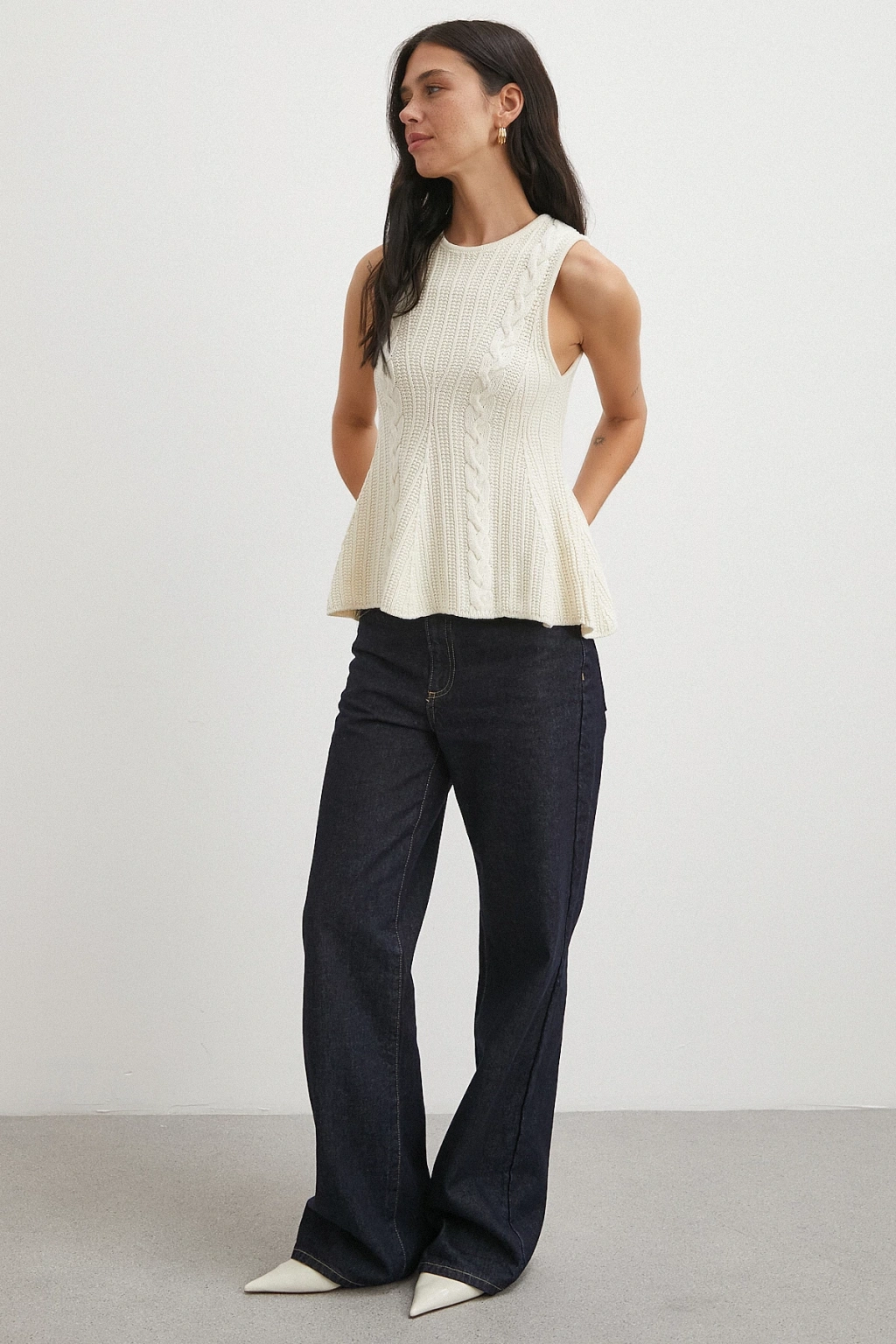 Saç Örgülü Yarım Fermuarlı Kazak Ekru
