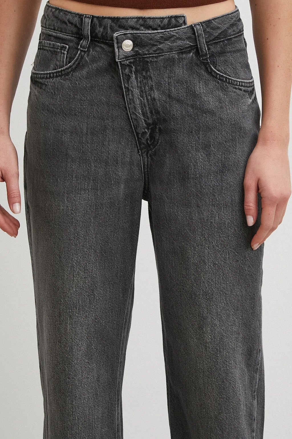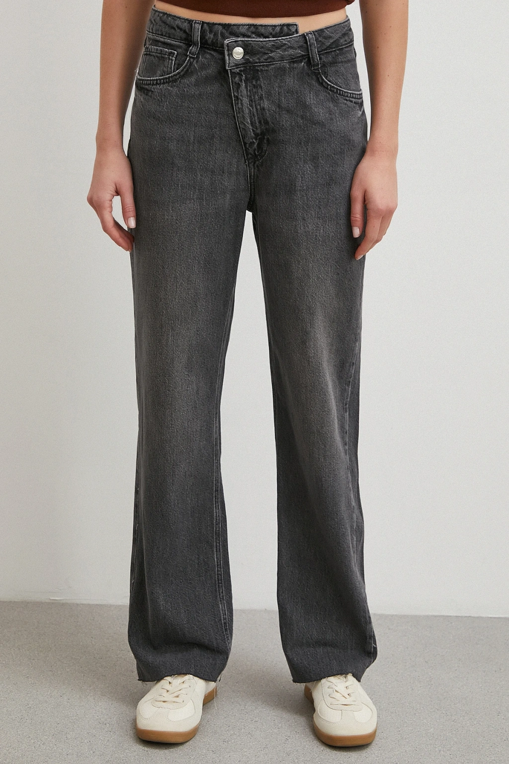 Yüksek Bel Paça Detaylı Jean Füme
