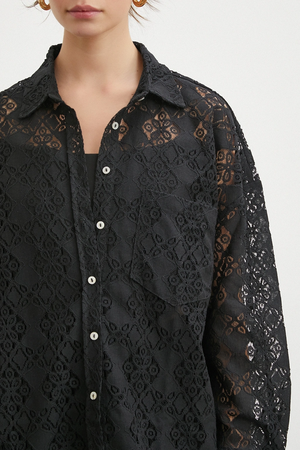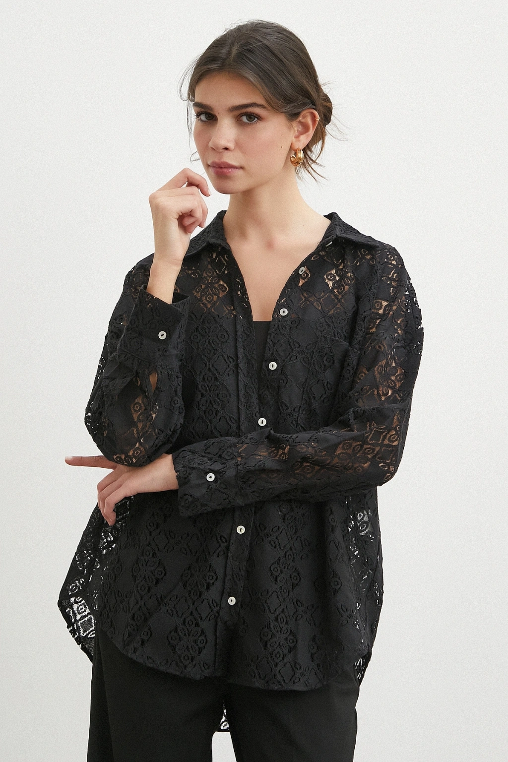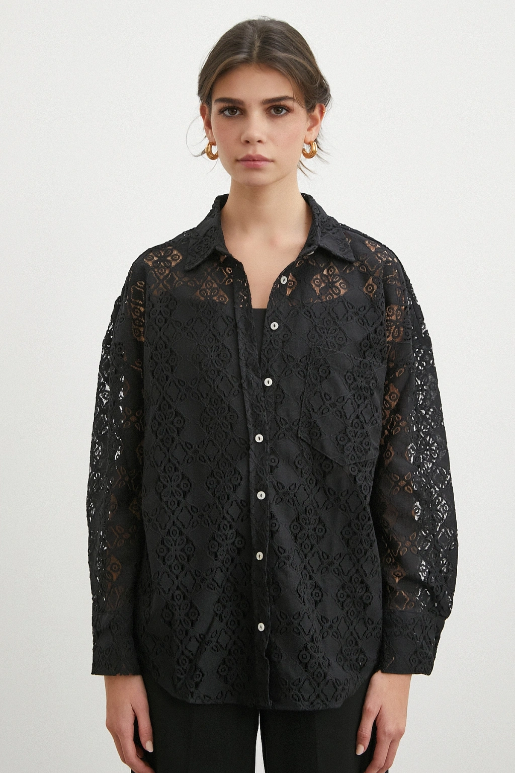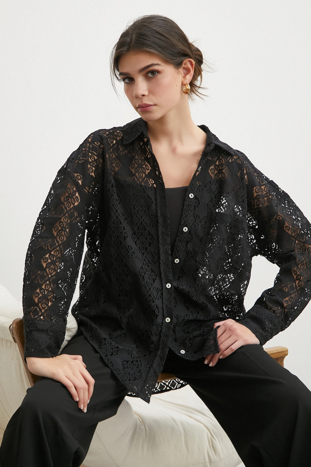 Cepli Dantel Gömlek Siyah