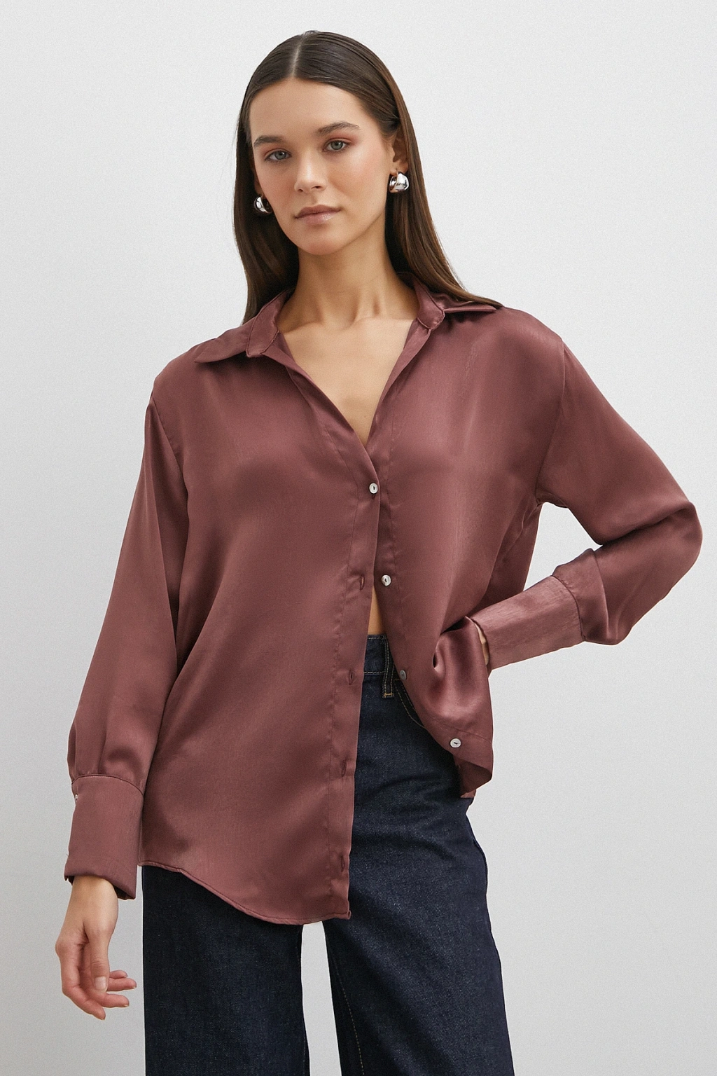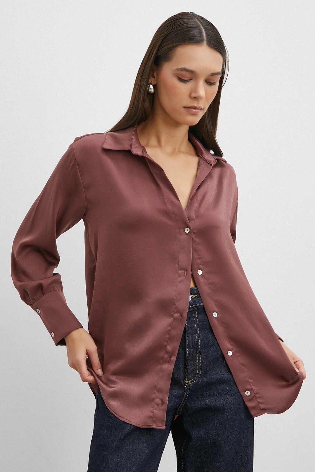 Chanel Saten Gömlek Mürdüm
