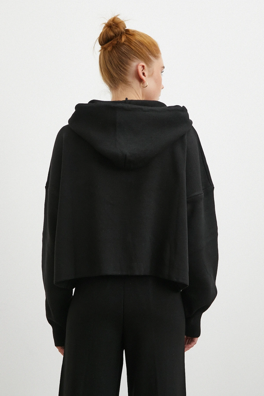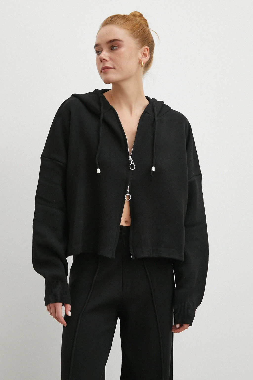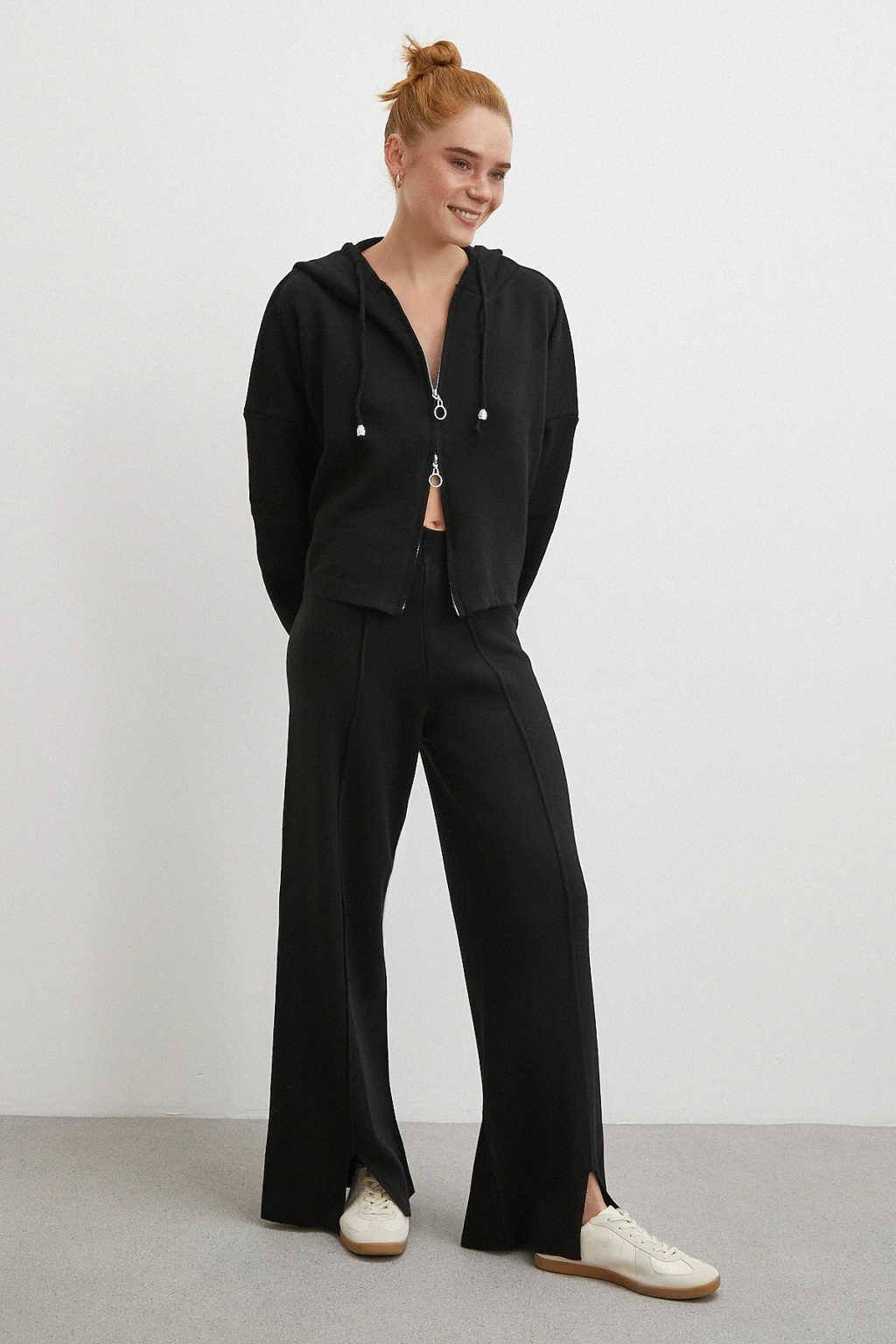 Çift Fermuarlı Kapüşonlu Pantolonlu Takım Siyah