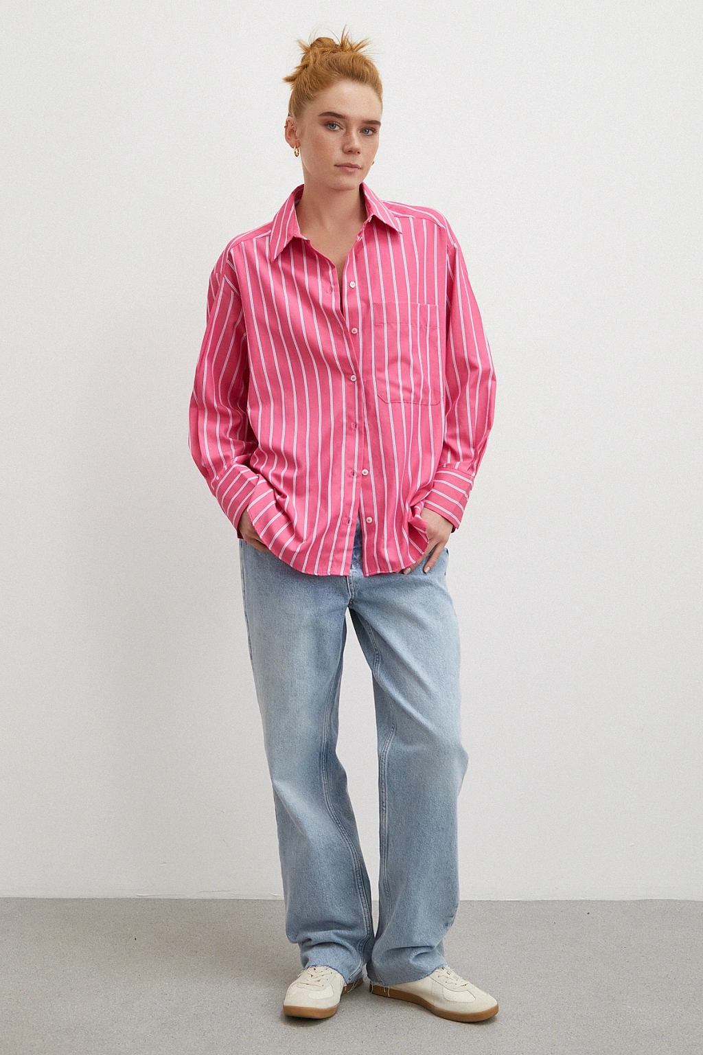 Çizgili Poplin Gömlek Pembe