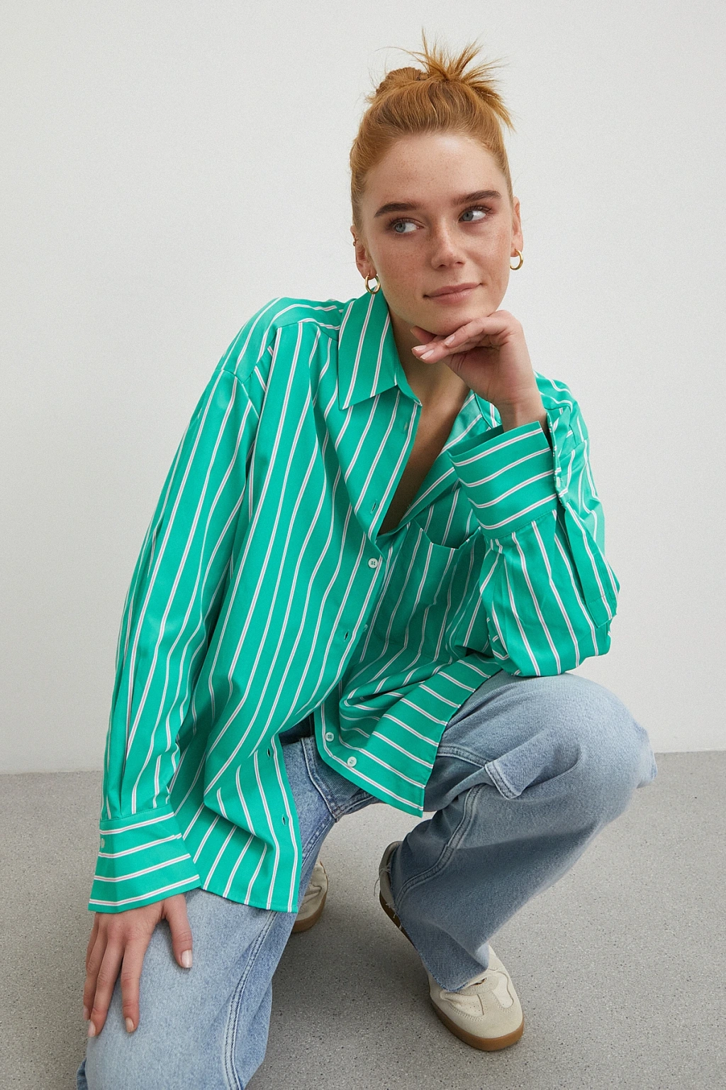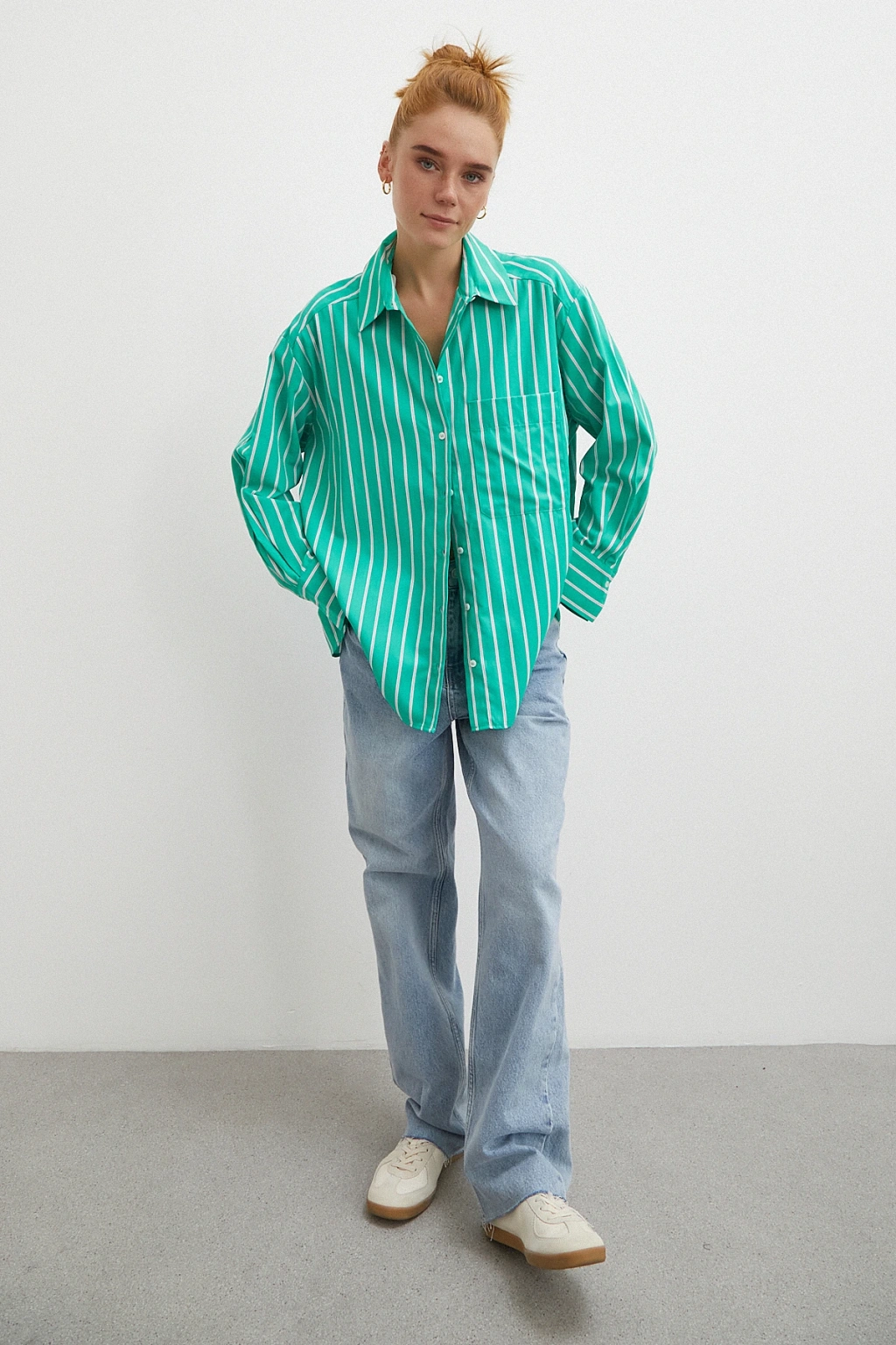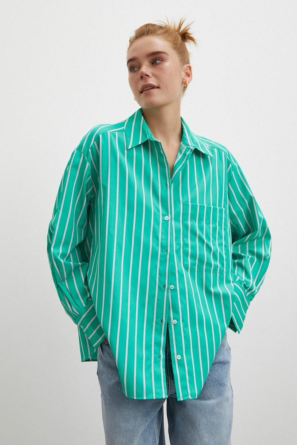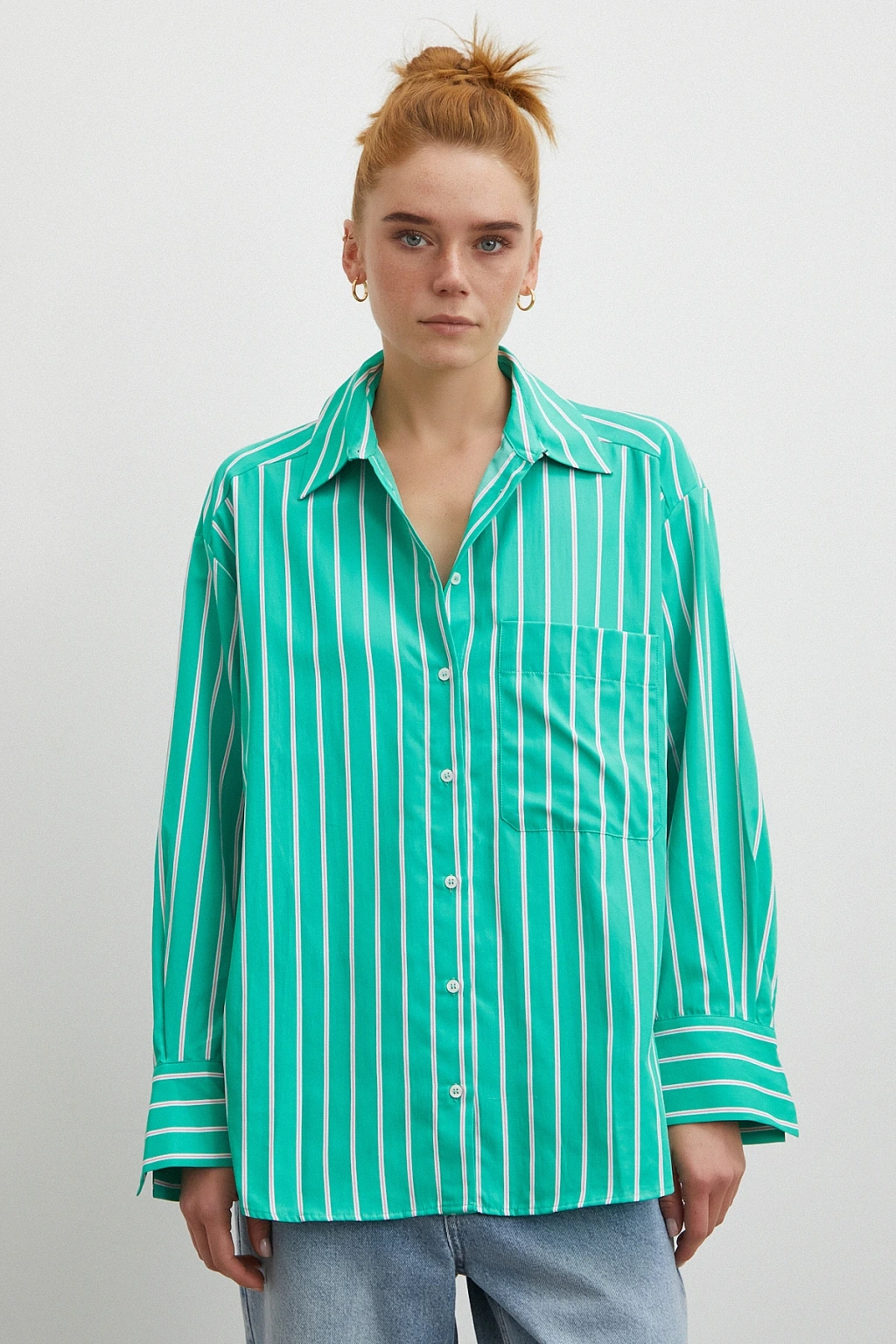 Düğme Detaylı Pamuklu Gömlek Mavi