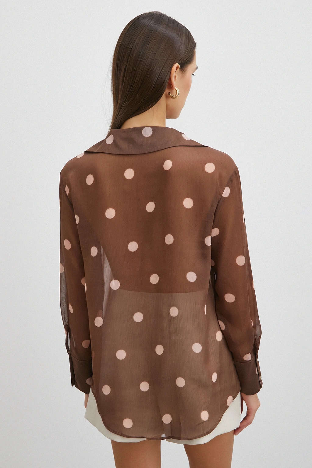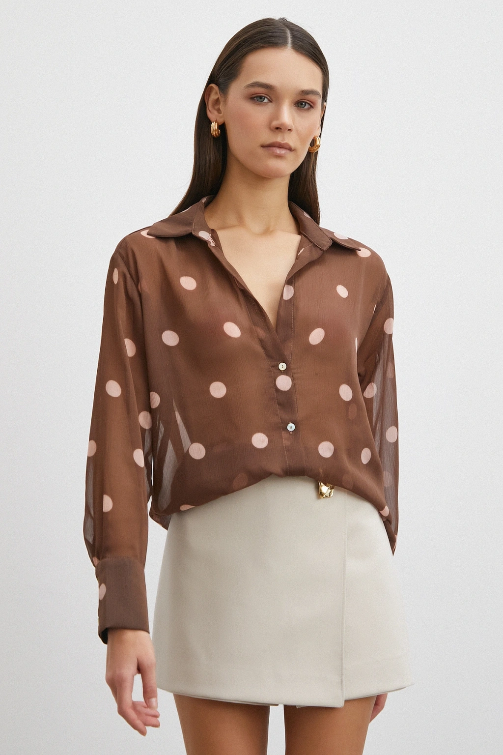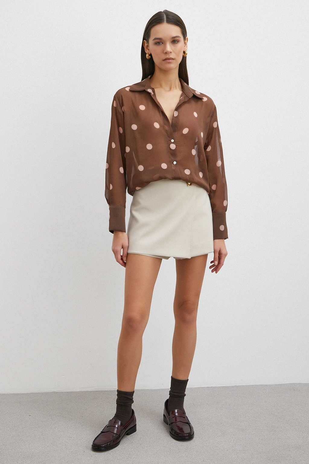 Düğme Detaylı Pamuklu Gömlek Kahve