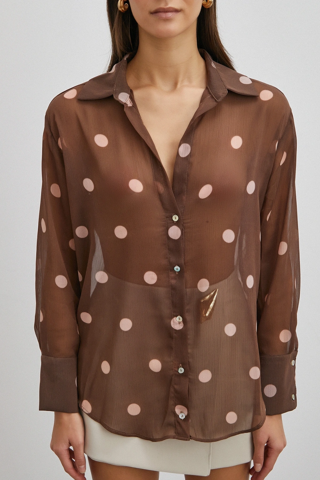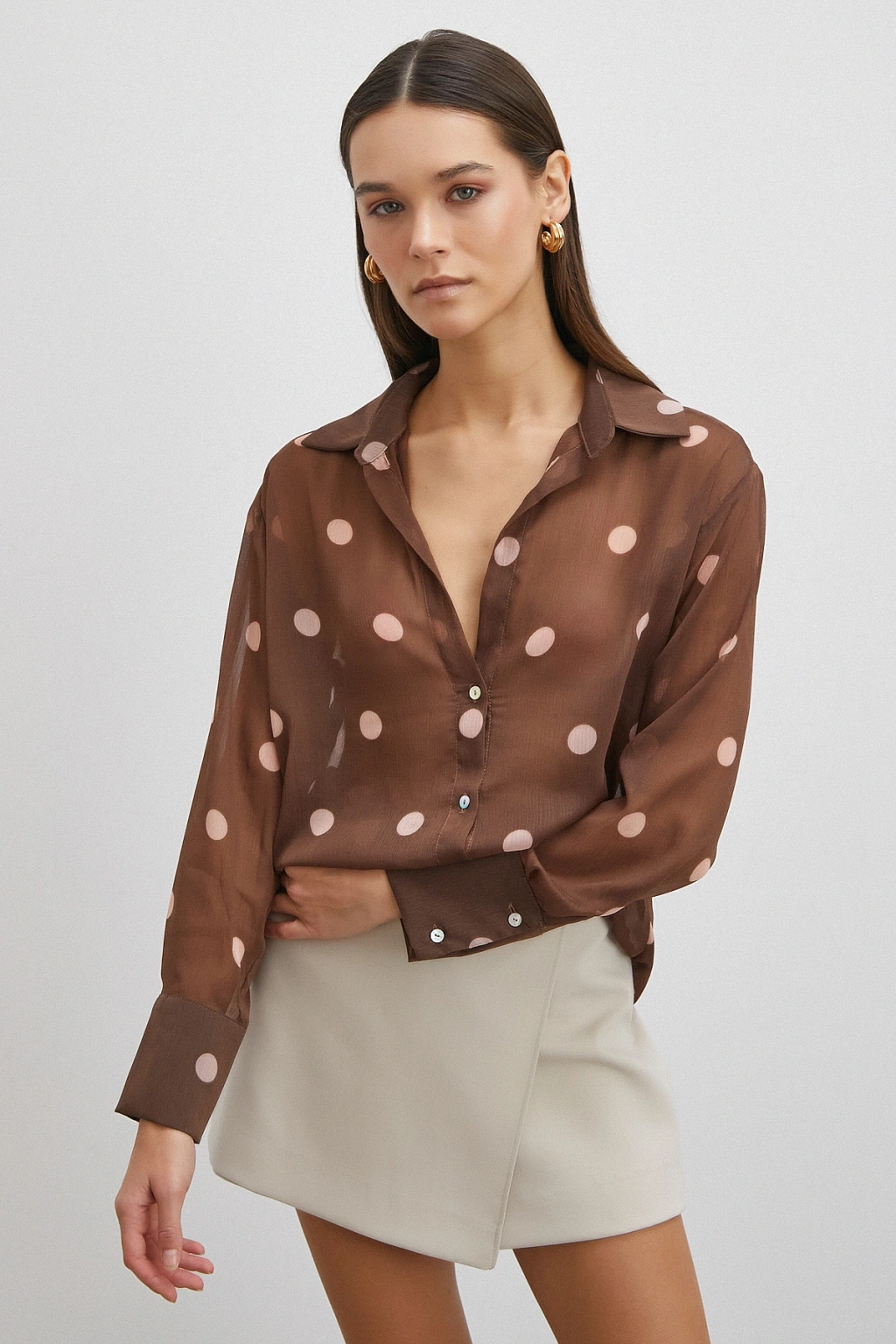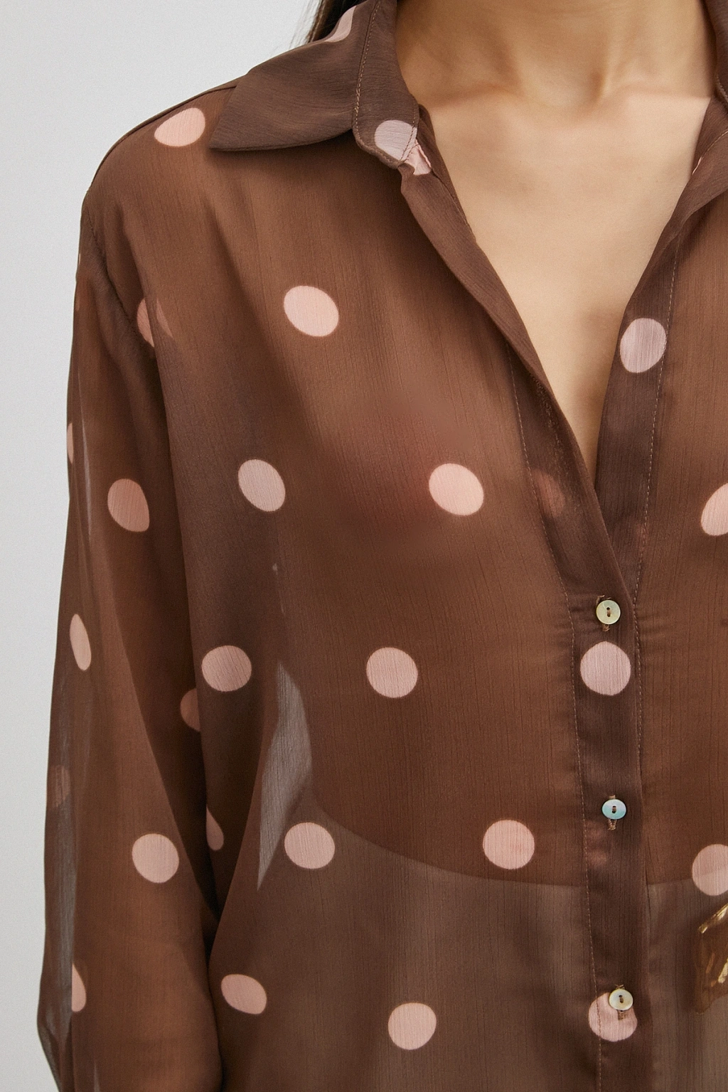 Düğme Detaylı Pamuklu Gömlek Kahve