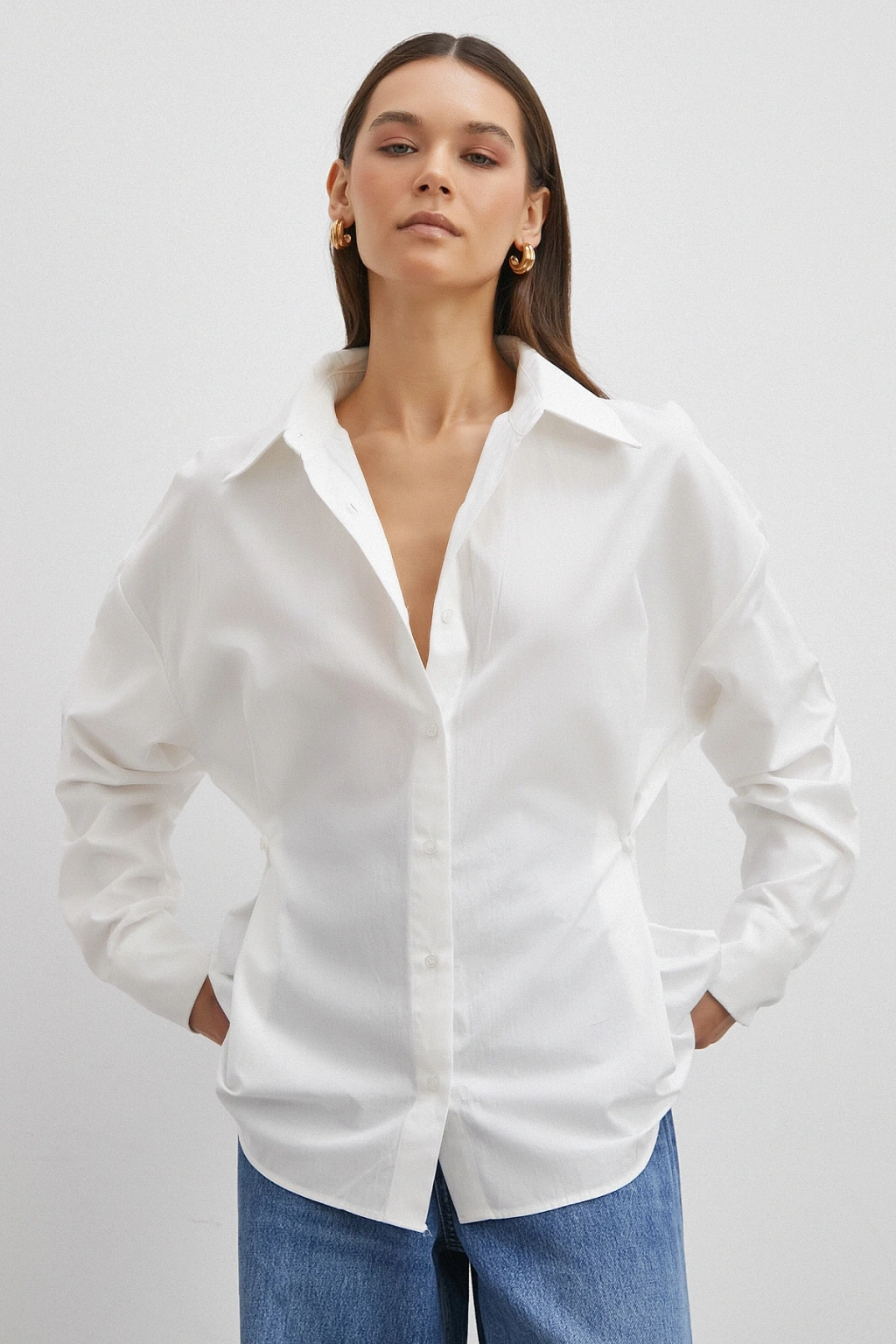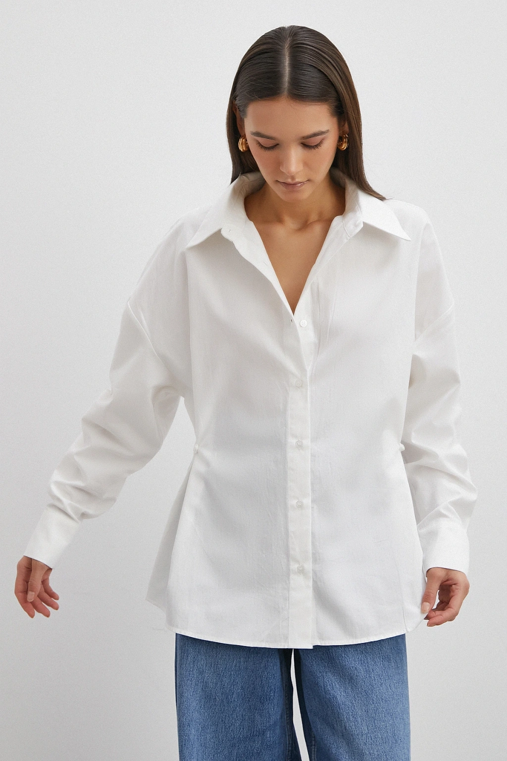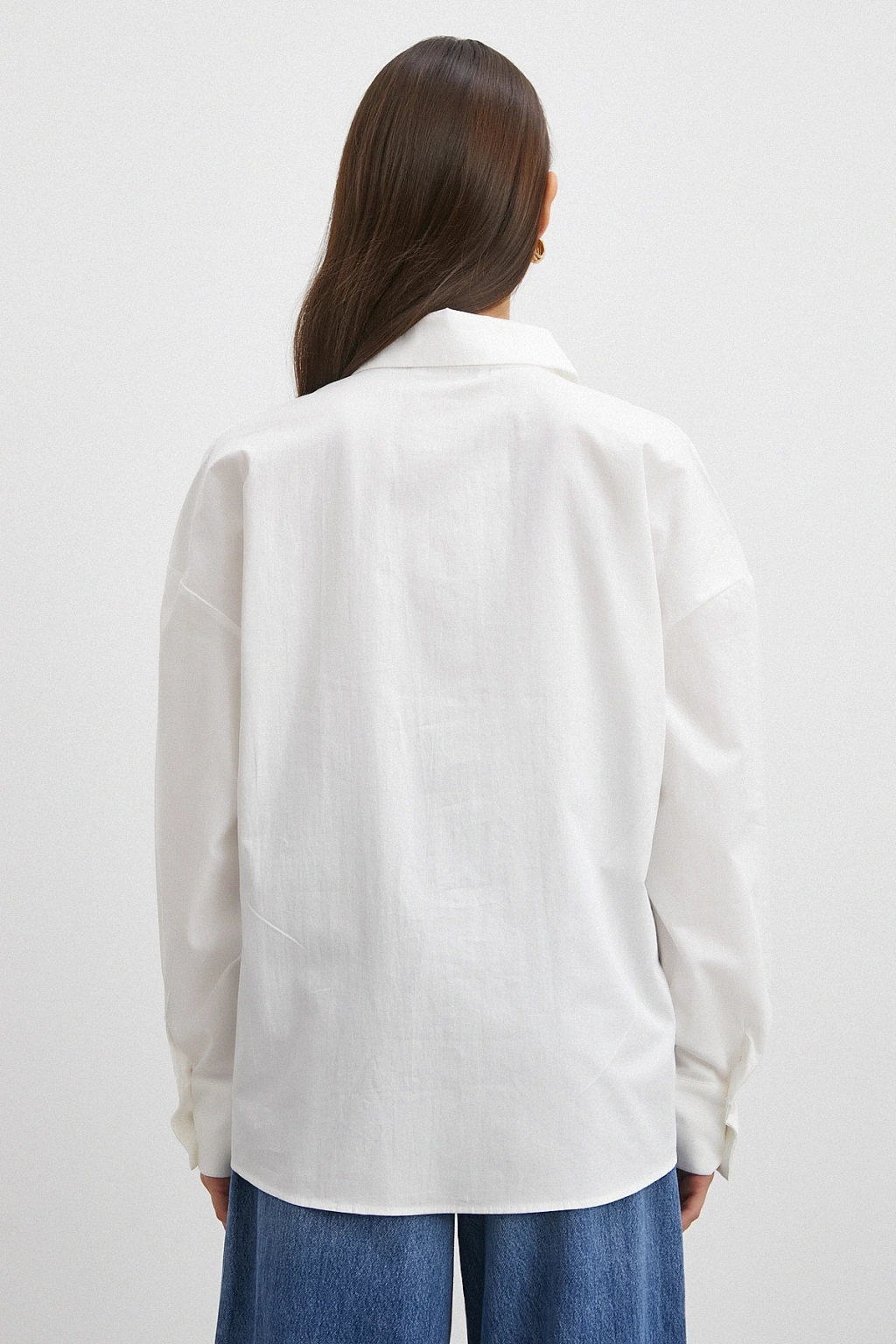 Düğme Detaylı Pamuklu Gömlek Beyaz