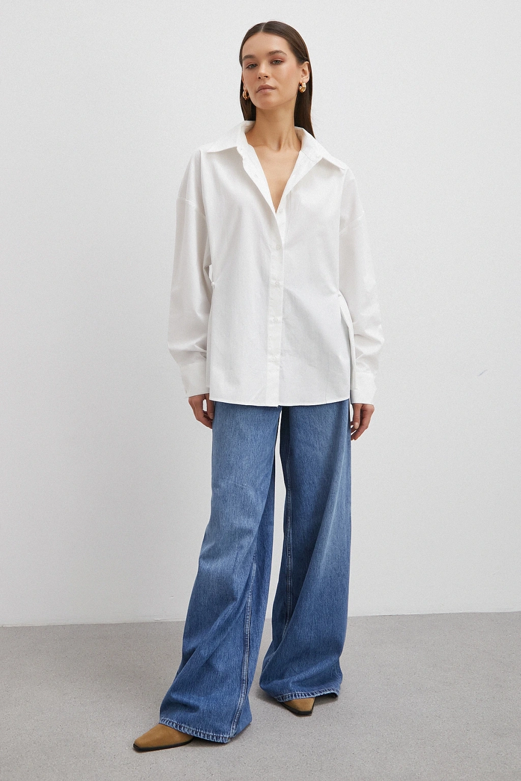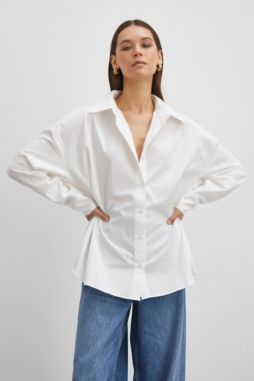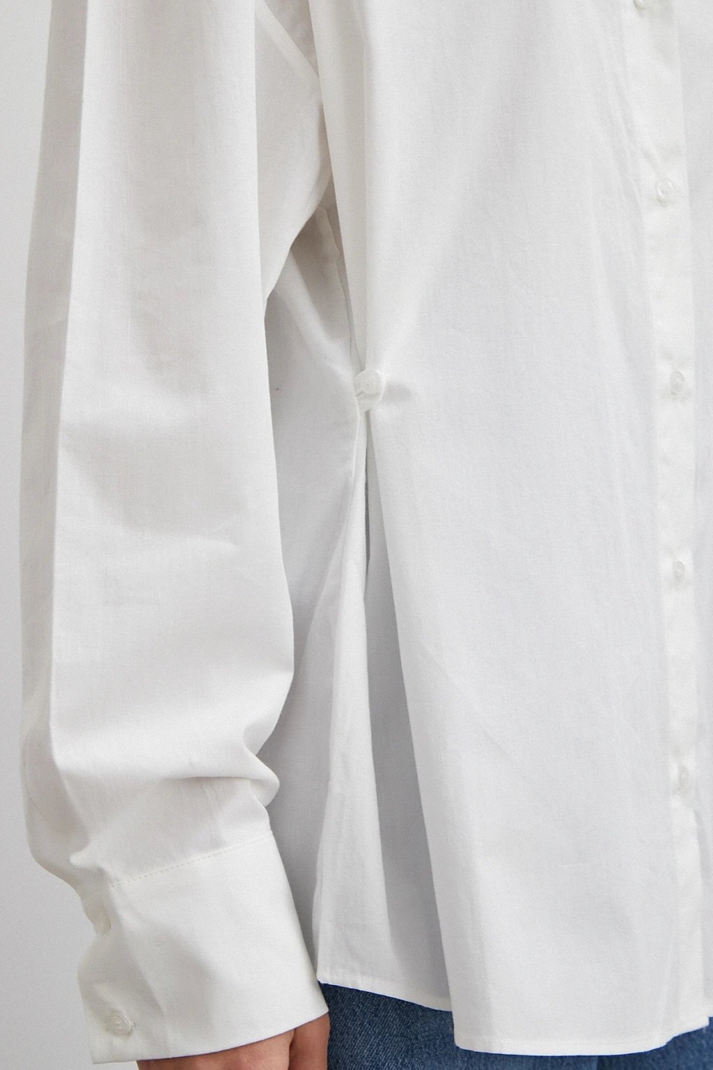 Düğme Detaylı Pamuklu Gömlek Beyaz