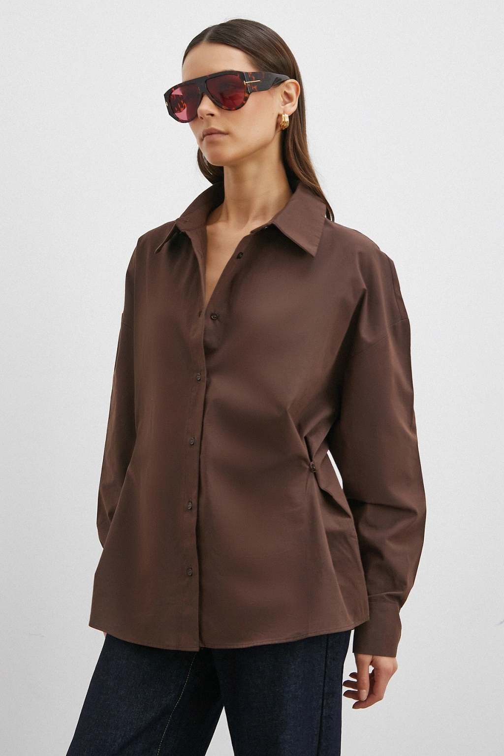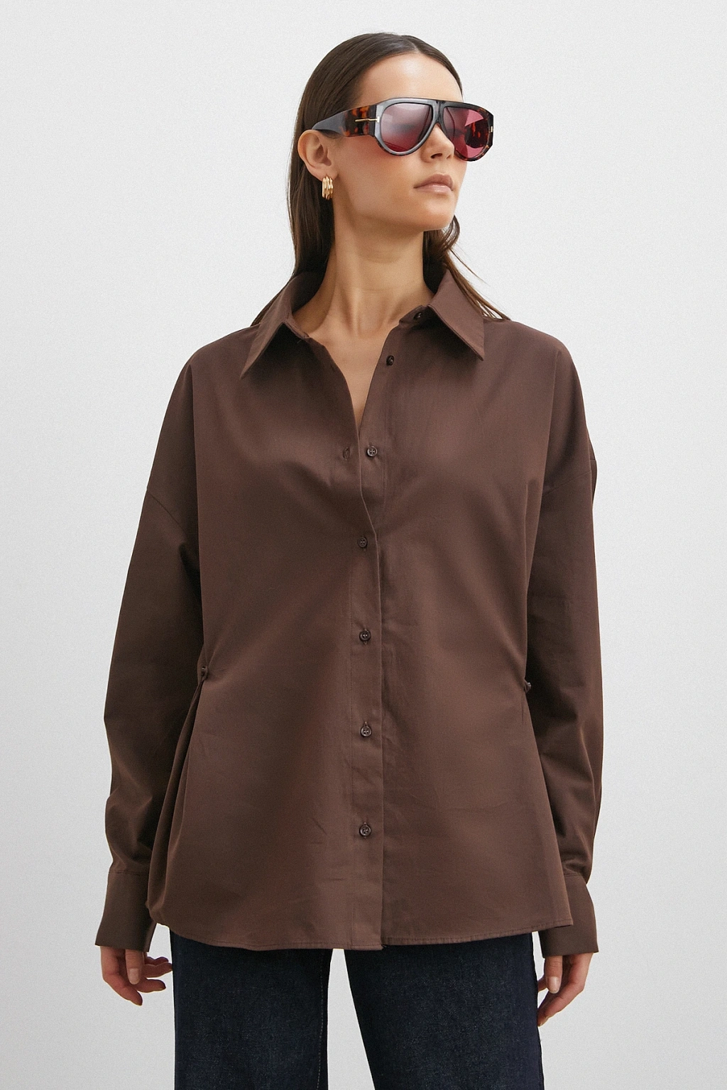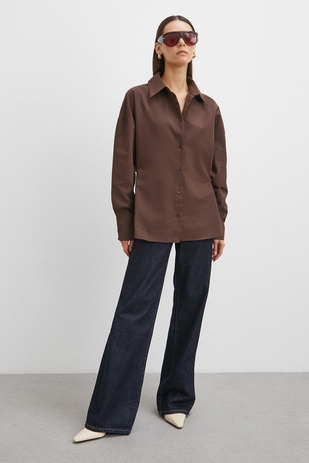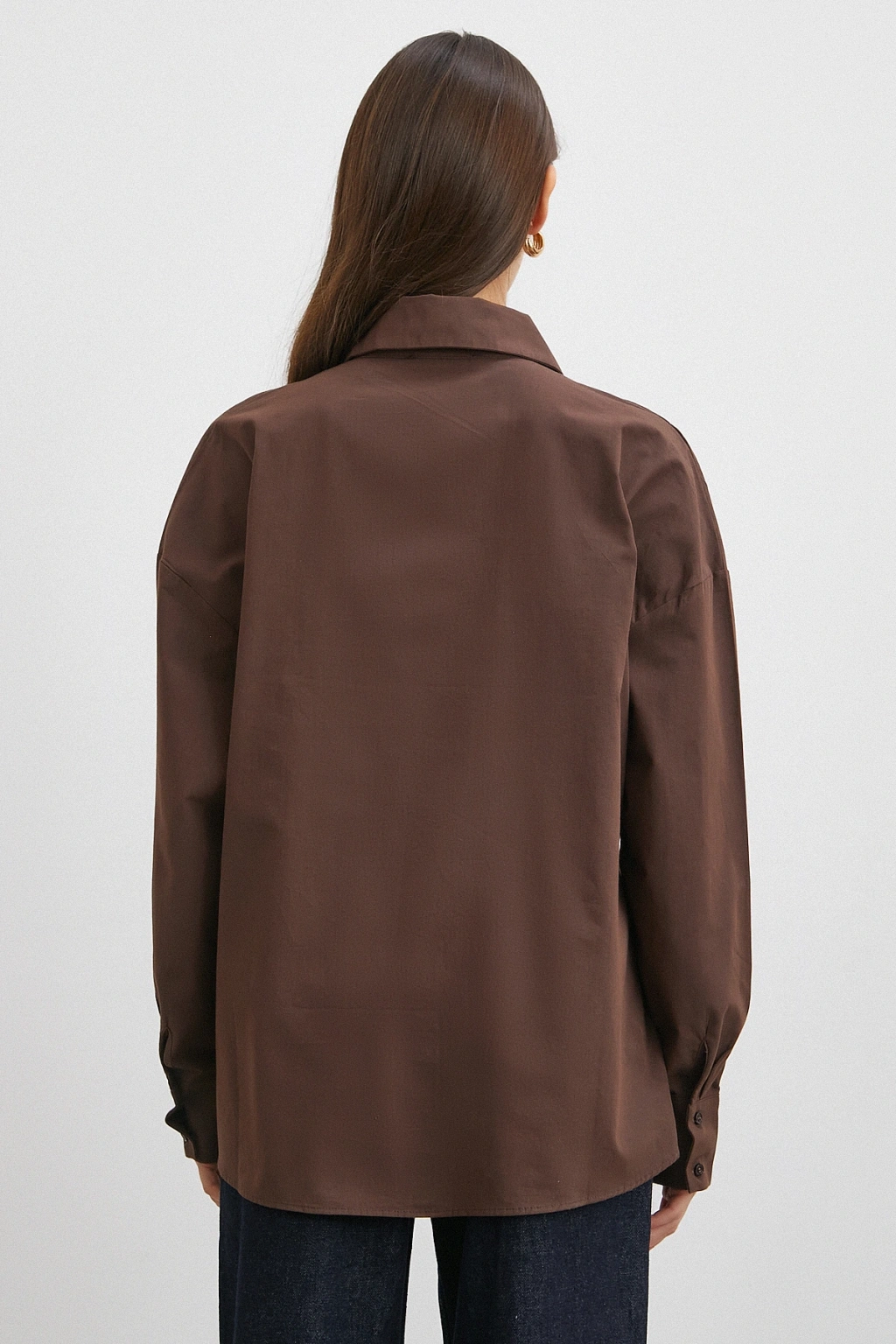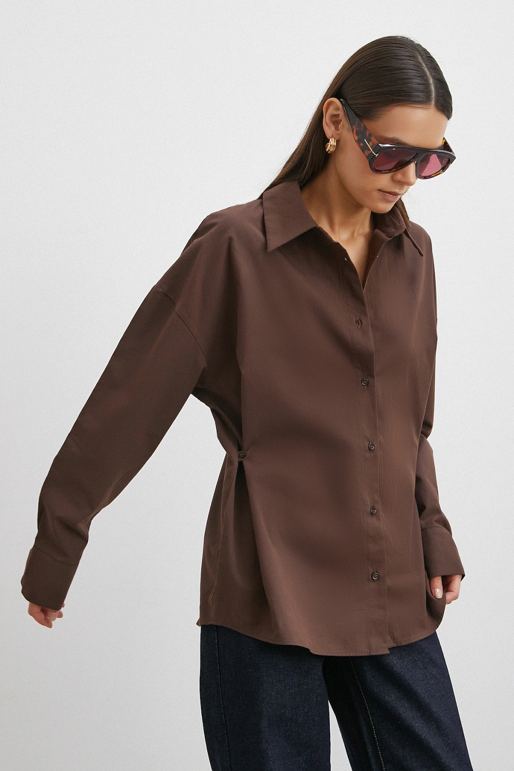Düğme Detaylı Pamuklu Gömlek Kahve