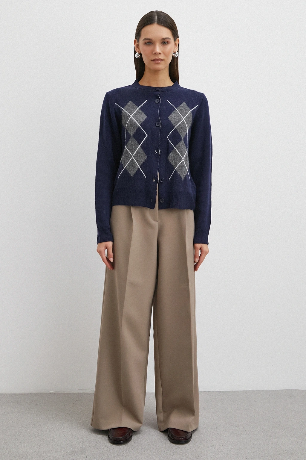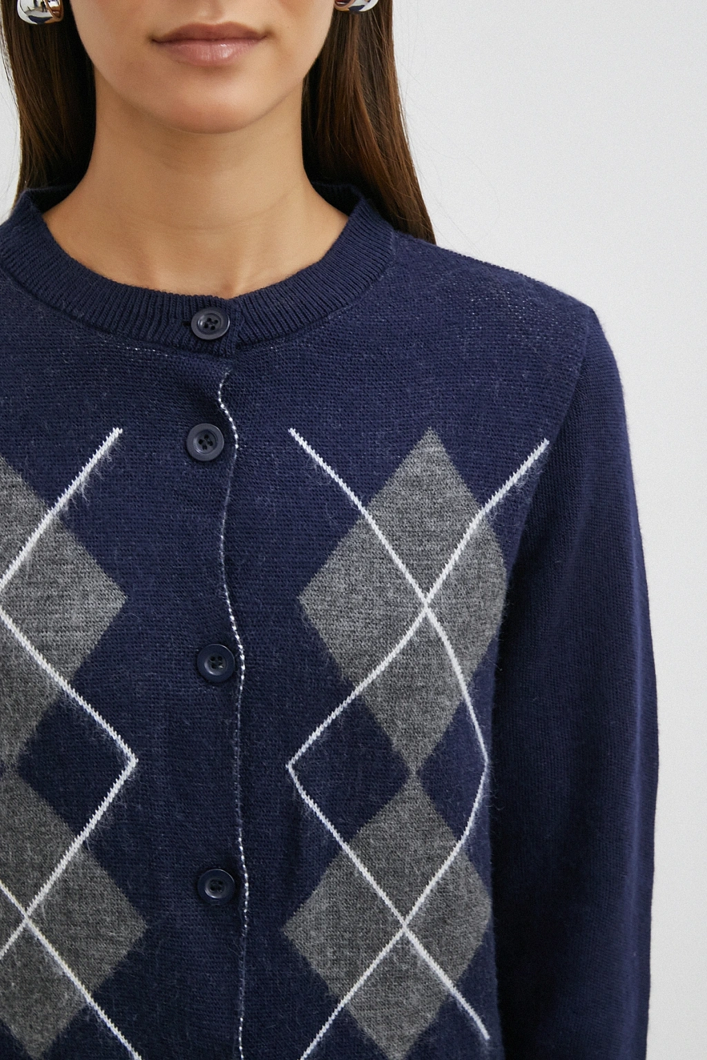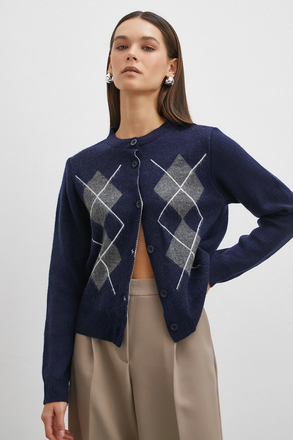 Düğmeli Baklava Desenli Hırka Antirasit