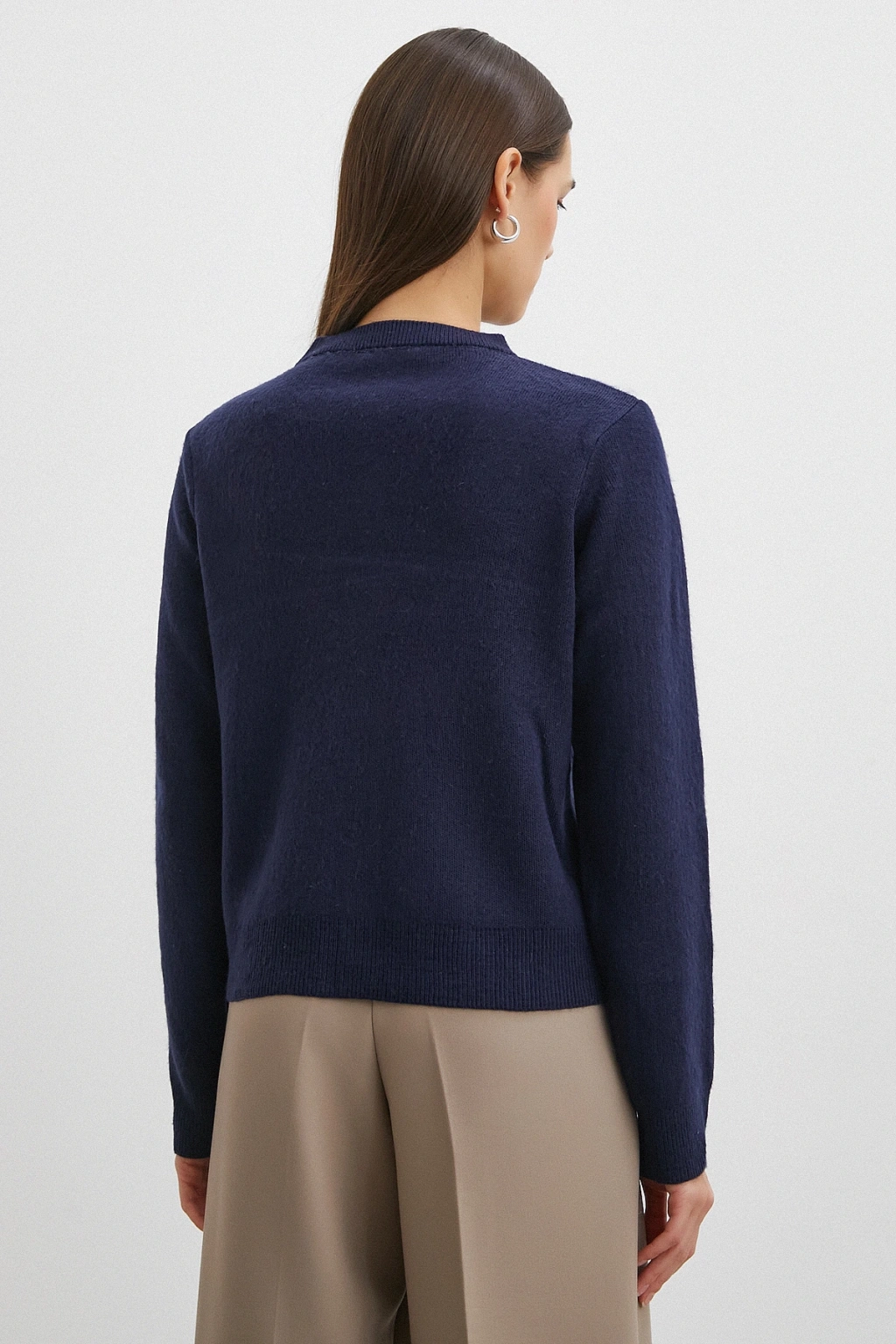 Düğmeli Baklava Desenli Hırka Lacivert