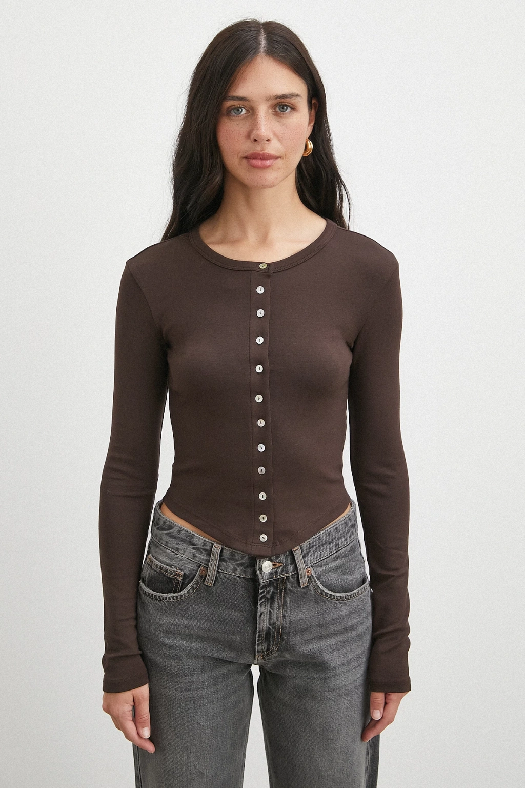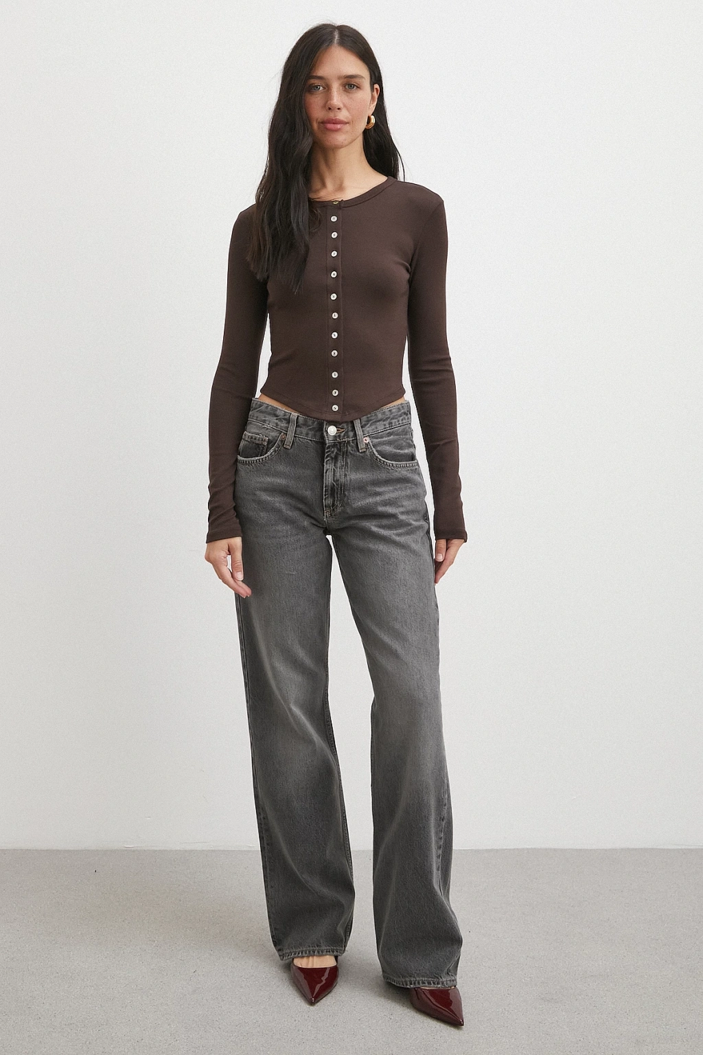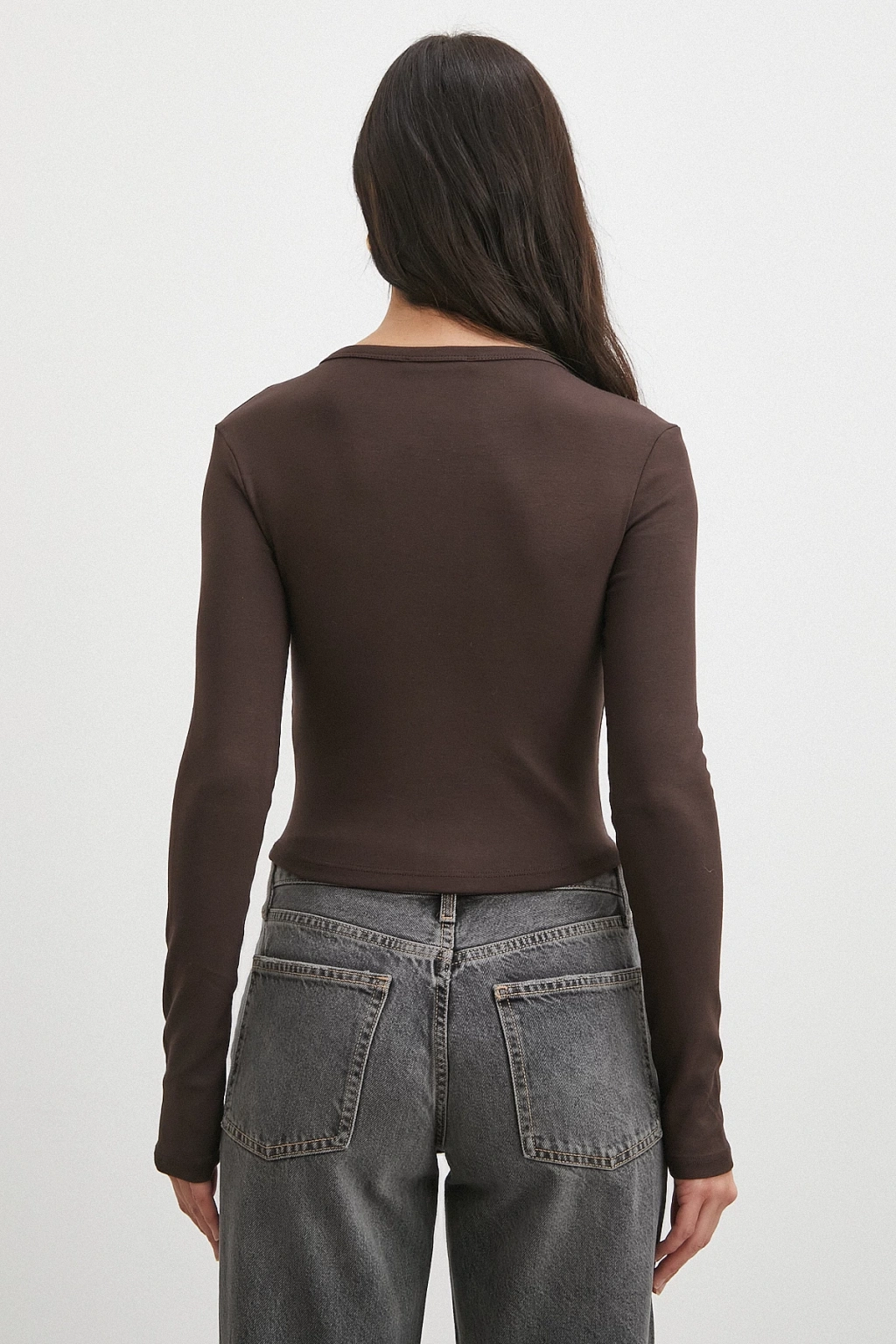 U Yaka Uzun Kollu Çıtçıtlı Bodysuit Siyah