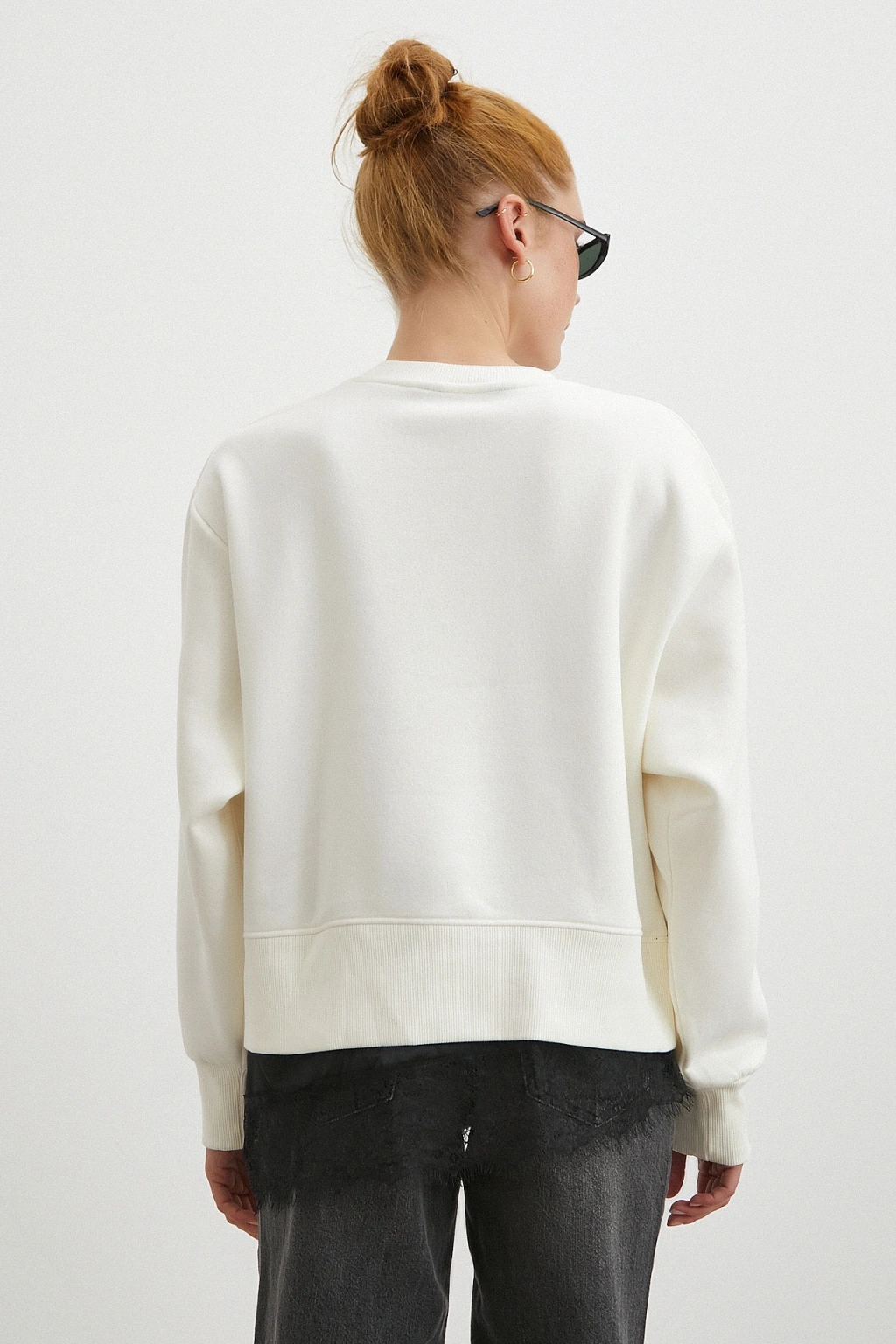 Çift Renk Oversize Sweatshirt Beyaz