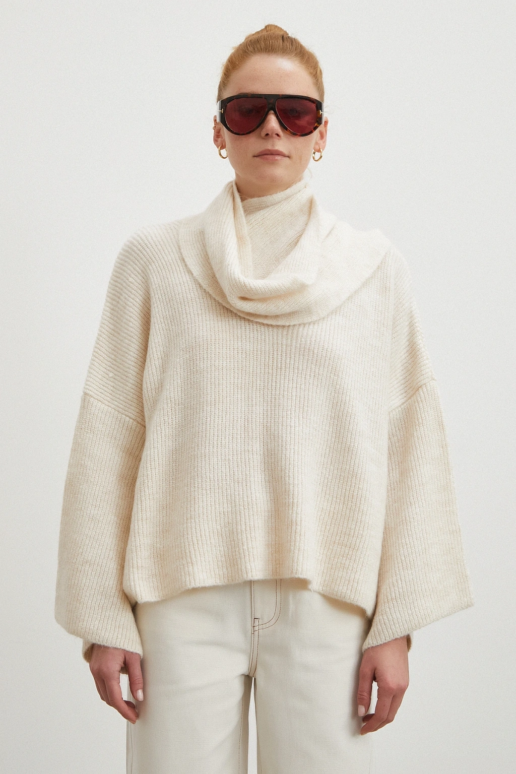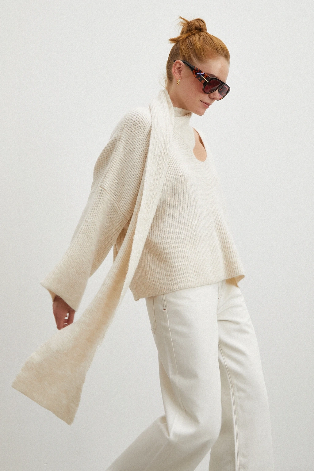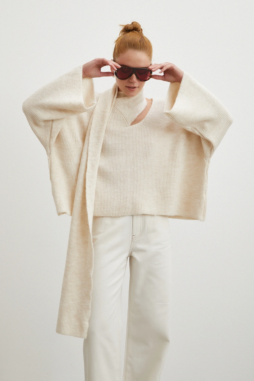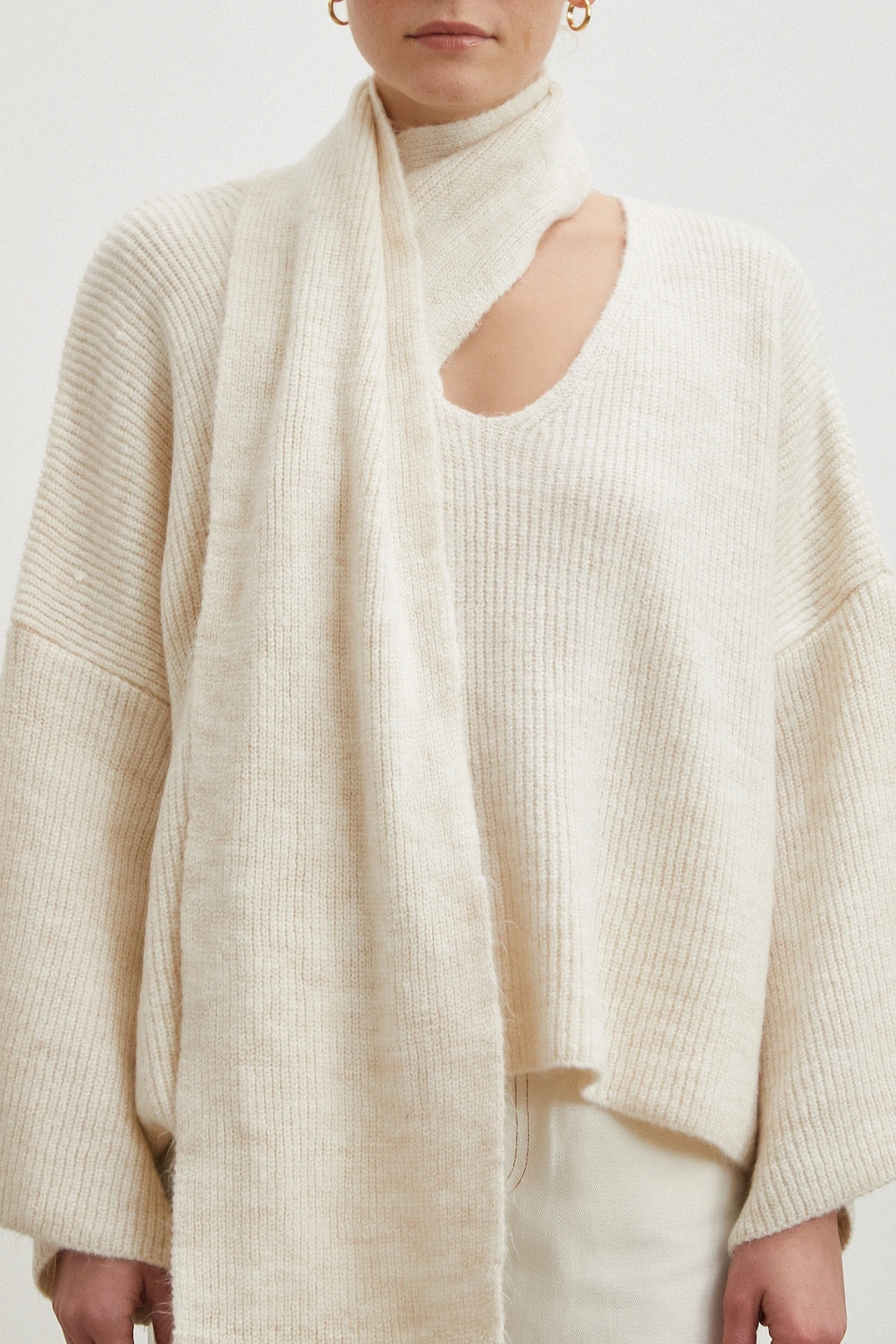 Fularlı Uzun Kollu Kazak Ekru