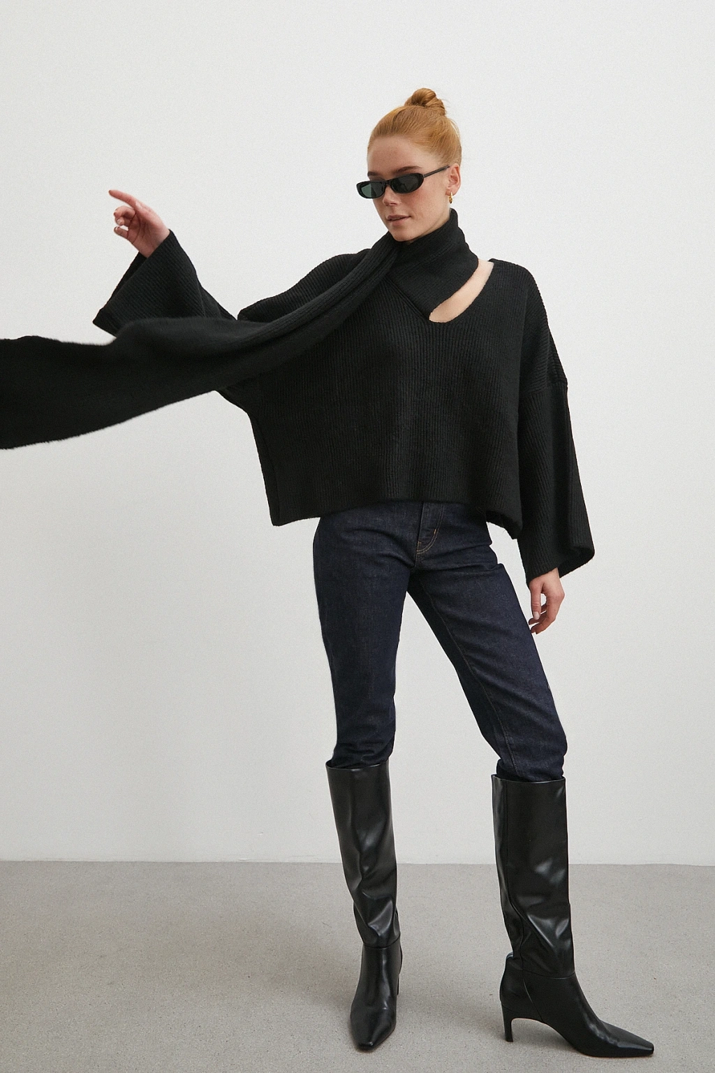 Kayık Yaka Uzun Kol Kazak Siyah