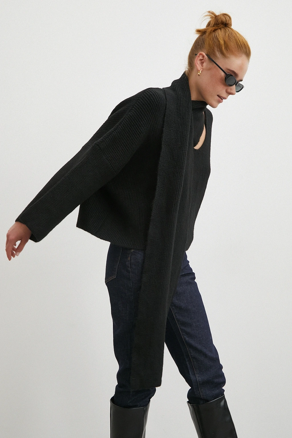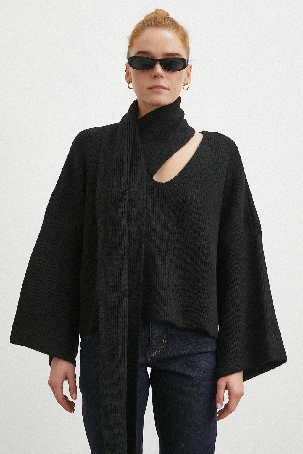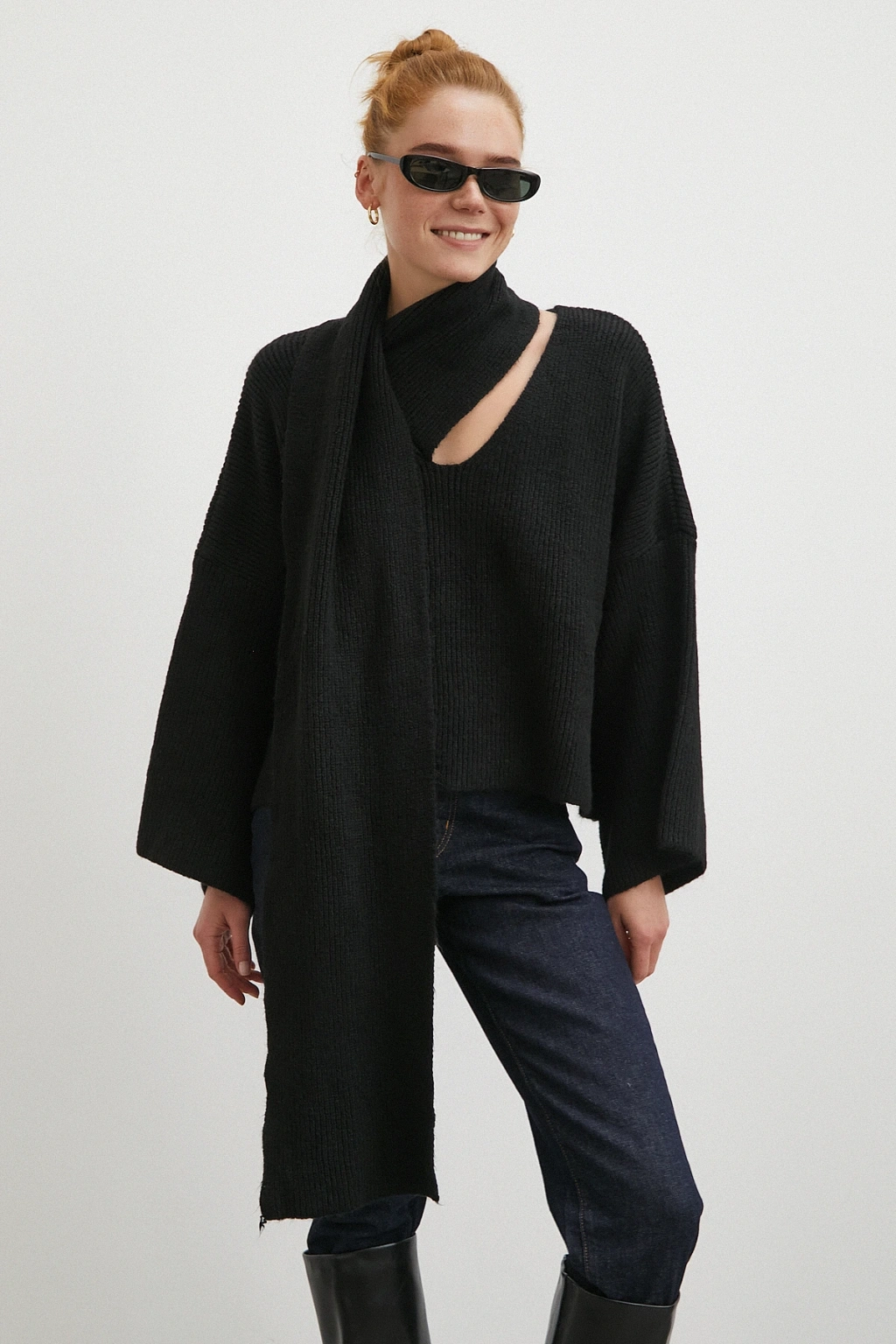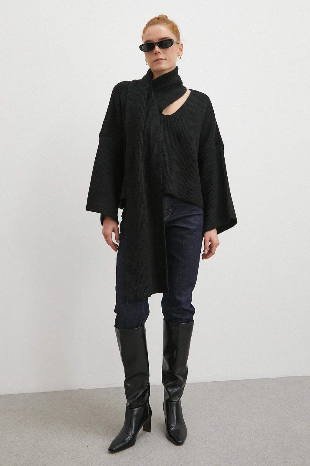 Fularlı Uzun Kollu Kazak Ekru