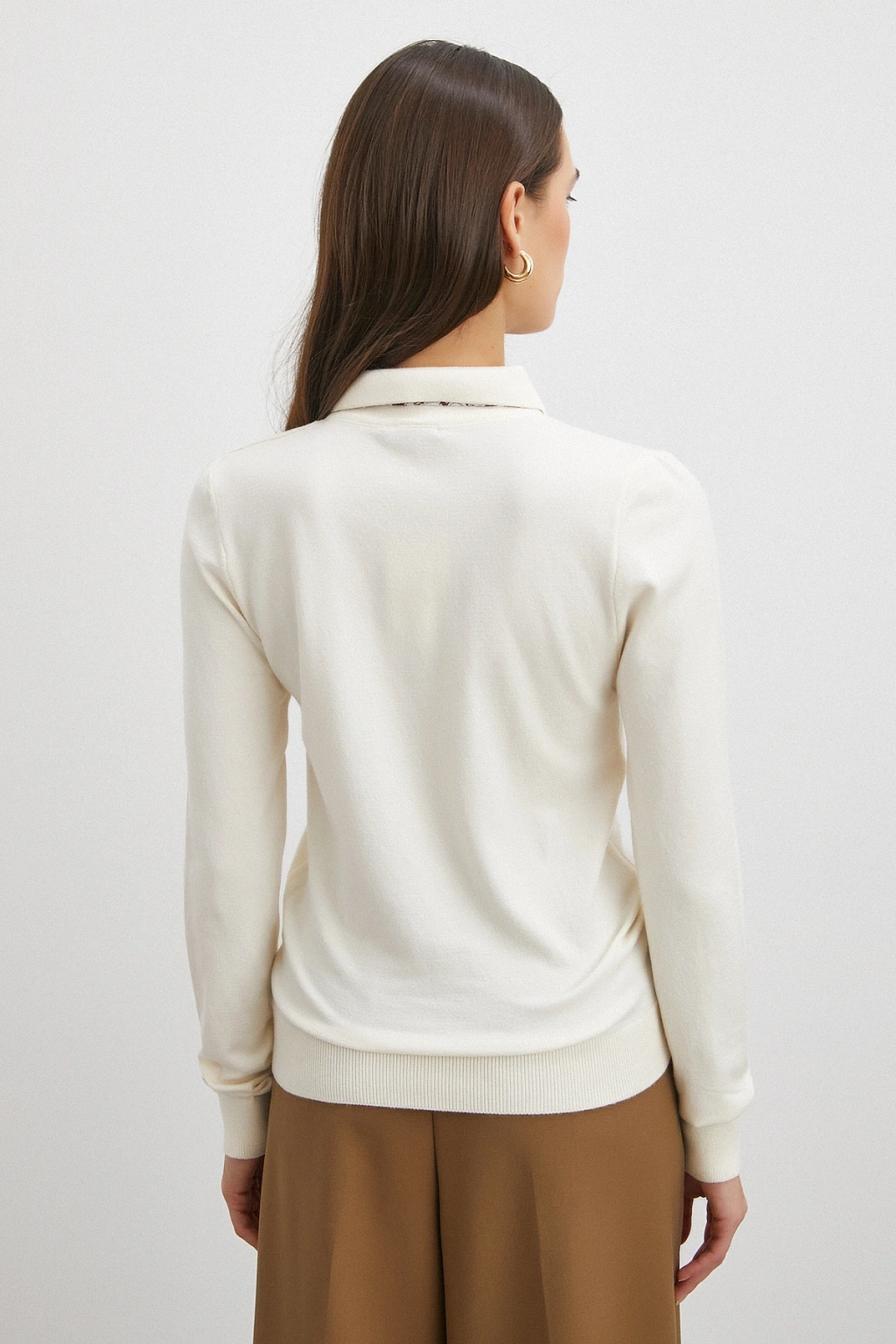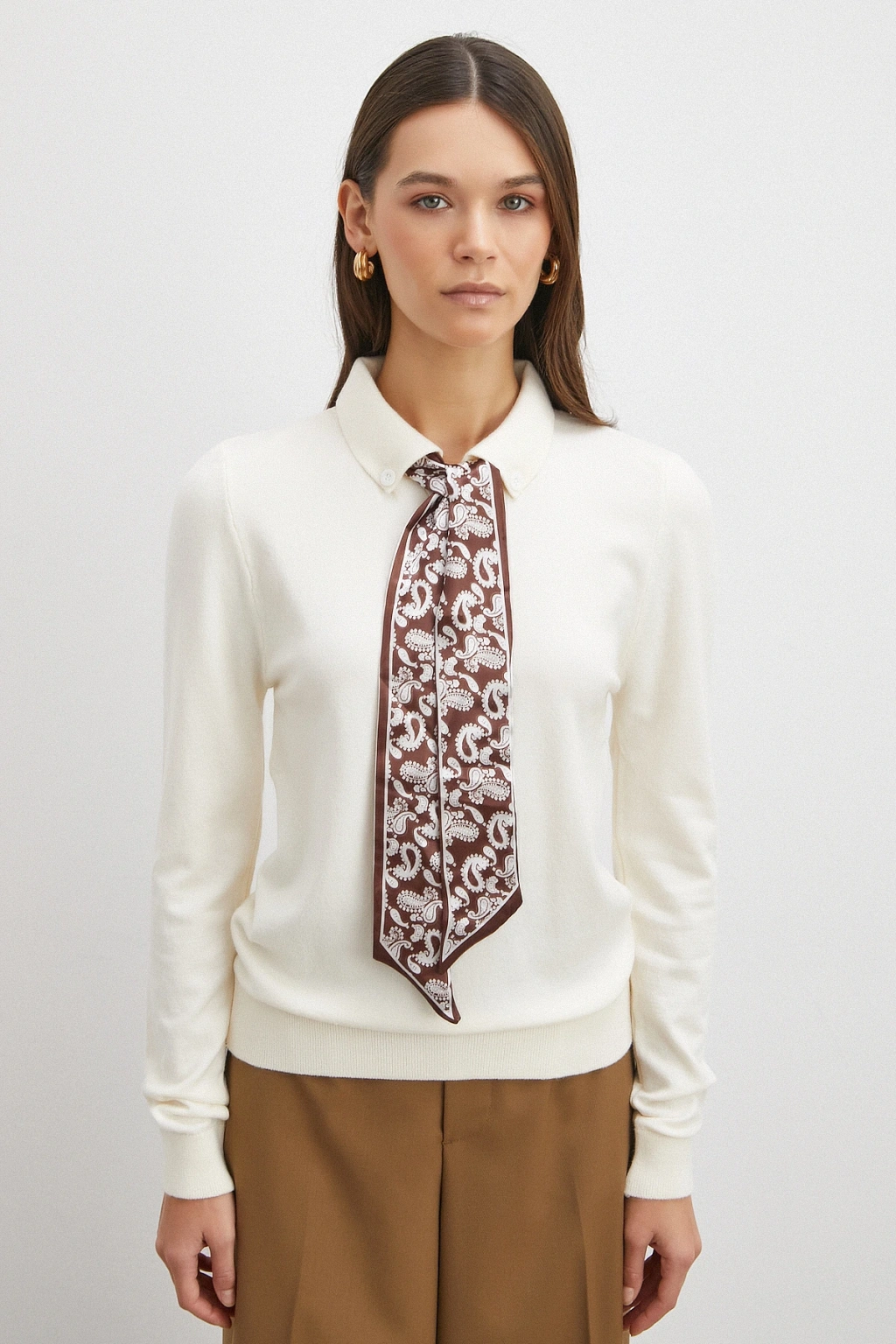 Fularlı Polo Yaka Kazak Ekru