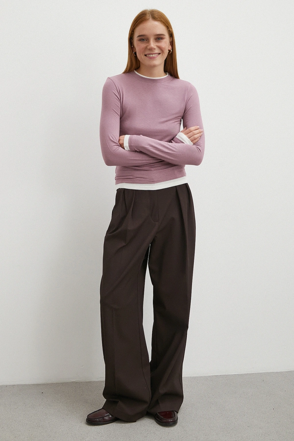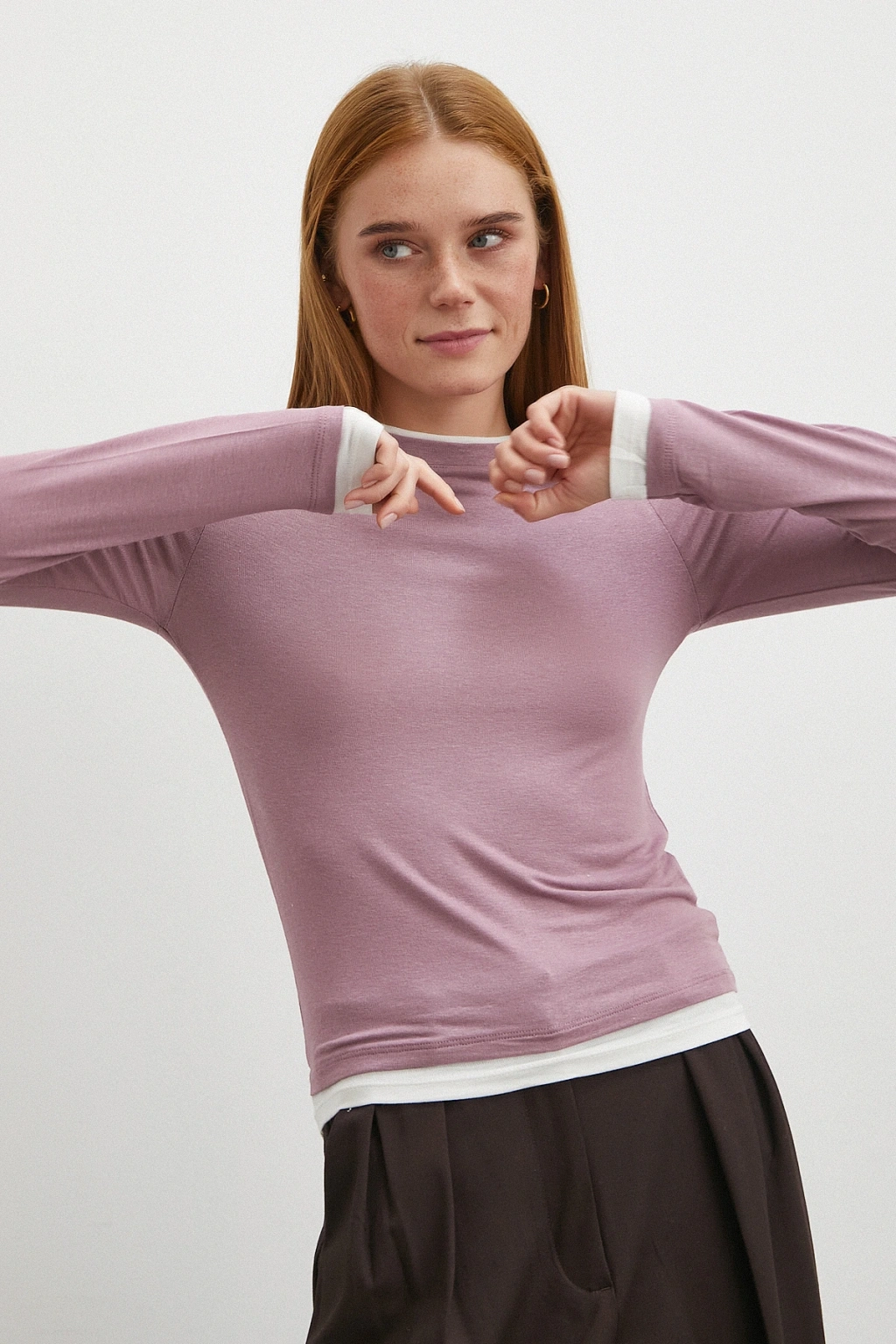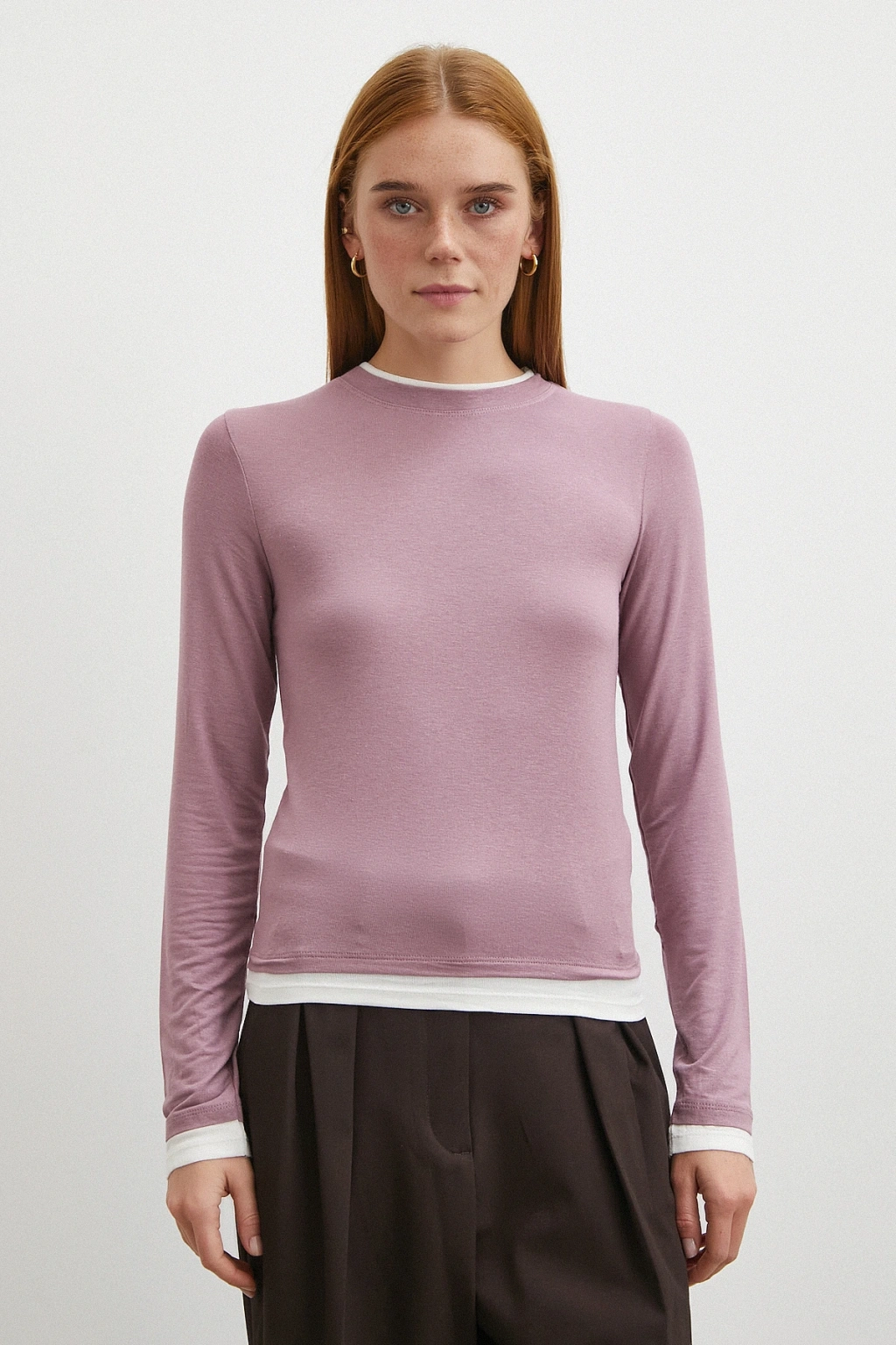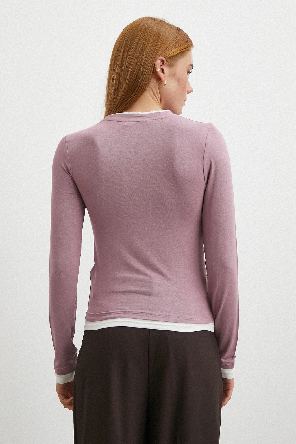 Garnili Bisiklet Yaka Bluz Lila