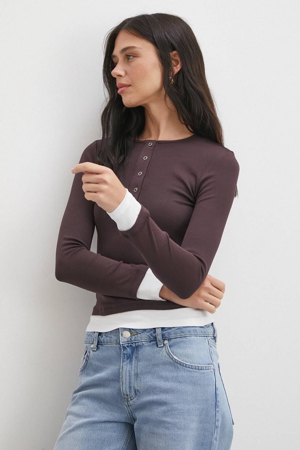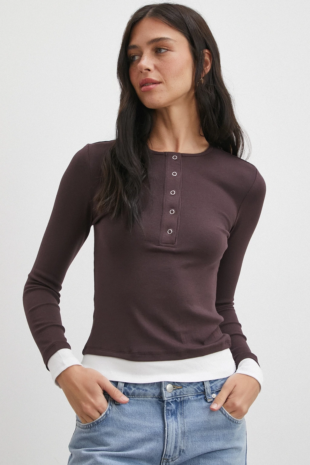 Garnili Çıtçıtlı Bluz Kahve