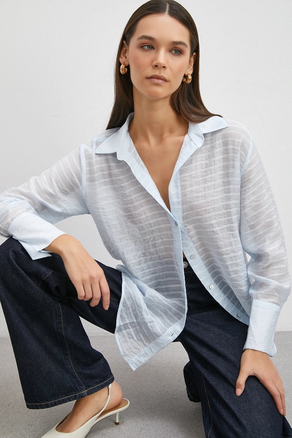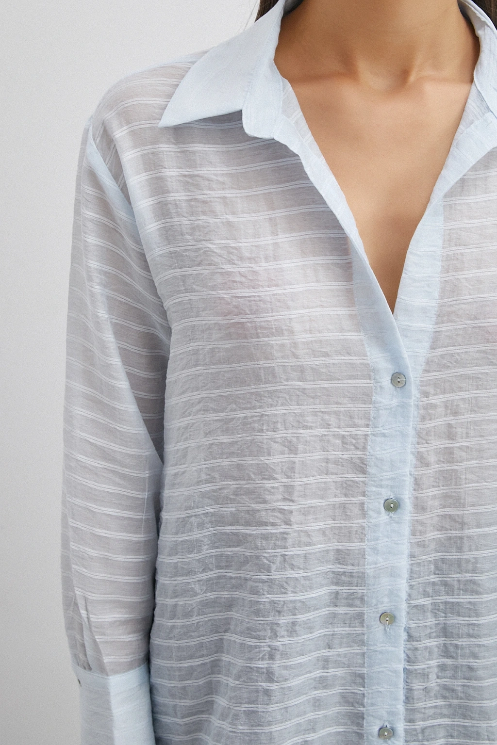 Organze Desenli Tül Gömlek Mavi