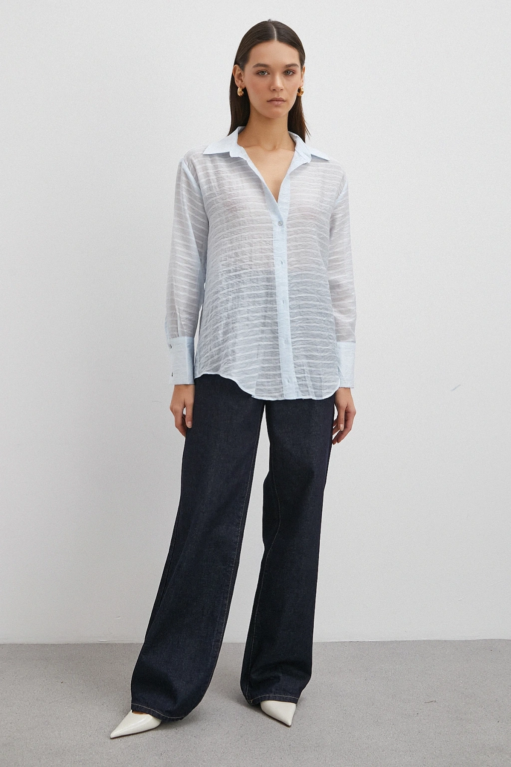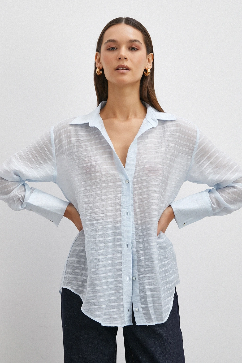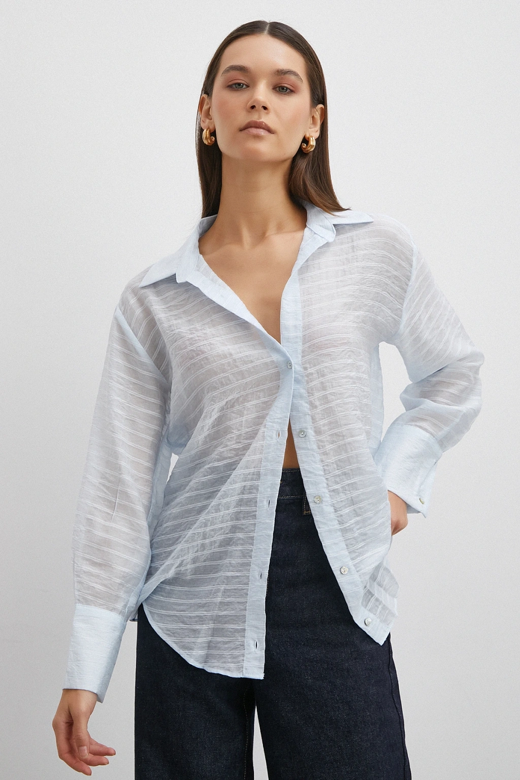 Kabartma Çizgili Gömlek Pudra