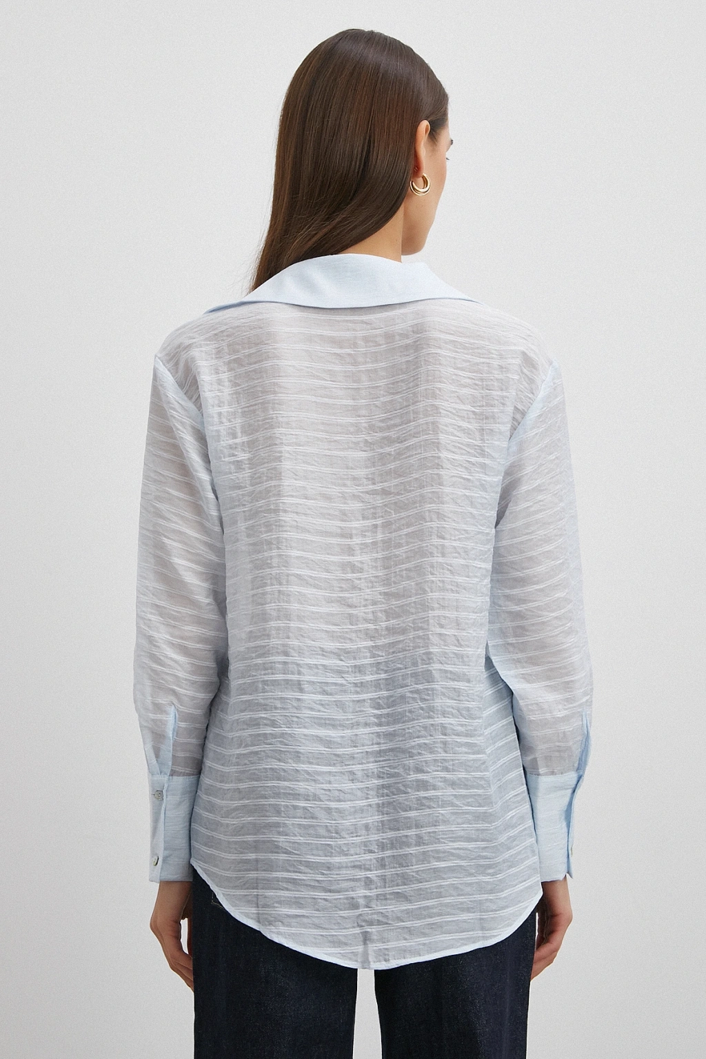 Kabartma Çizgili Gömlek Mavi