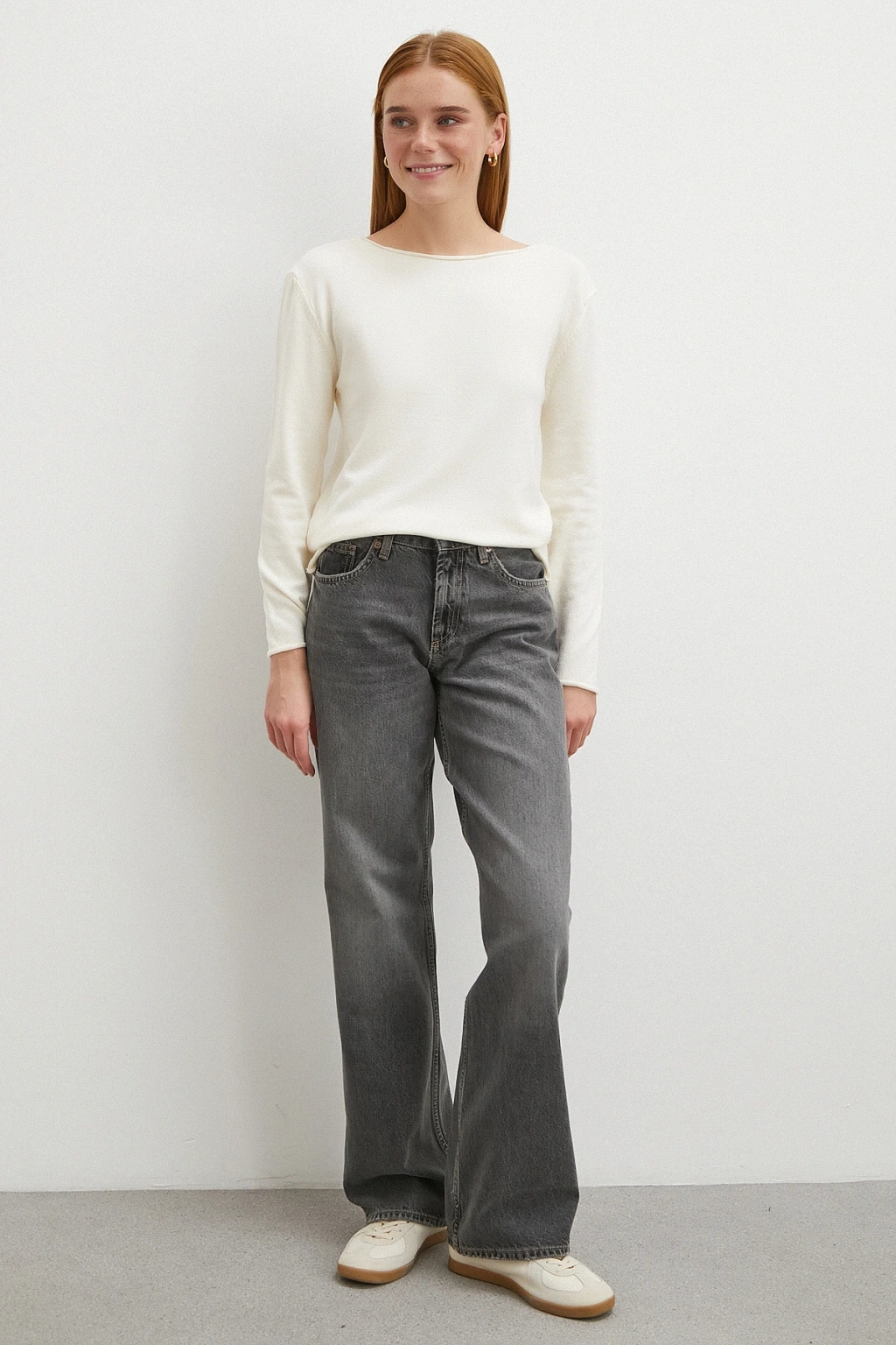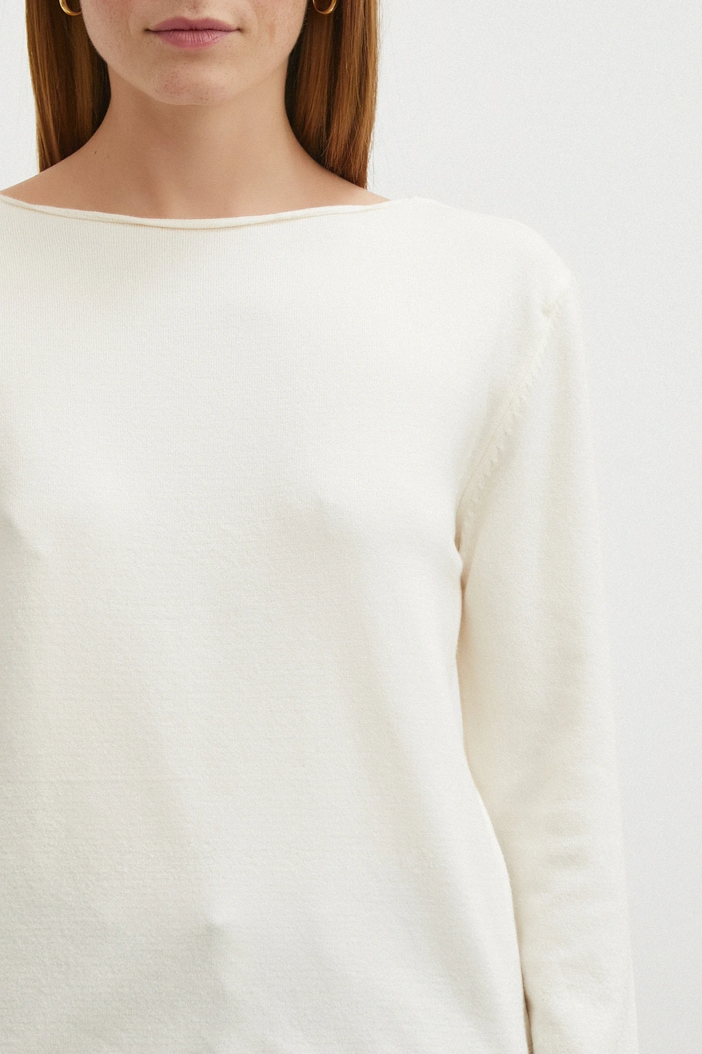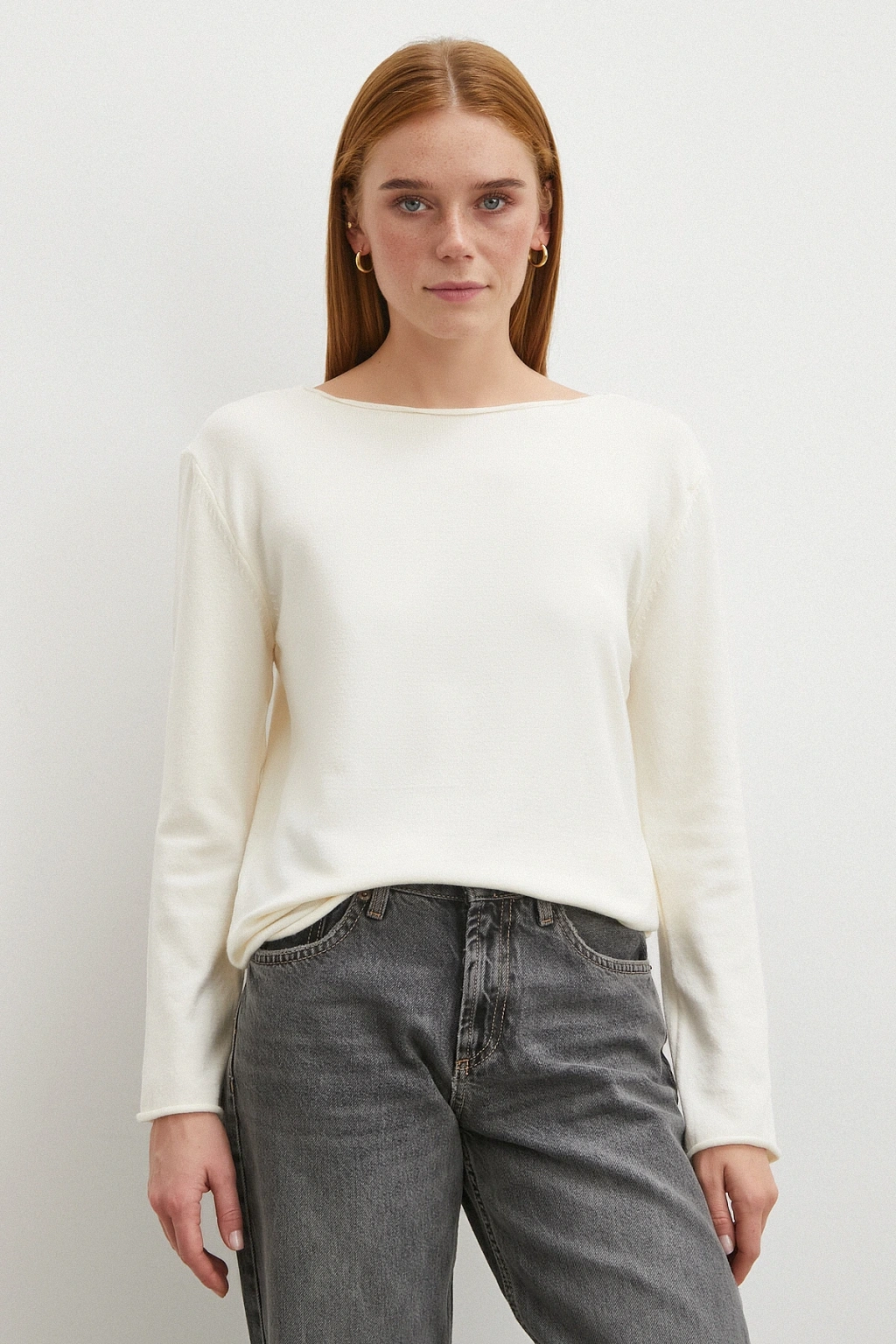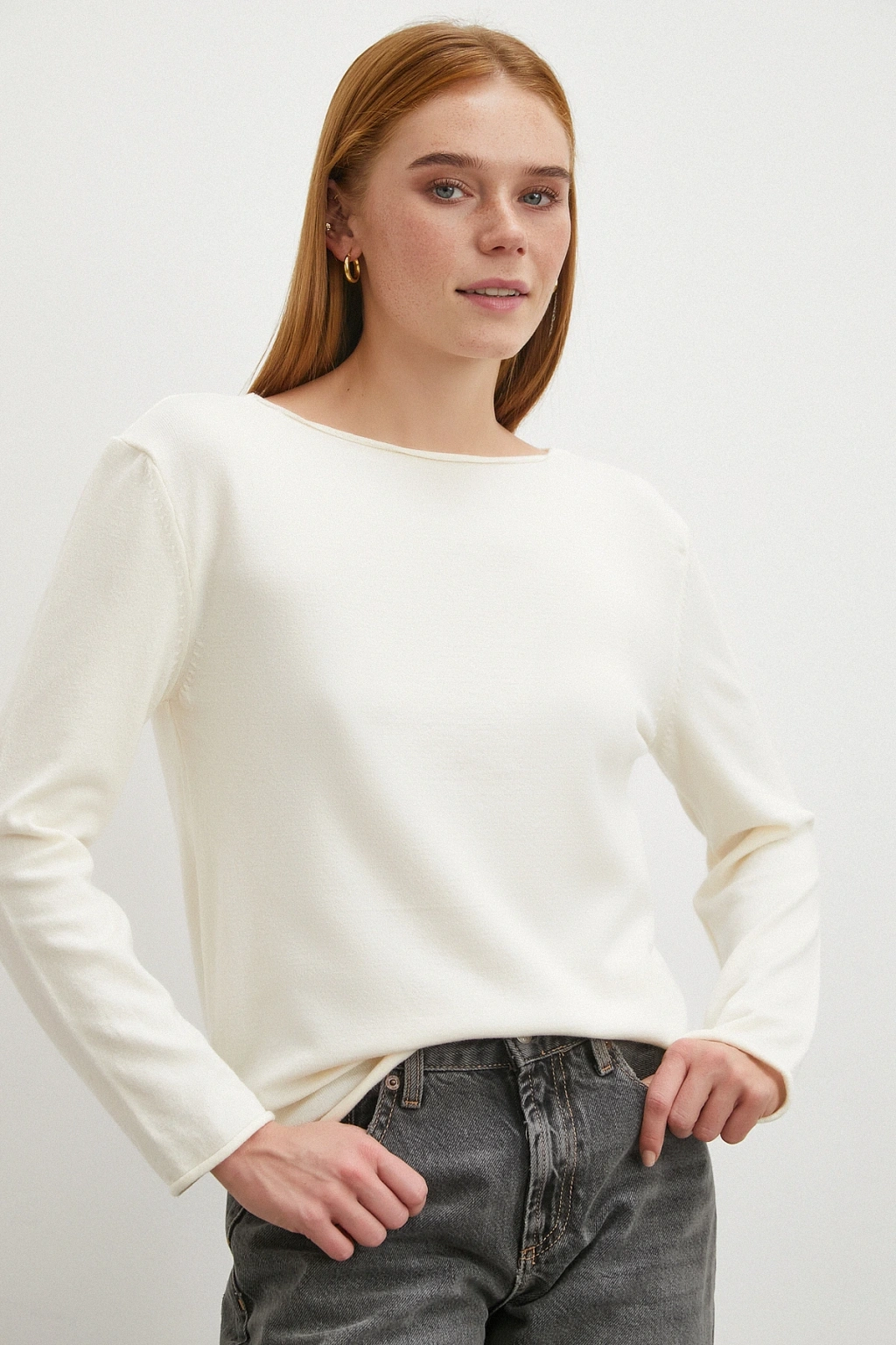 Bisiklet Yaka Fitilli Triko Kazak Ekru