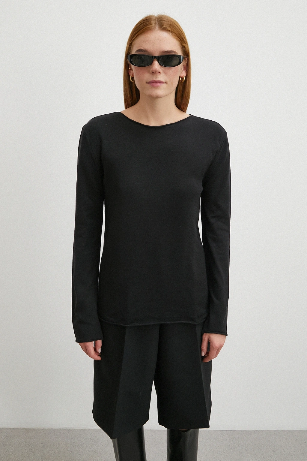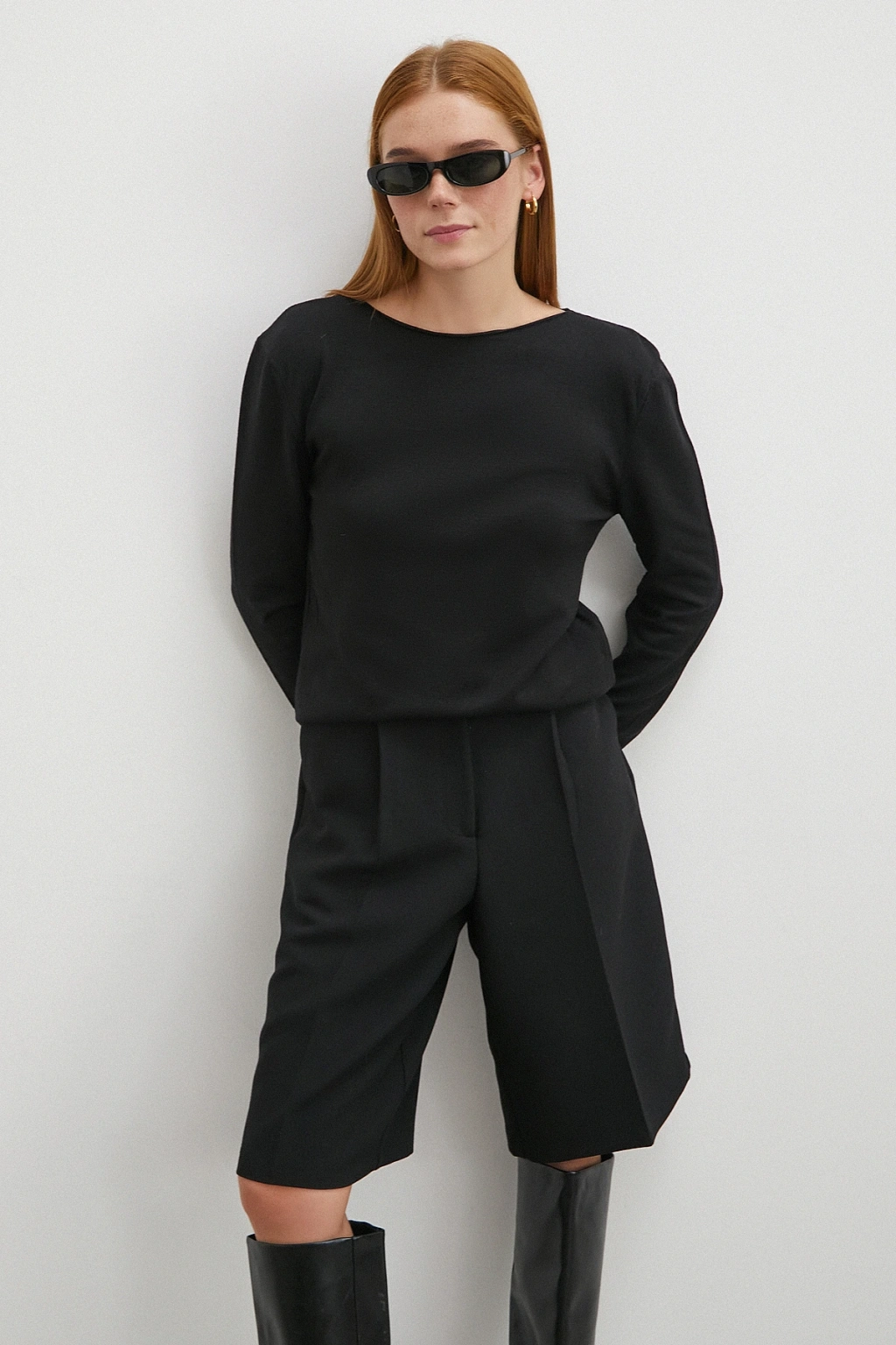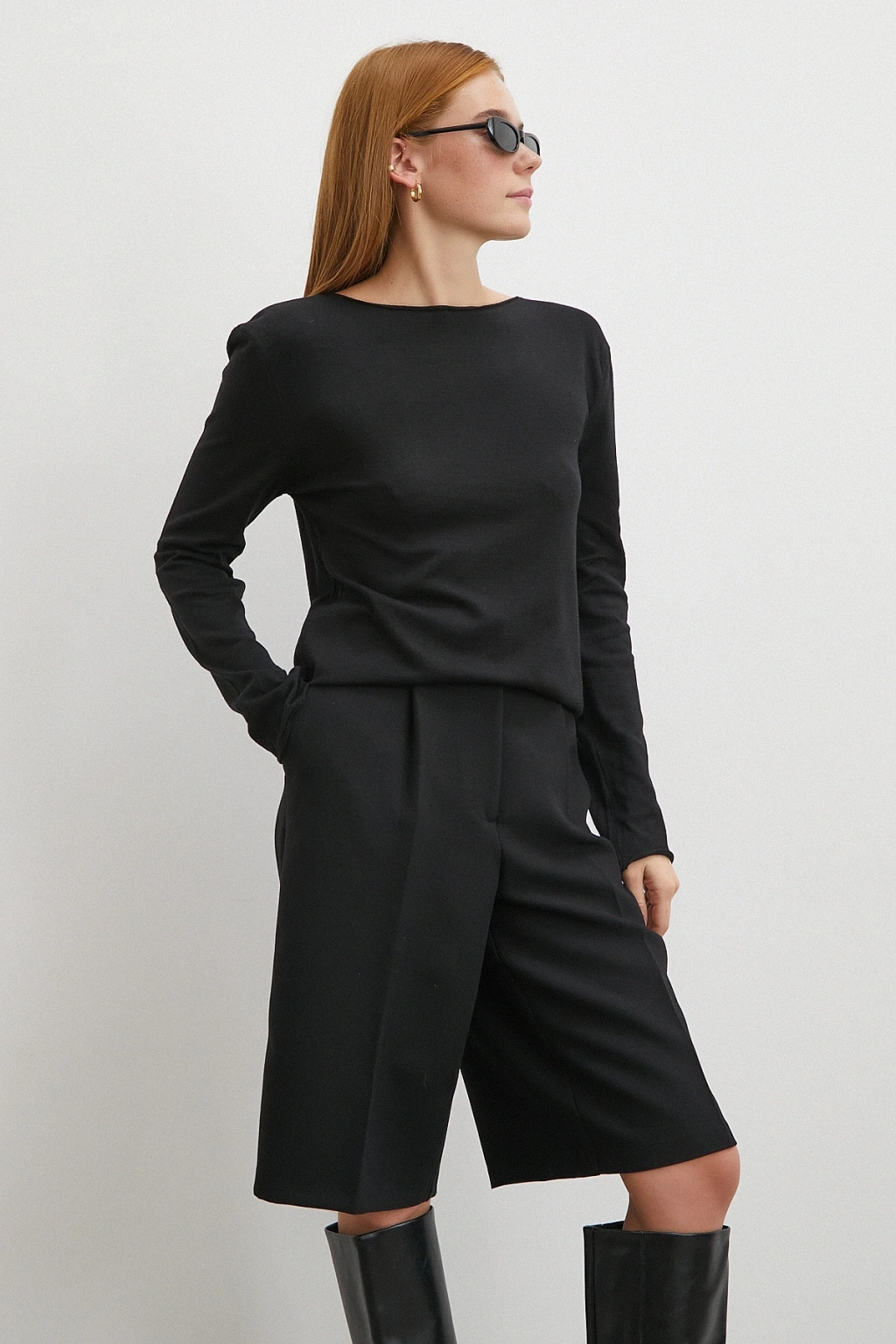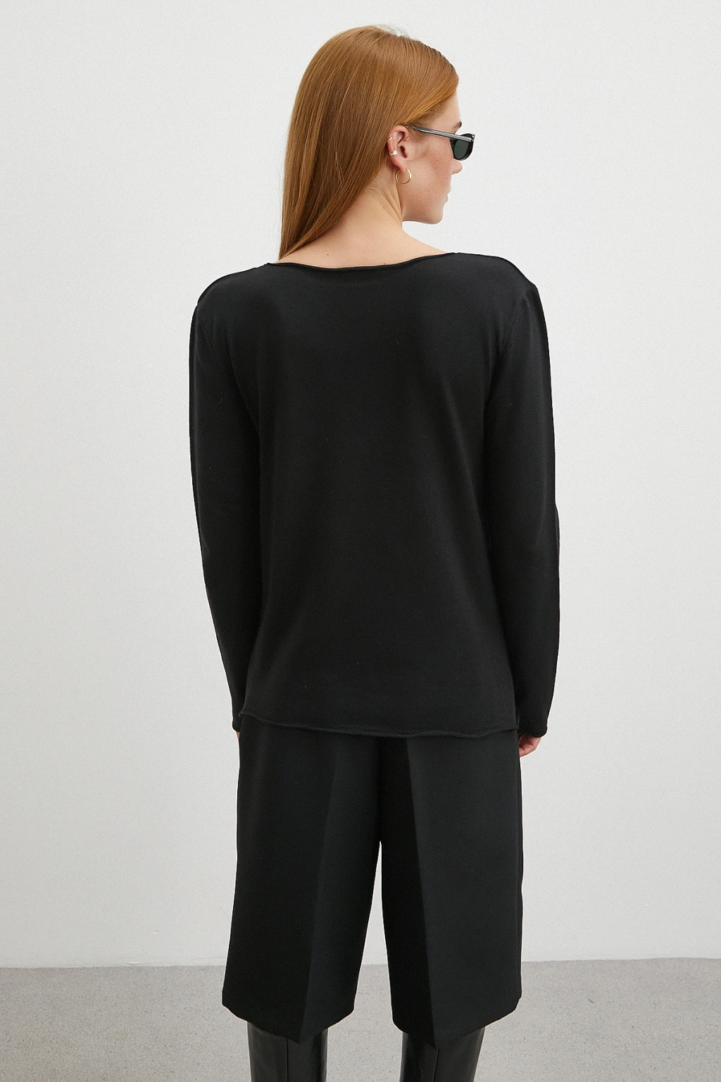 Bisiklet Yaka Fitilli Triko Kazak Siyah