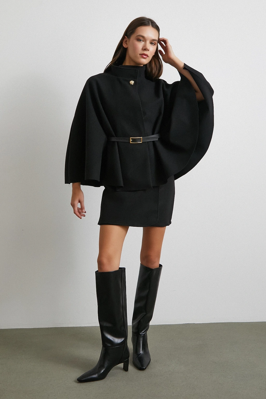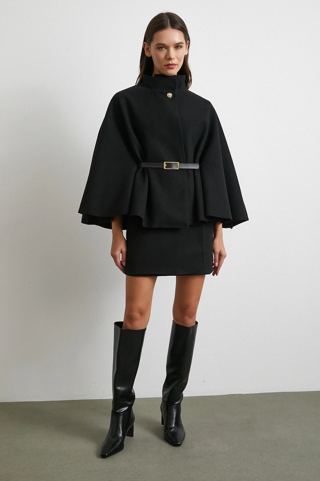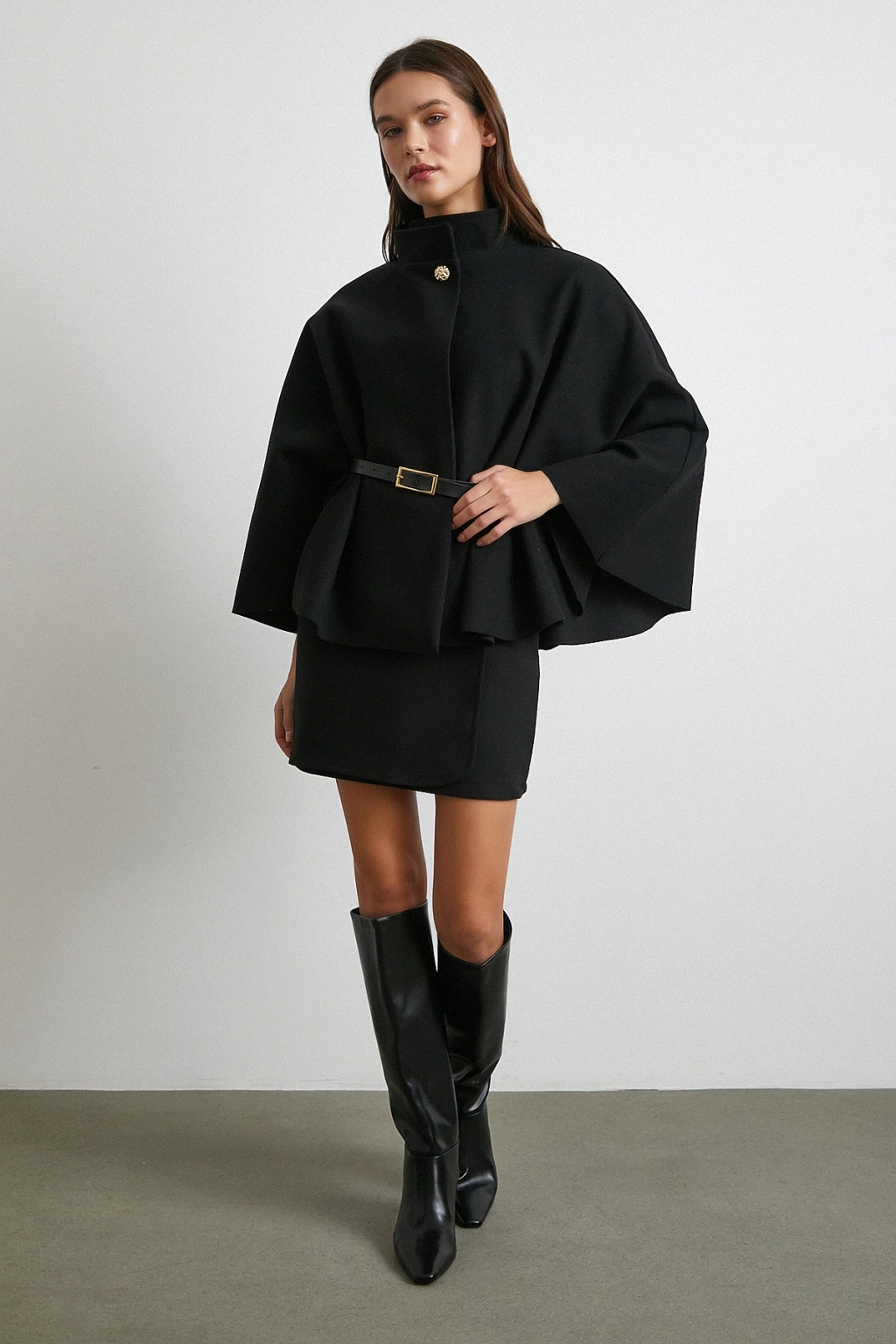 Apoletli Yünlü Körük Cepli Kaşe Mont Siyah