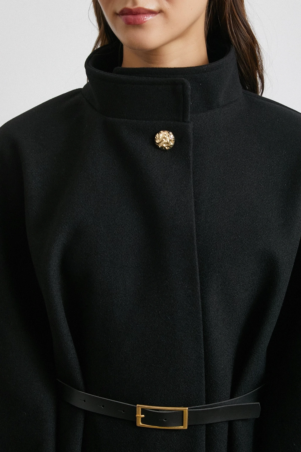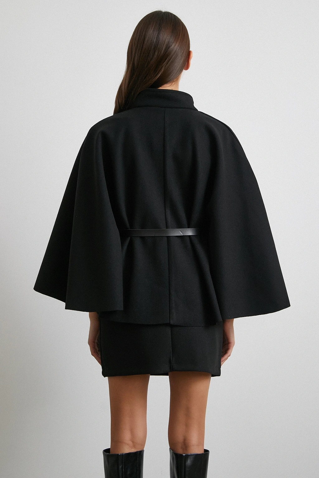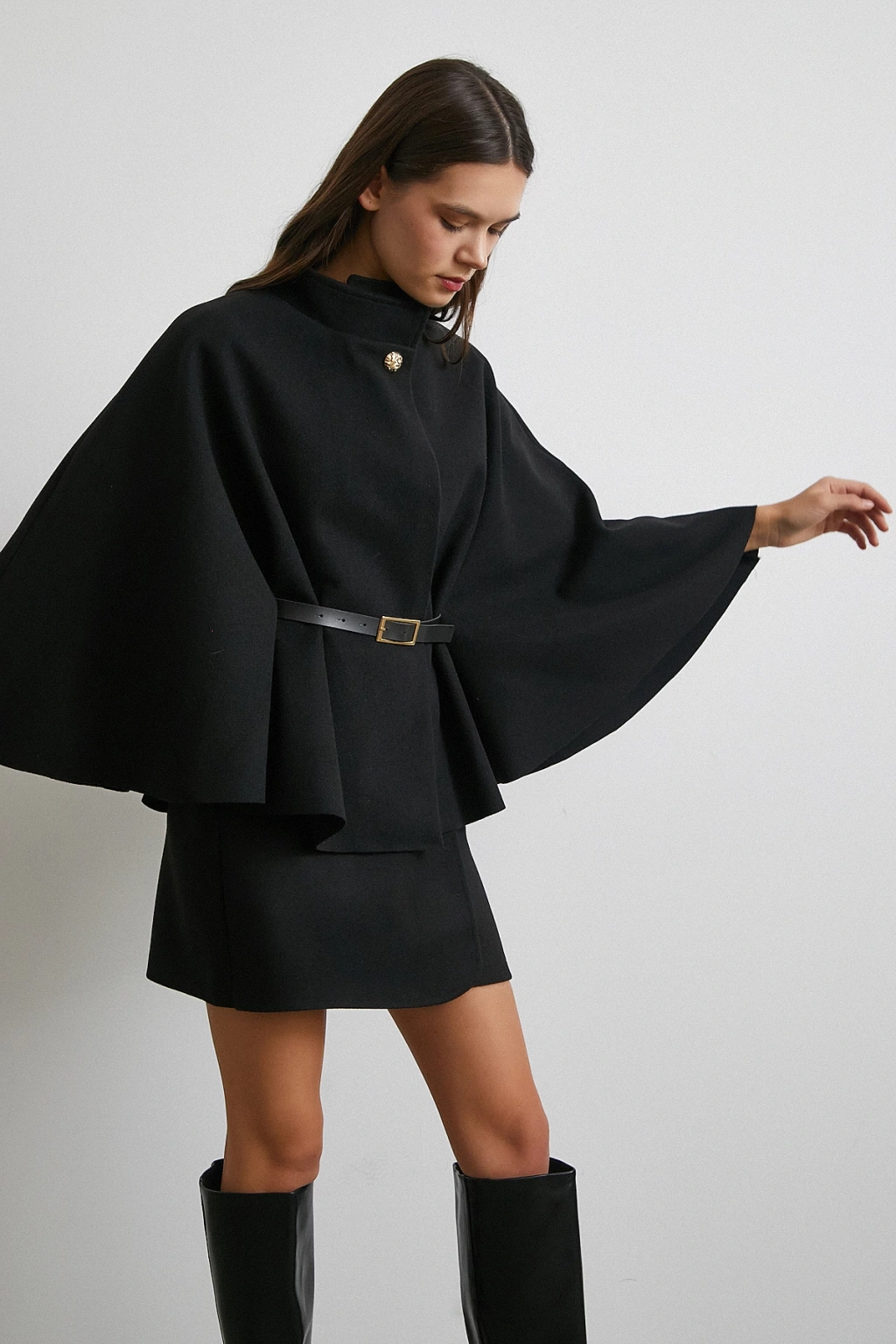 Apoletli Yünlü Körük Cepli Kaşe Mont Siyah