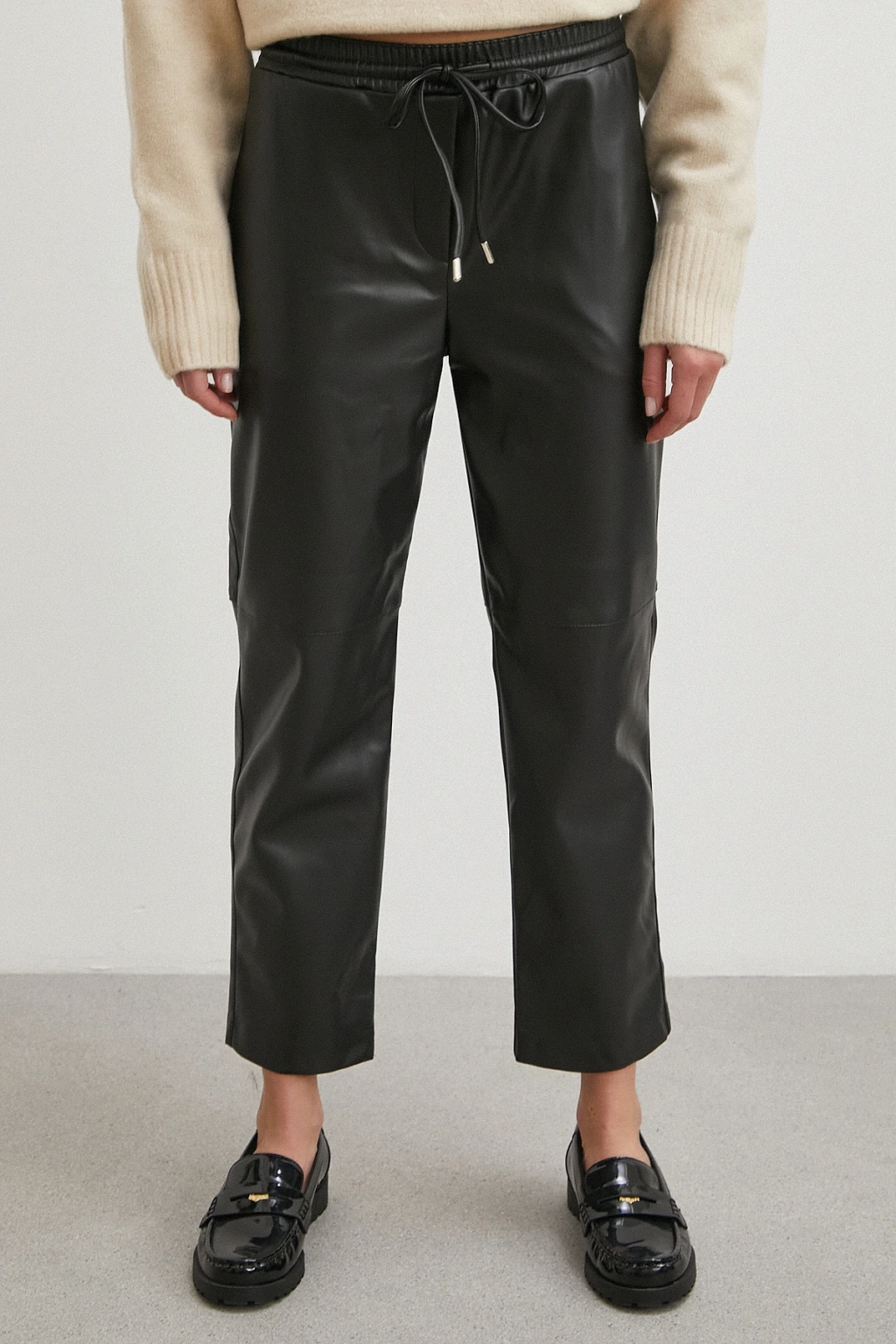 Kemerli Lastikli Deri Pantolon Siyah