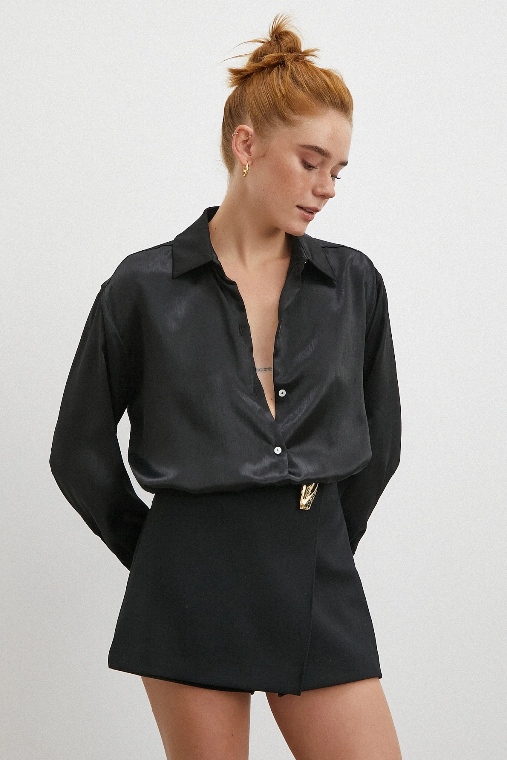 Klasik Saten Gömlek Siyah