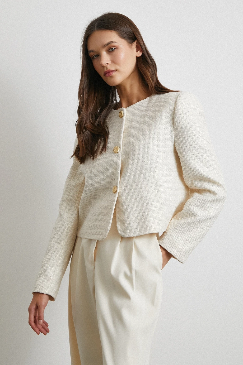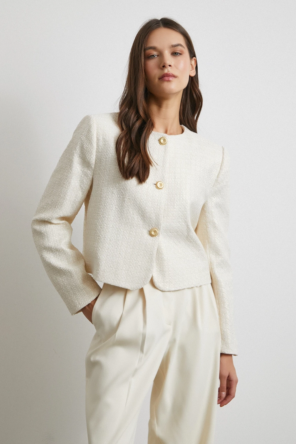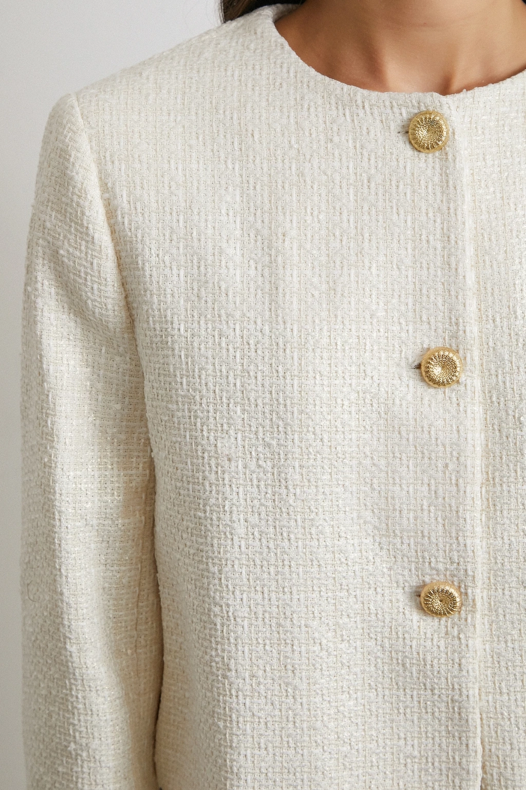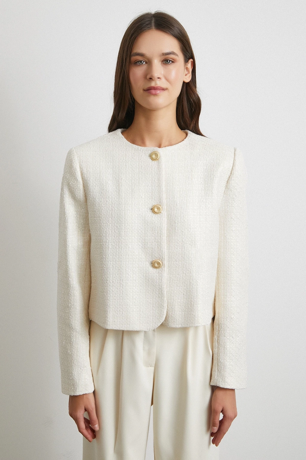 Polo Yaka Cepli Gold Düğmeli Ceket Krem