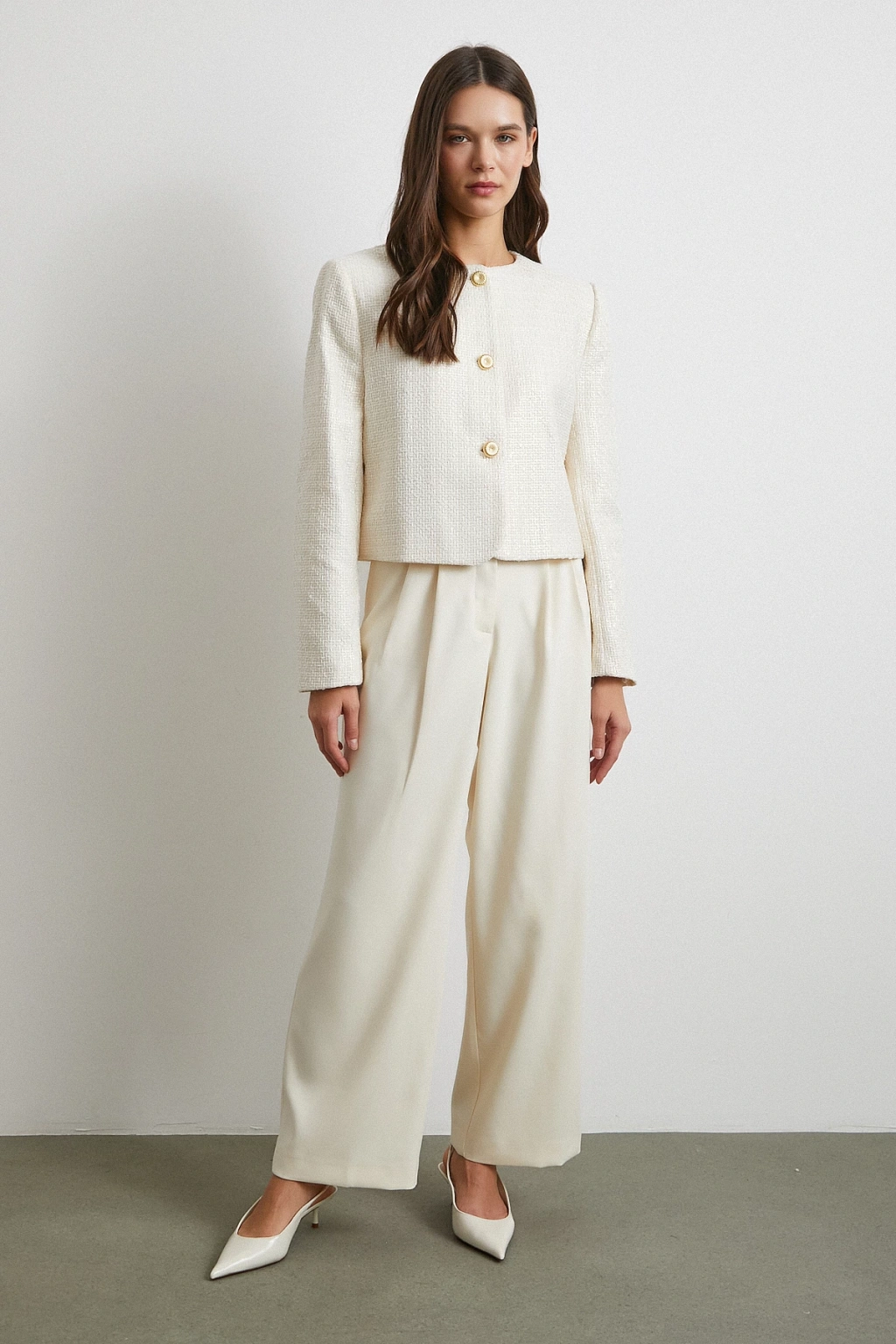 Koton Düğmeli Uzun Kollu Ceket Ekru