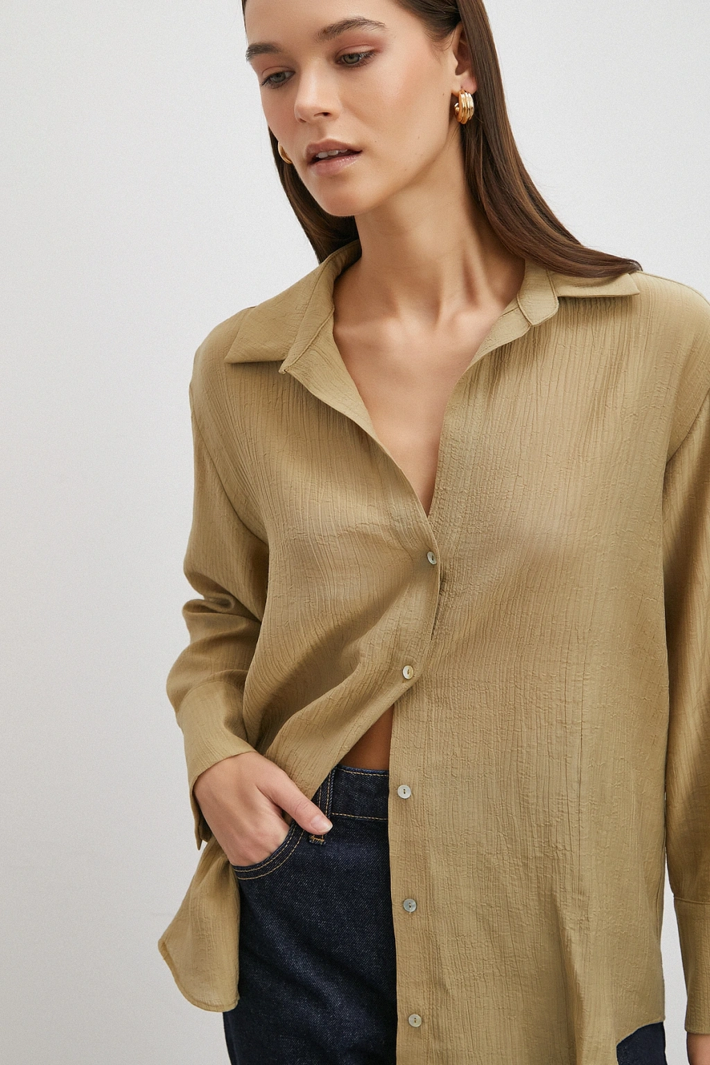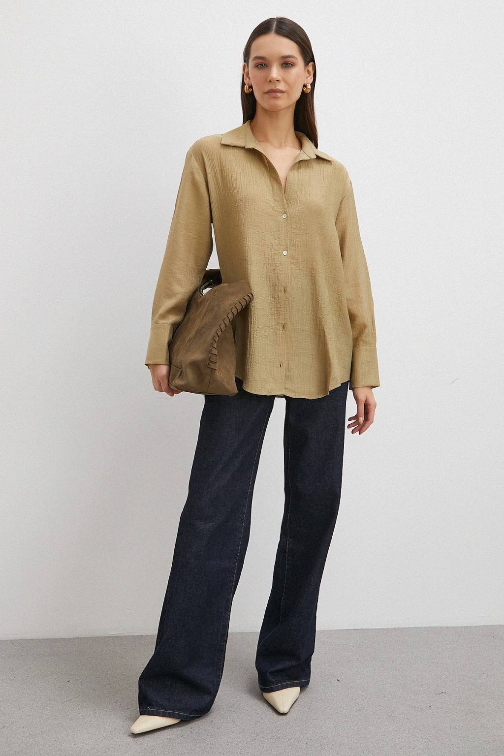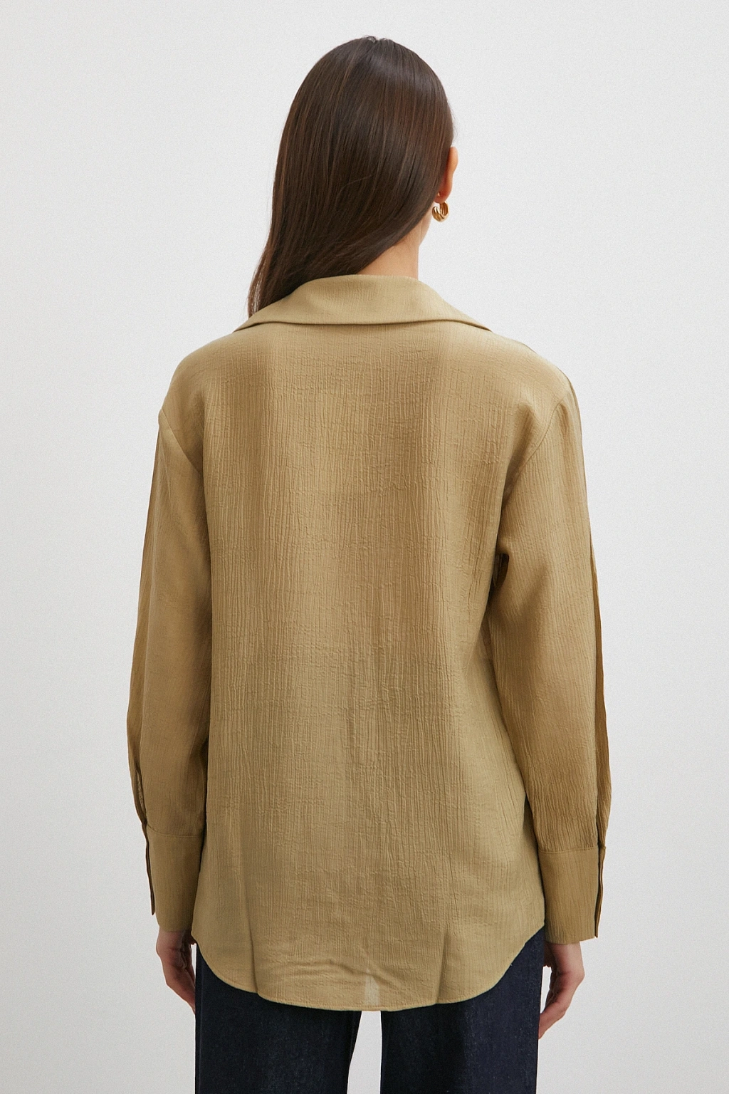 Düğme Detaylı Pamuklu Gömlek Kahve