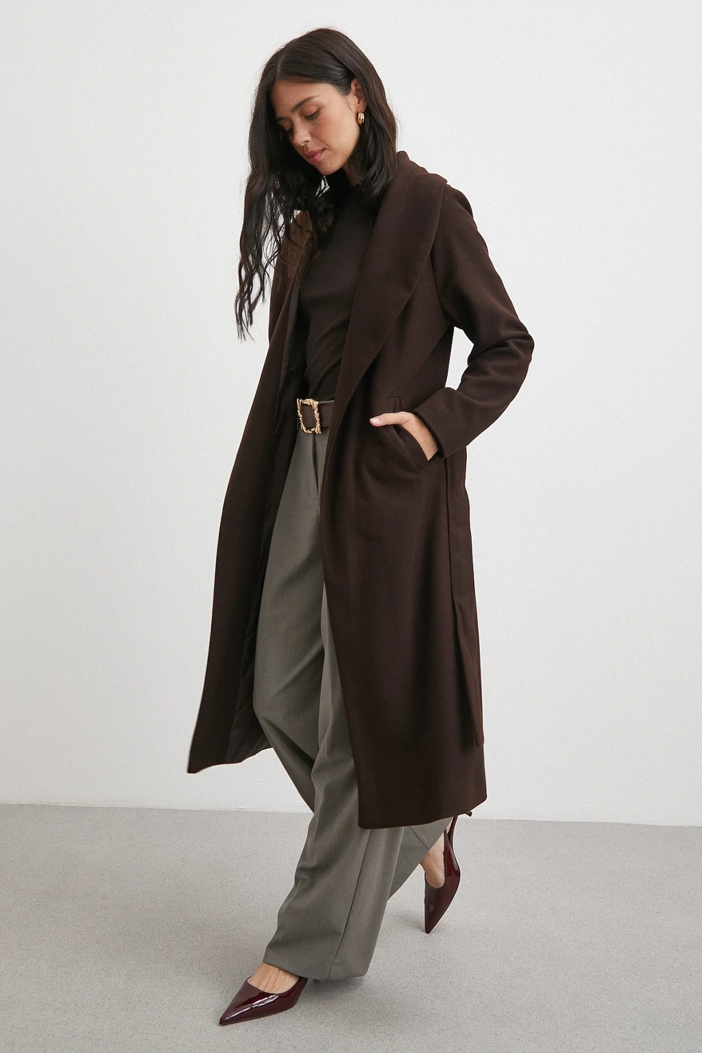 Kuşaklı Kaşe Kaban Kahve
