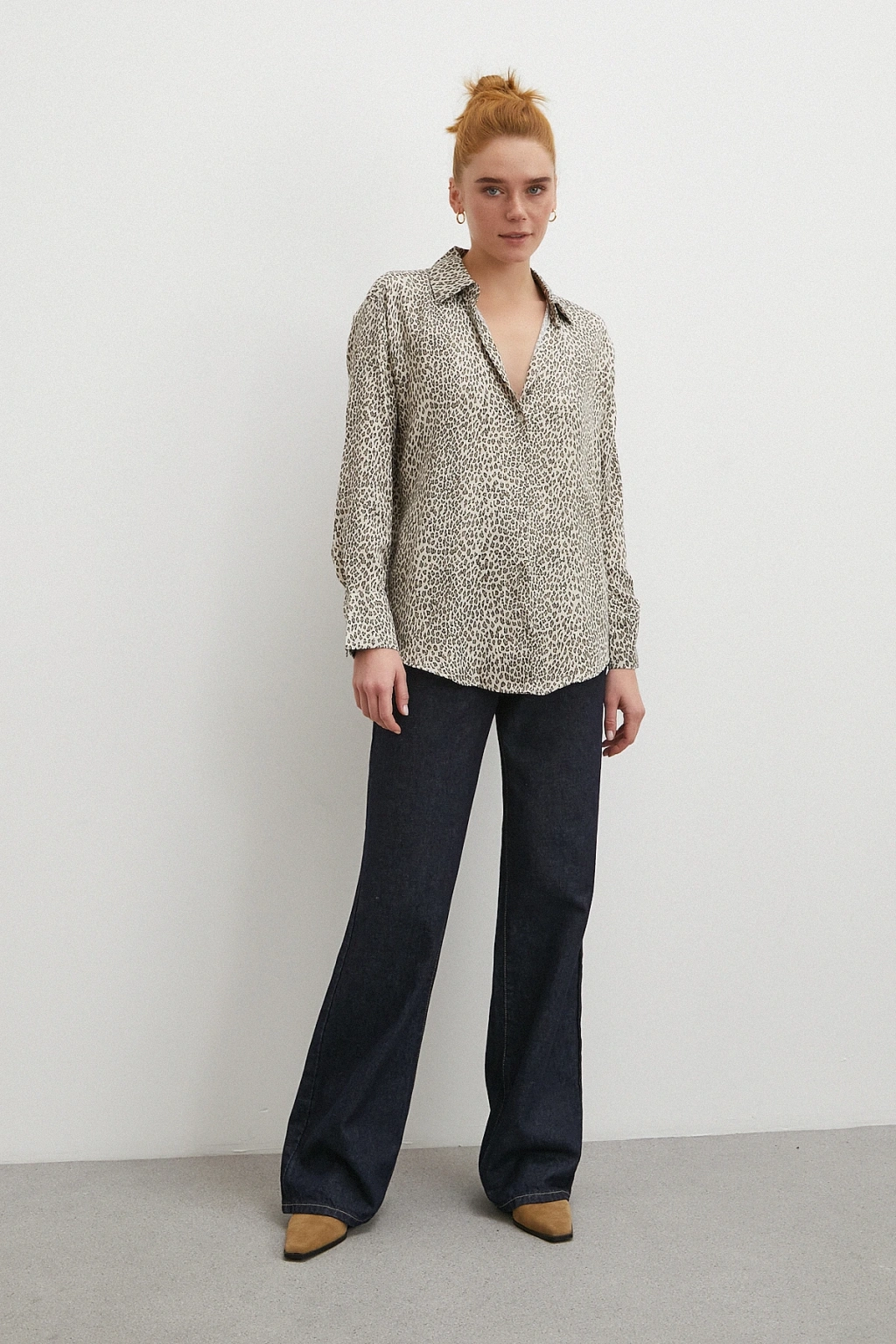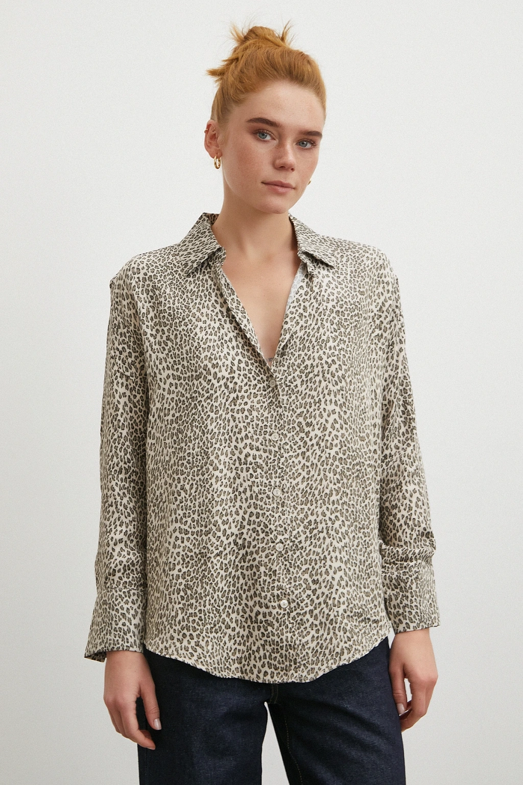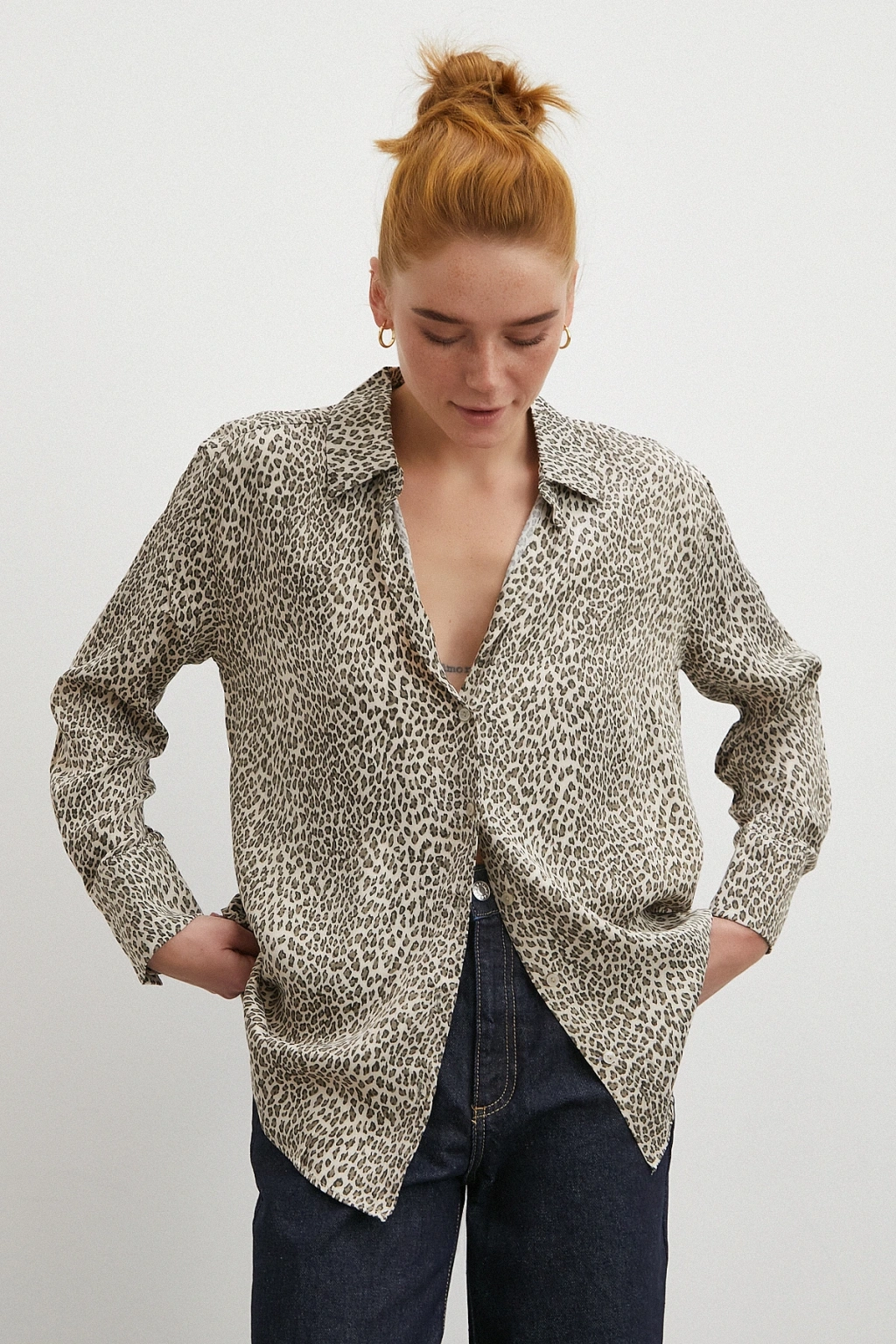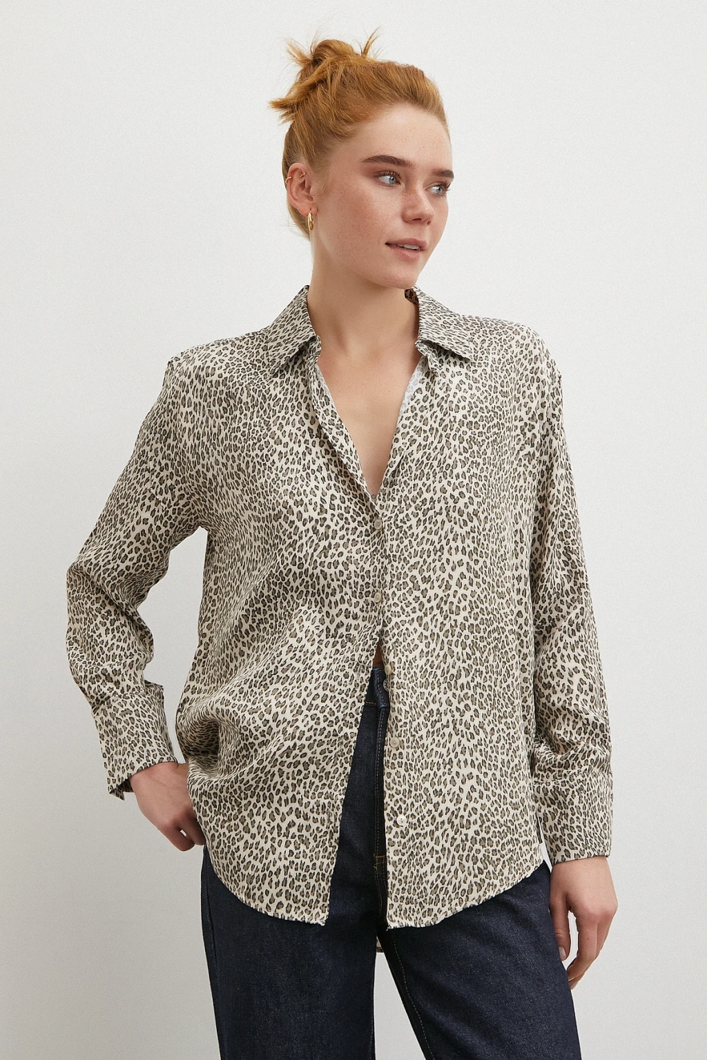 Yılan Desenli Viskon Saten Gömlek Siyah